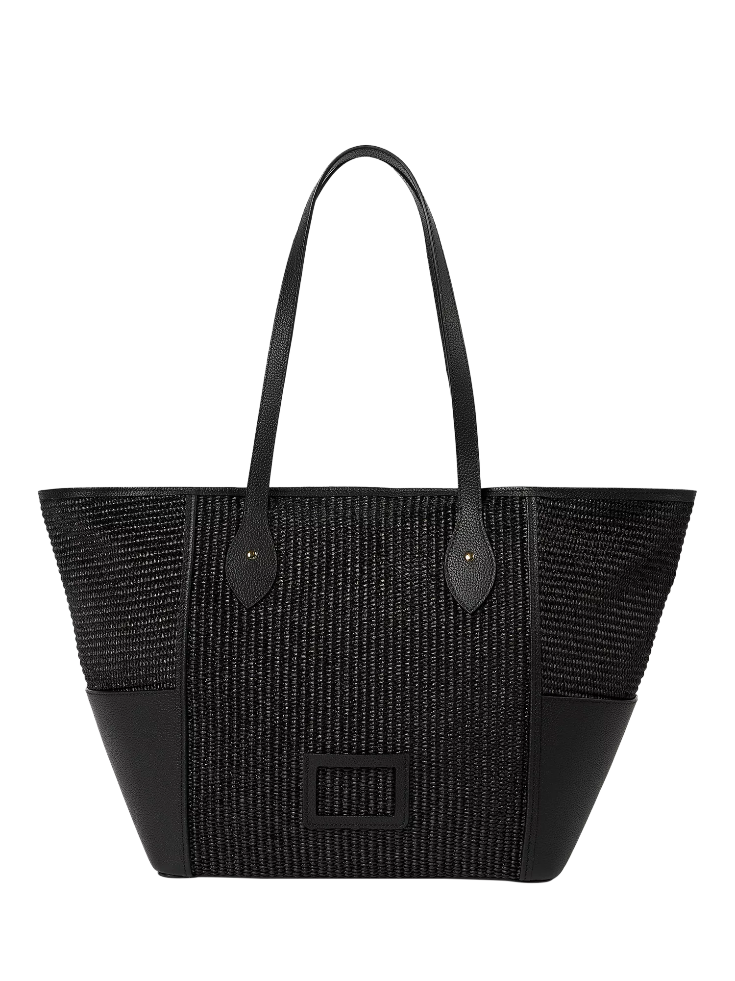 This tote bag is woven from natural raffia and trimmed with the brand's signature Madras grain leather, this lightweight yet structured bag brings a relaxed elegance to everyday adventures. With its roomy interior, magnetic closure, and handy slip pocket, it's as practical as it is beautiful. Designed with an interior slip pocket, two leather handles, and magnetic closure.