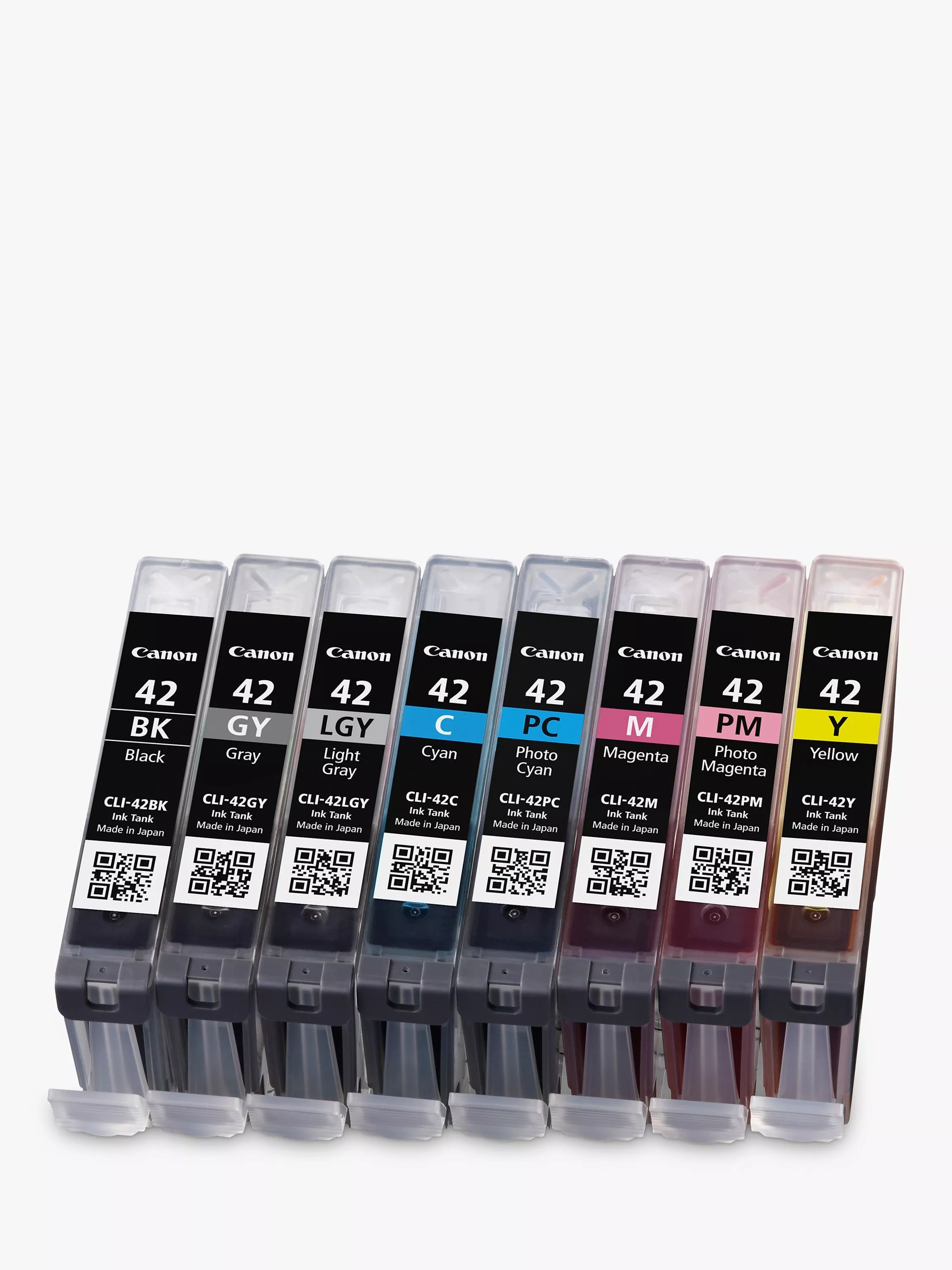 The CLI-42 ink cartridge range by Canon, has been designed to achieve professional prints at a great value price. This convenient CLI-42 multi-pack bundle consists of 8 individual dye-based InkJet cartridges including; black, cyan, magenta, yellow, photo cyan, photo magenta, grey, and light grey ink. Dye-based ink is great for optimum color vibrancy, as various optical compounds are added to dye ink to enhance the color.