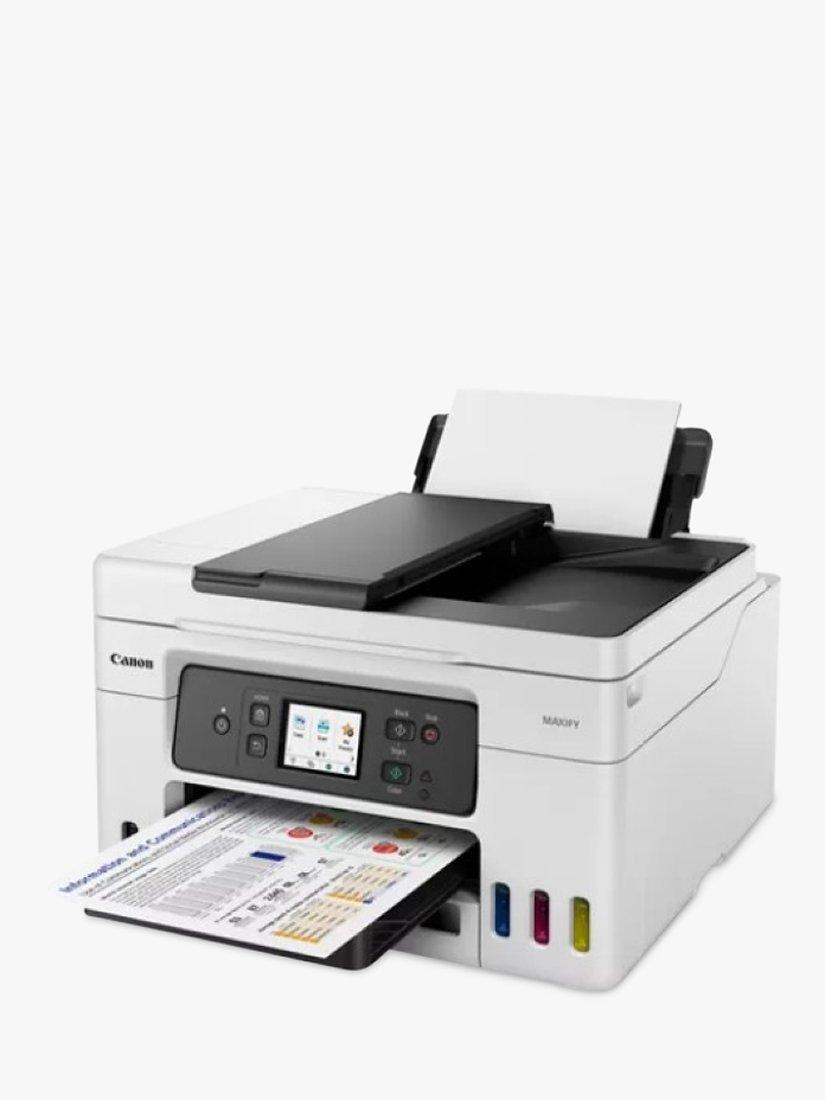 The MAXIFY GX4050 all-in-one printer is ideal for small and medium-sized businesses of all types, that need reliable, cost-effective and high speed printing. Print, copy and scan up to A4 size, with 250-sheet paper capacity, and the economic MegaTank ink system, featuring four easily refillable ink tanks. Print wirelessly with ease from smart devices with the printer's built-in Wi-Fi, and navigate controls with its clear 6.7cm colour touchscreen.