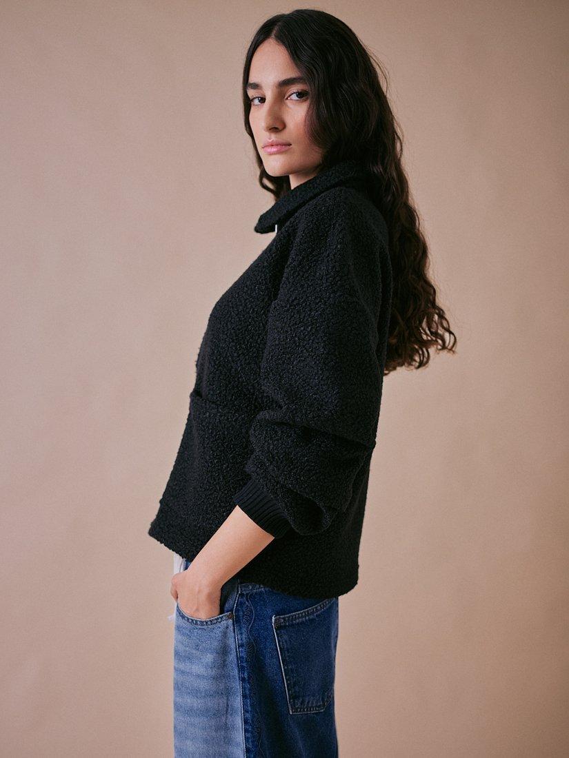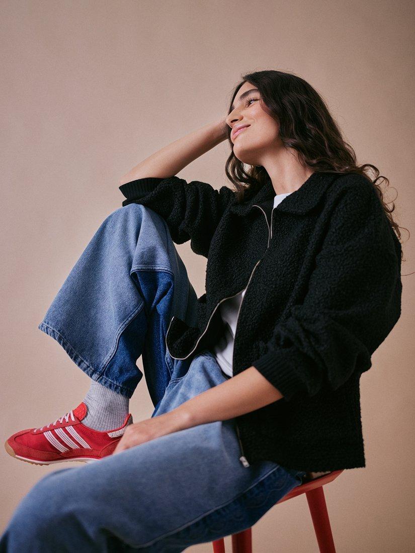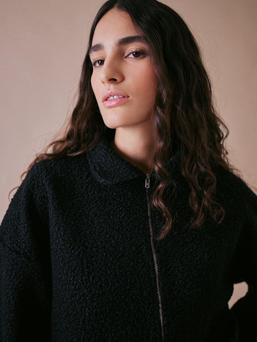Made in Portugal, this borg-style casual jacket features a zip front and deep pockets, mid-weight for seasonal layering.