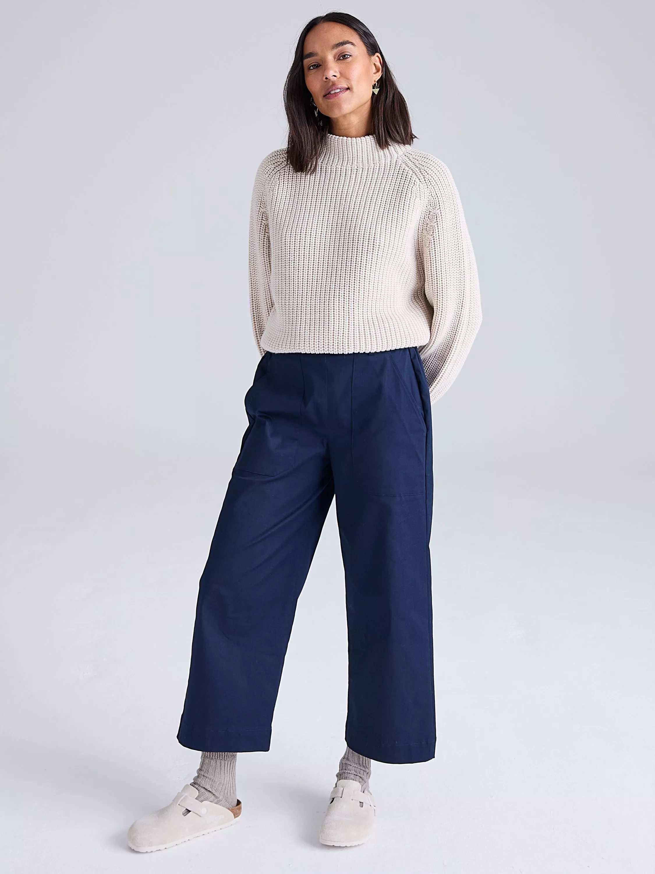 Crafted in a soft twill this trouser sports a stylish cropped wide leg, subtle side pockets and added comfort with an elasticated back waist. Pull on and easily styled.