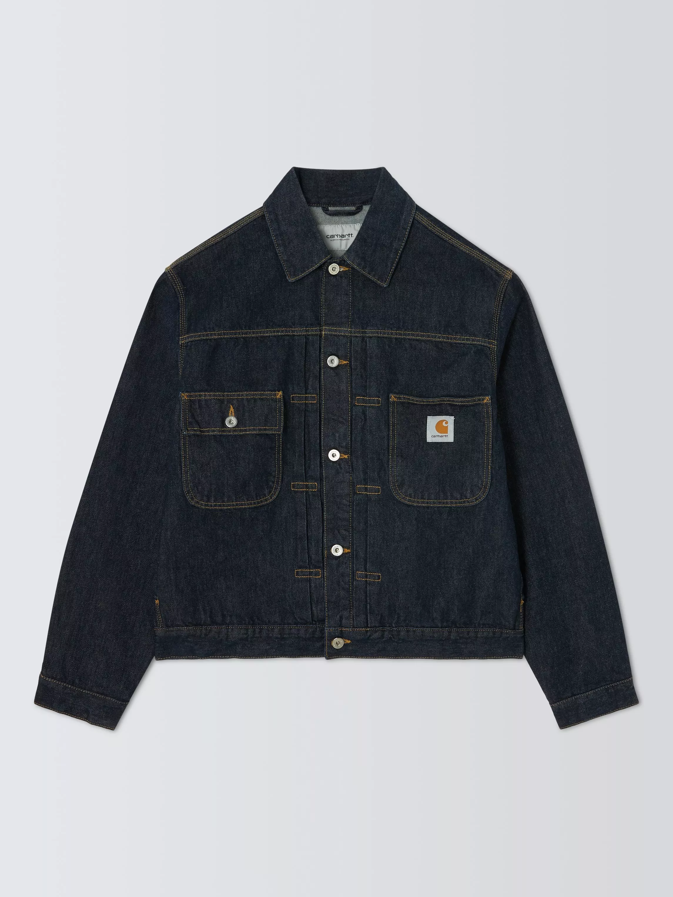 The Belmar is made from a heavyweight, unlined cotton denim. It features two chest pockets and two side pockets, and is detailed with bartack stitching and metal rivets at vital stress points. A buttoned back strap and cuffs offer an adaptable fit. A woven square brand label completes.