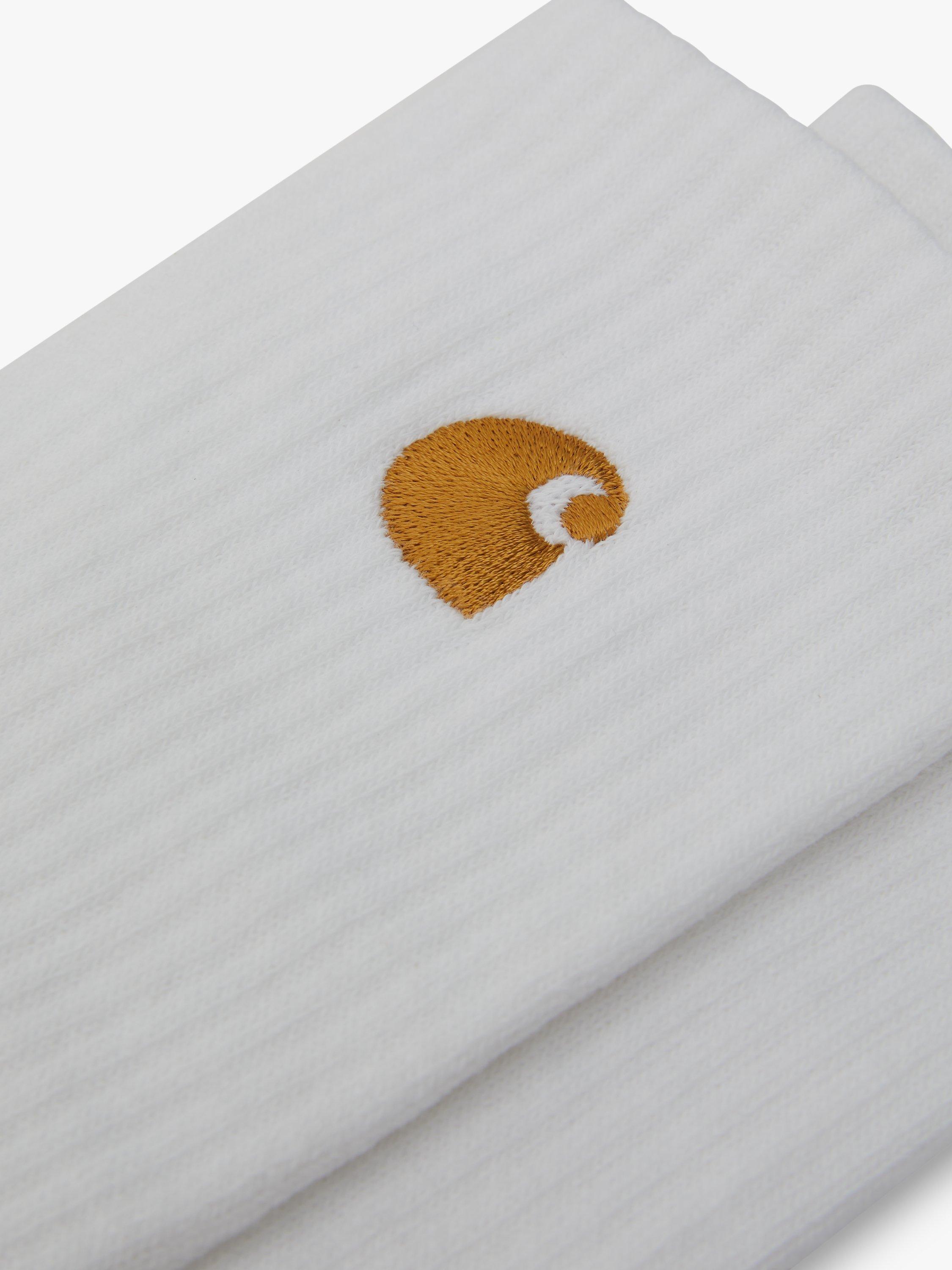 Constructed from a cotton-rich knit, they feature ribbing on the top, a French terrycloth inside sole panel, and embroidered Carhartt WIP logo to the side in gold.