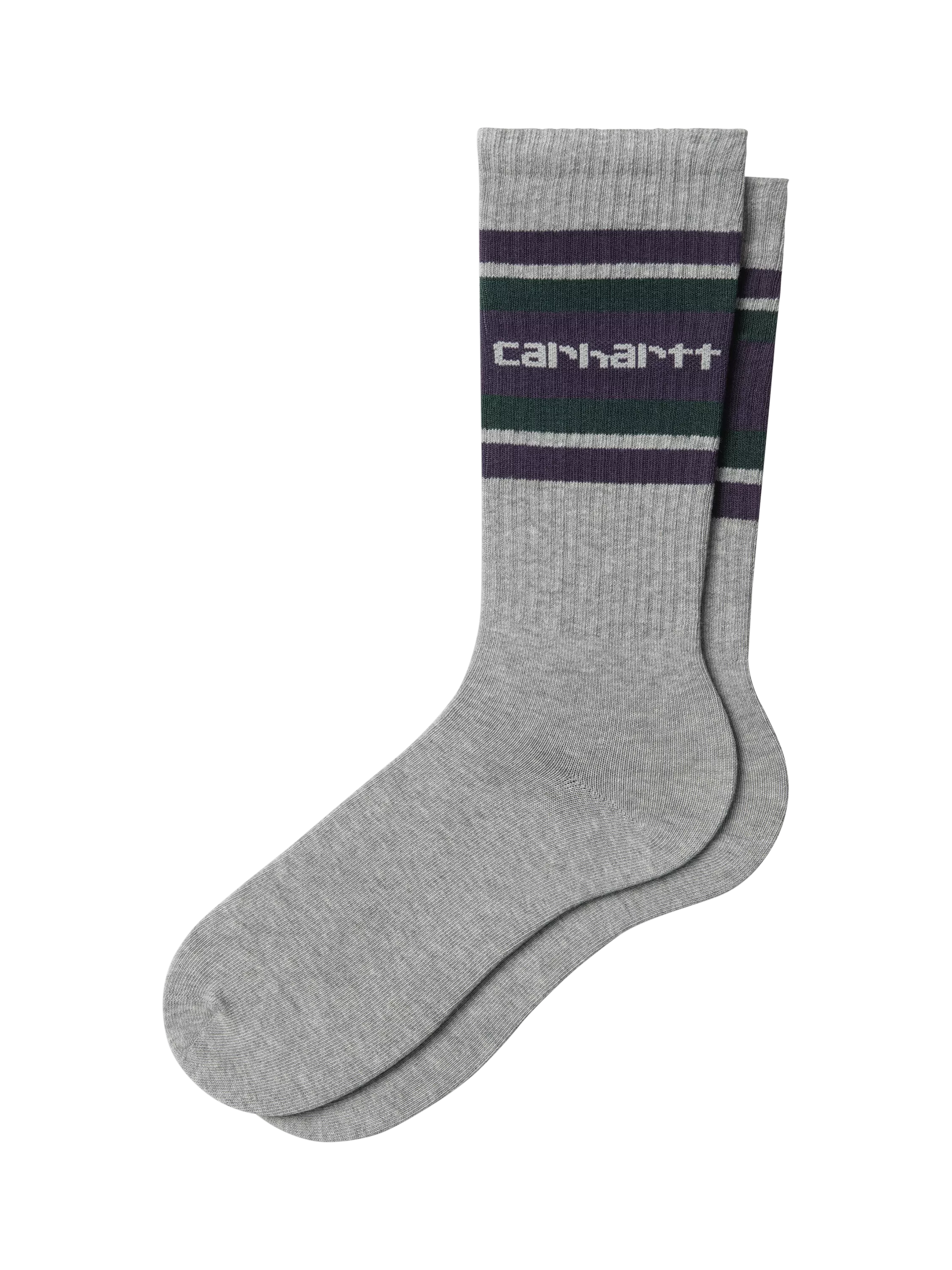 These socks are knitted from stretch-cotton yarn, featuring ribbed stitching and a jacquard motif at the leg.