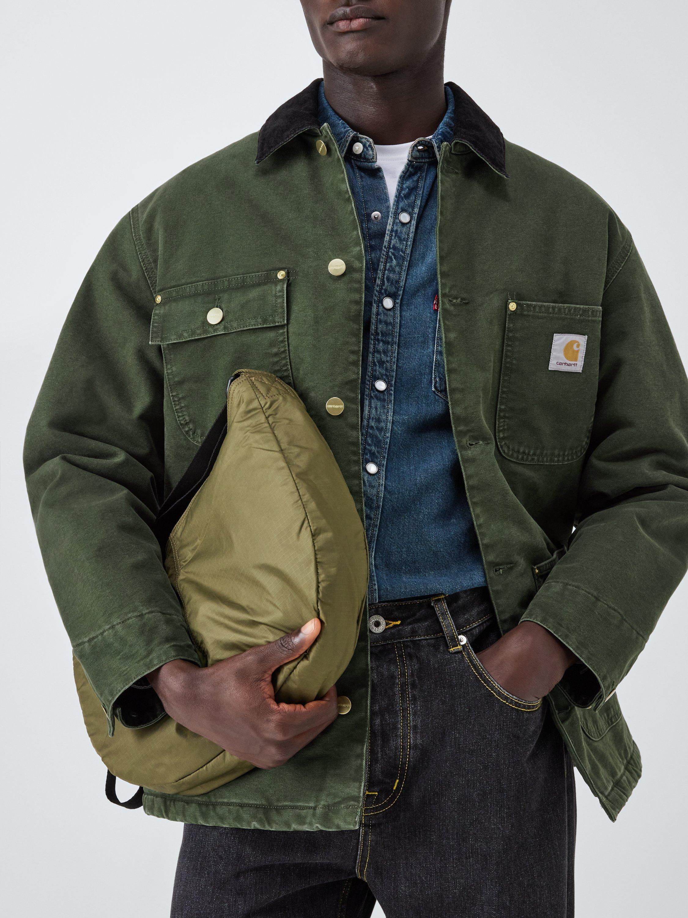 The OG Chore Coat is made in a loose fit from heavyweight cotton Dearborn Canvas. The style also features a diamond-quilted lining for insulation.