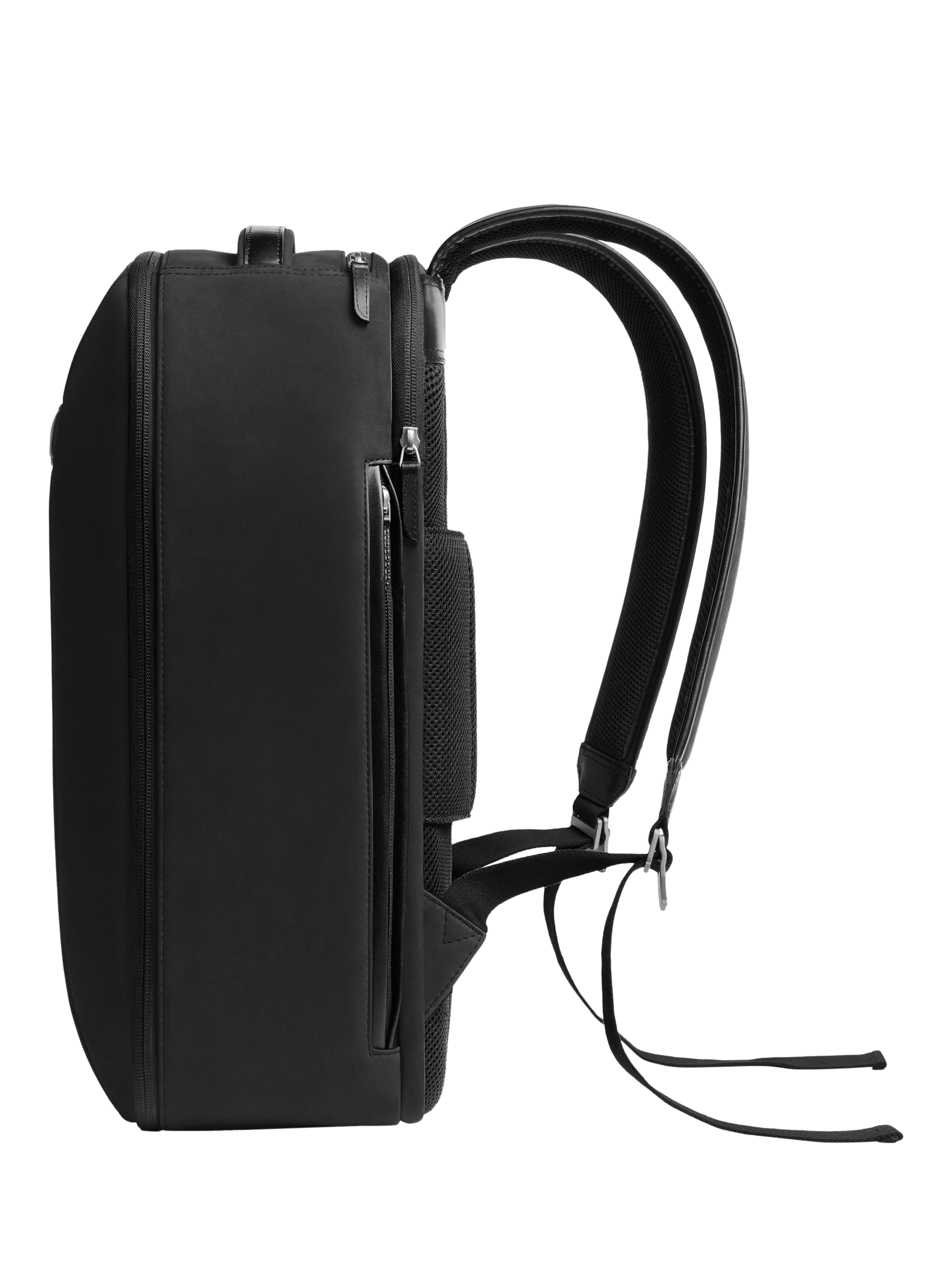 Organisational travel backpack with a front panel that fully unzips, offering an efficient suitcase-style packing experience. Designed for up to 72 hours of hands-free travel, featuring comfortable, padded, and adjustable straps. Made from premium nubuck leather.