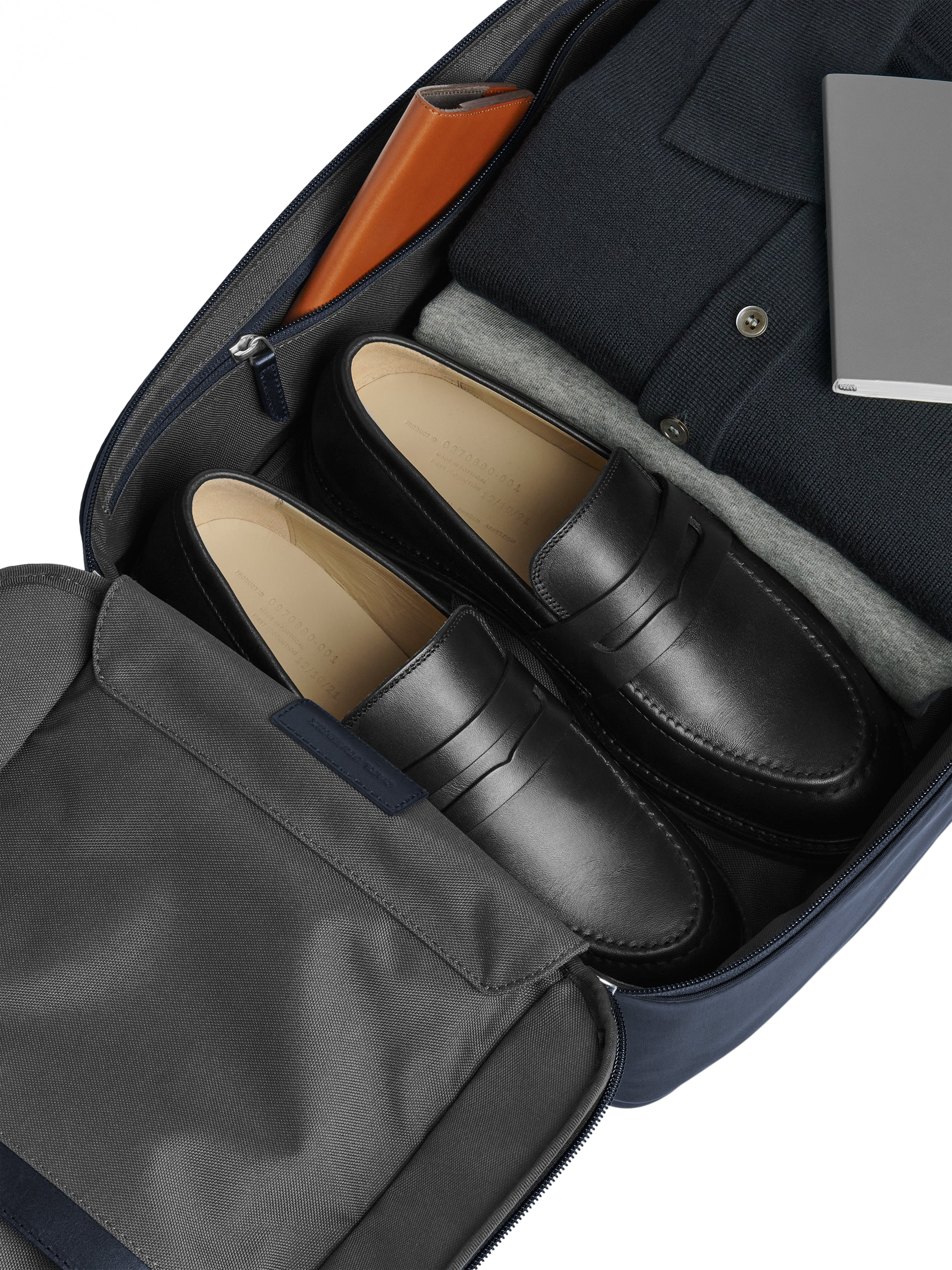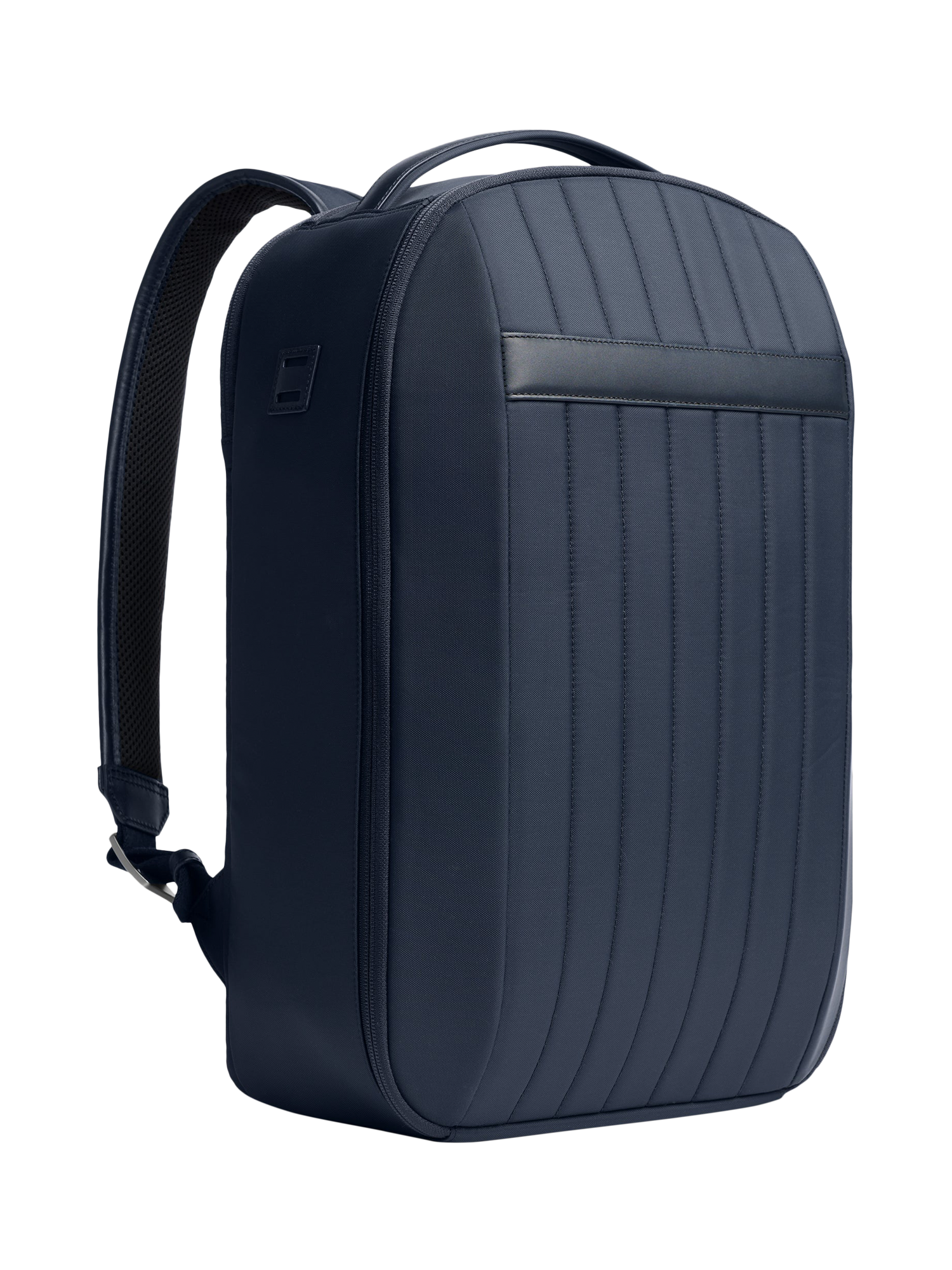 Organisational travel backpack with a front panel that fully unzips, offering an efficient suitcase-style packing experience. Designed for up to 72 hours of hands-free travel, featuring comfortable, padded, and adjustable straps. Made from premium nylon with leather trims.
