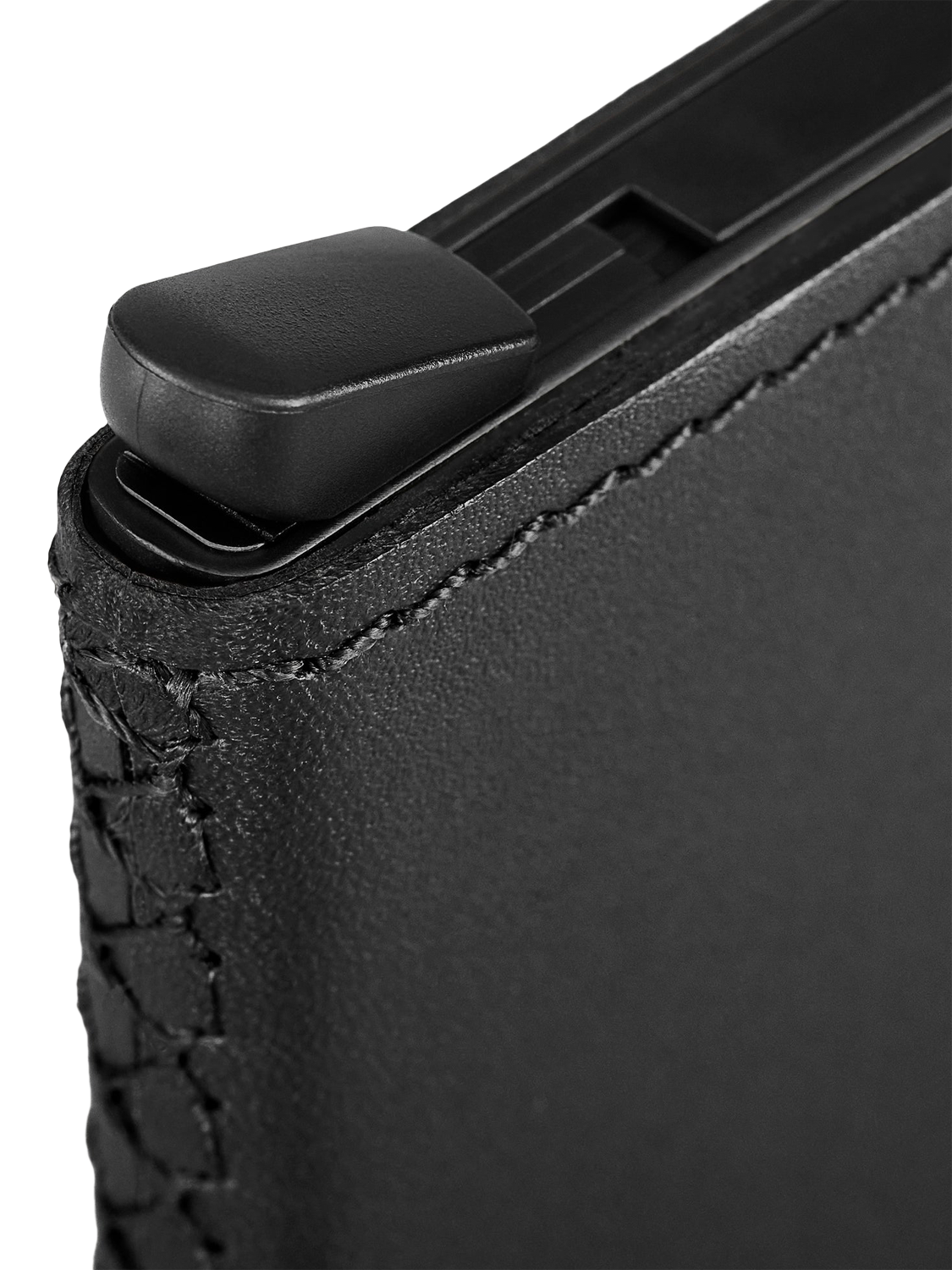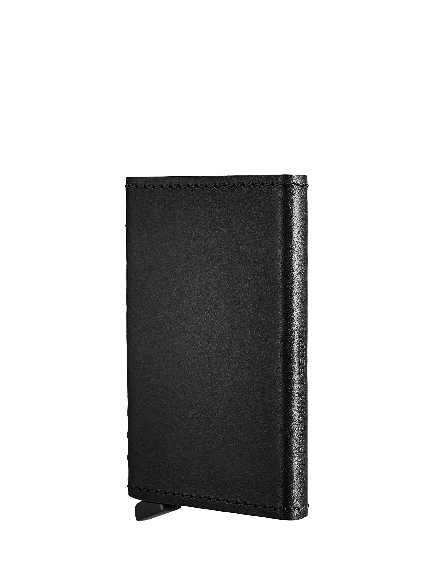 Innovative cardholder with an RFID-blocking (Radio Frequency Identification) aluminium core to protect from electronic thieves. Patented lever technology ensures up to five cards can be retrieved in one smooth motion when needed. Wrapped in premium vachetta leather for an elevated finish.