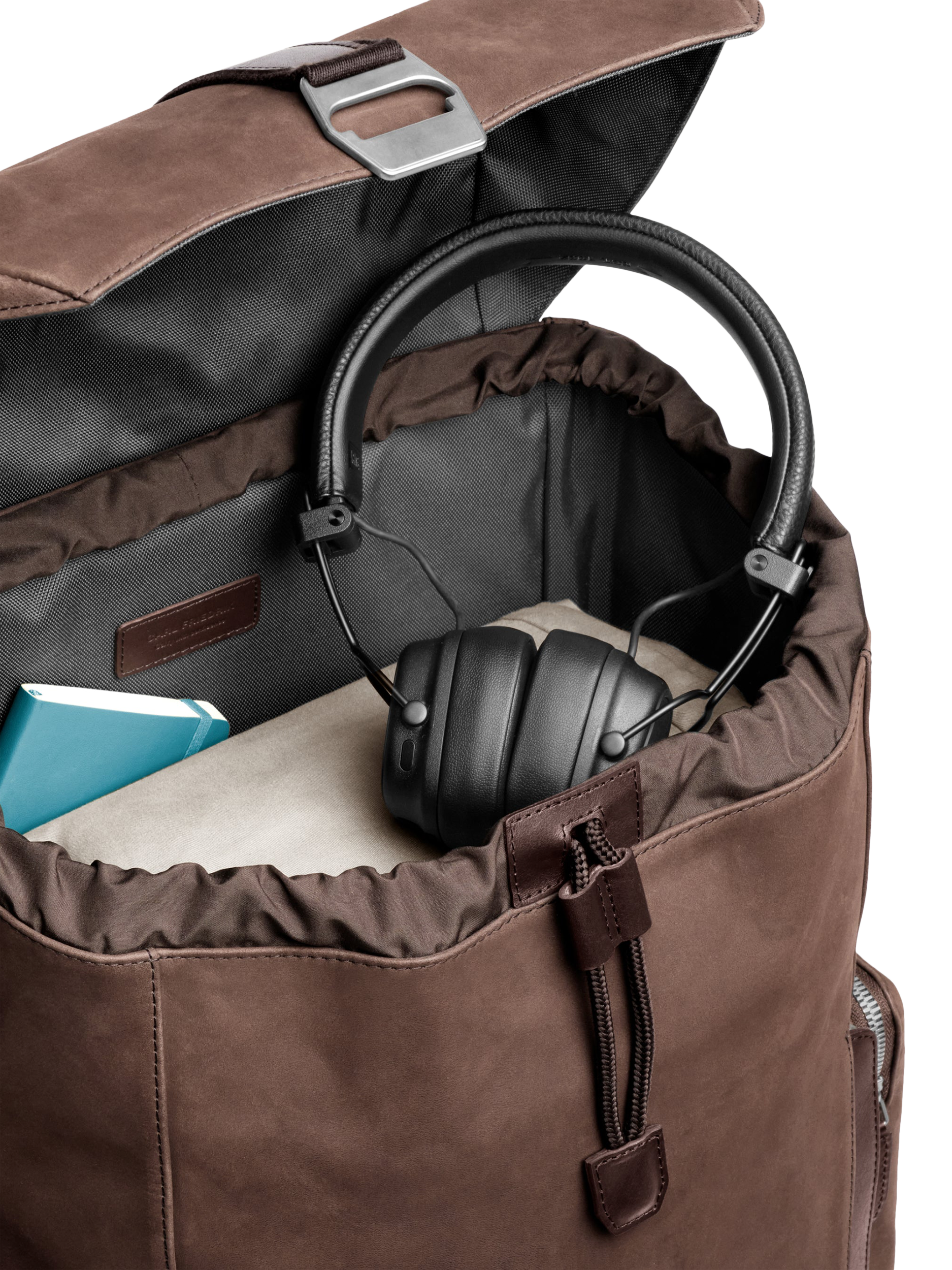 Refined backpack inspired by utilitarian designs of the past, offering the ideal blend of capacity and compartmentalisation for modern adventurers. Features a drawstring cord closure with a flat-top fold. Made from premium nubuck leather.