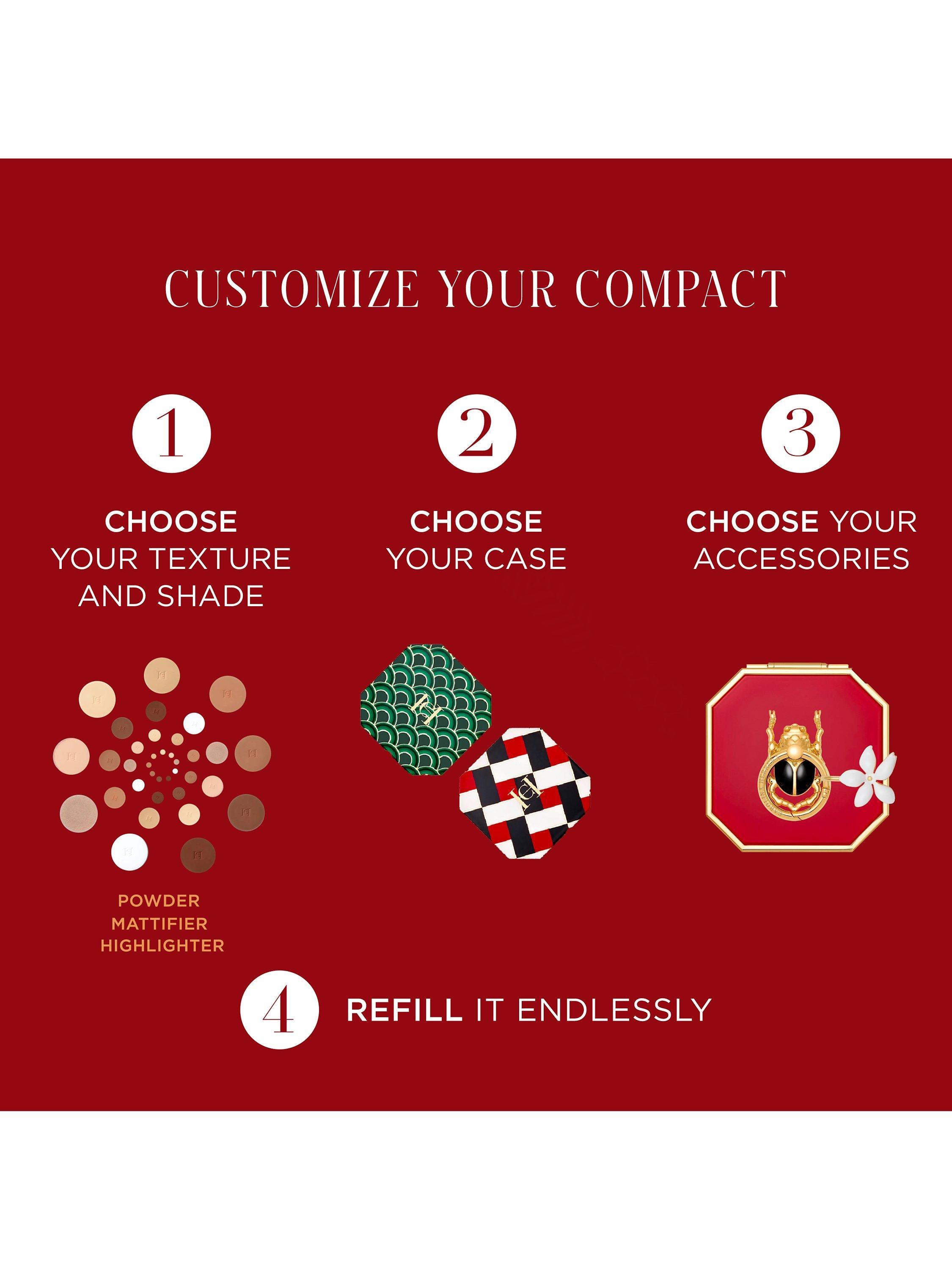 Flaunt your mattifier with a chic patterned case, available in a choice of iconic House prints, then attach the Beetle ring to customize it with your favourite Herrera charms.