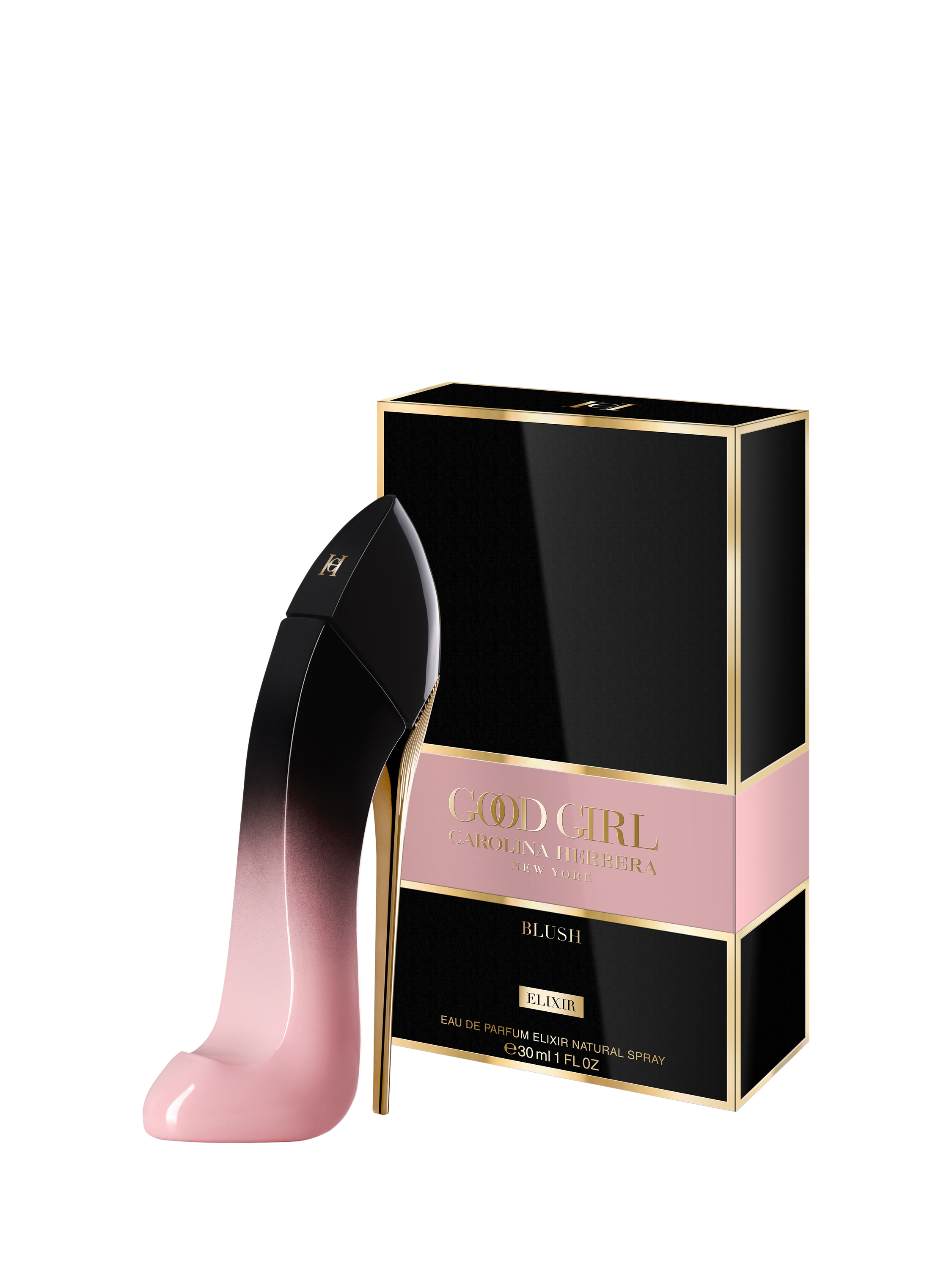 Good Girl Blush Elixir is a sensual, more intense interpretation of Good Girl Blush, housed in an alluring dégradé bottle with a glimmering gold heel. The newest addition to the Good Girl family, this exotic elixir reveals the multifaceted nature of modern femininity with a seductive blend of ravishing rose, voluminous vanilla and smoky, scintillating patchouli.
