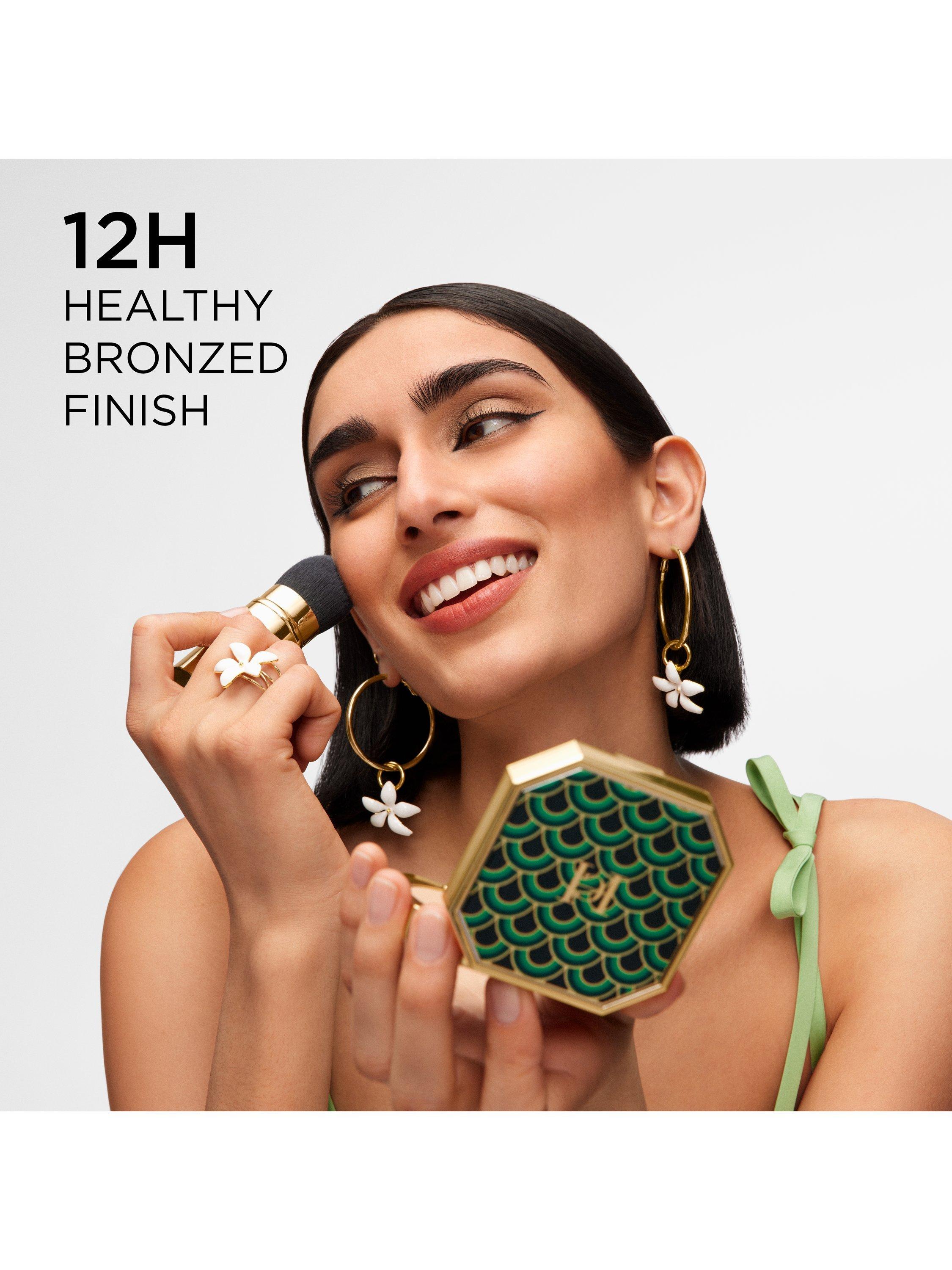 - Gently sweep over face, neck and décolletage to create a natural, sun-kissed look, applying over bare skin or foundation