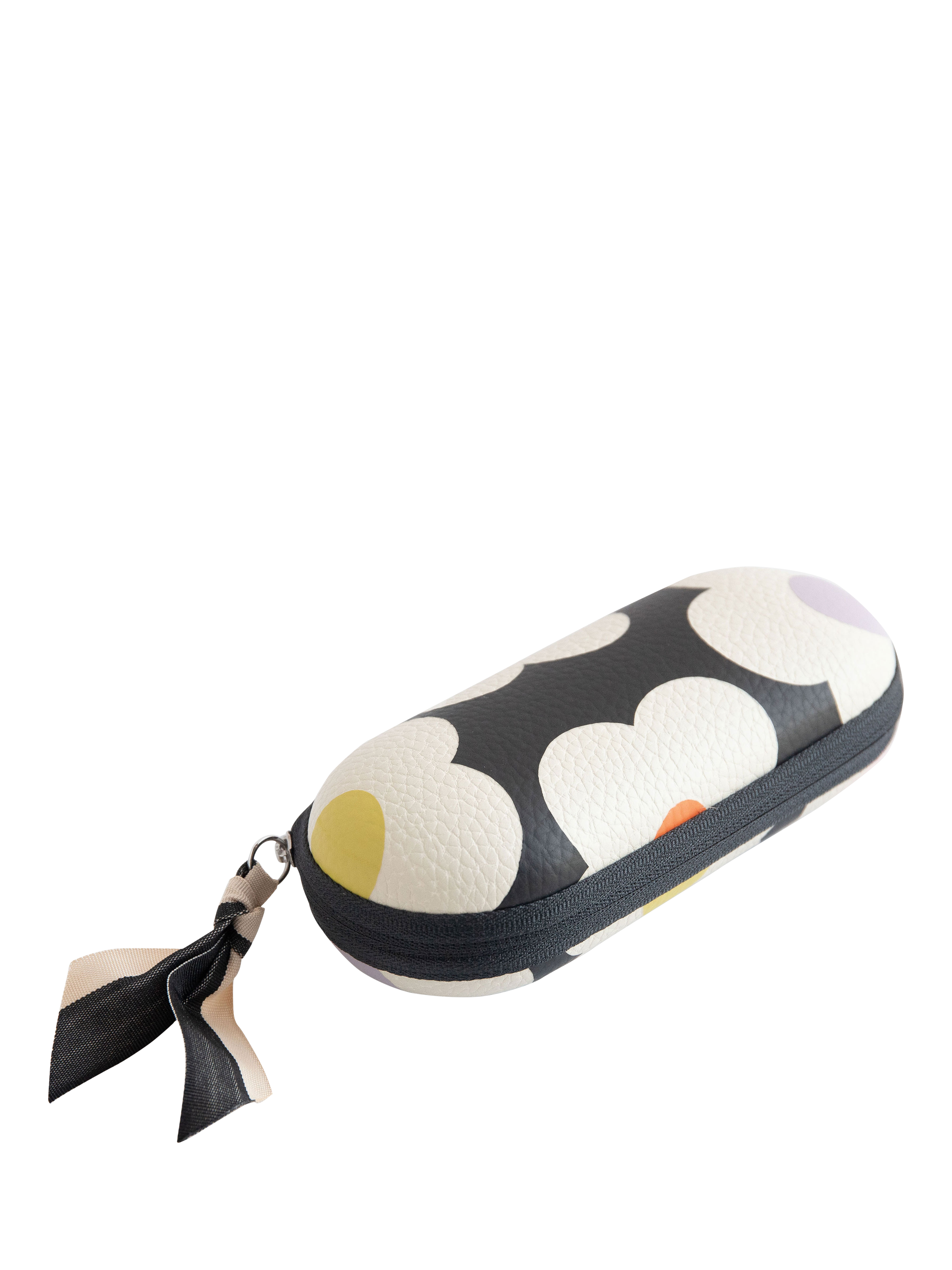 Keep your glasses safely stored in this multi-flower hard shell glasses case. Finished with a suedette lining, this case is ideal to keep your glasses or sunglasses safe and scratch-free when on the move. It is made with a leather-look material and features a contrast zip-around closure with a grosgrain ribbon.