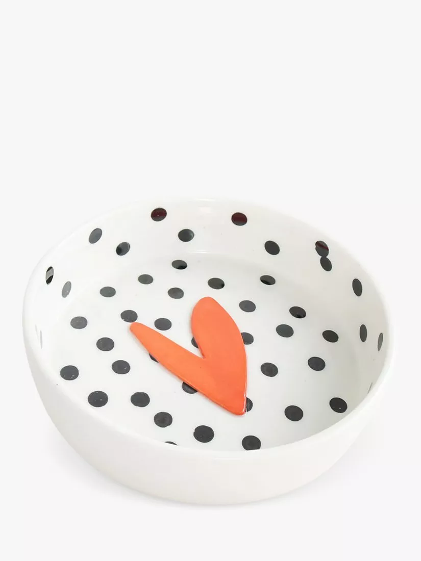Caroline GardnerHeart & Polka Dot Pet Bowl, White