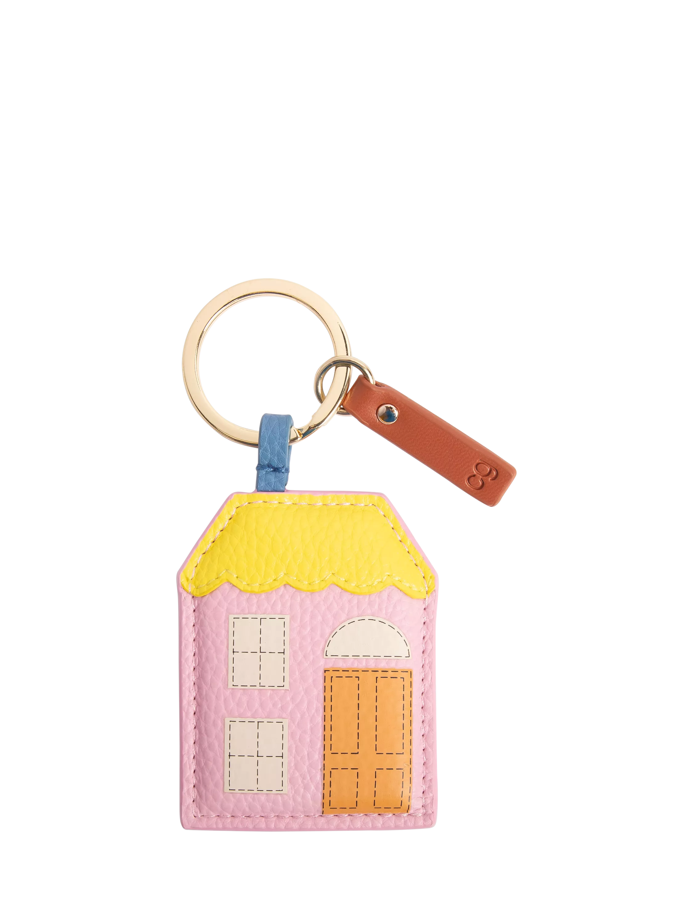 Celebrate a new homeowner with this stylish and fun house keyring. Crafted from vegan leather with a durable metal clasp, it is the perfect size to fit in a pocket or purse. The house-shaped design is both stylish and unique, displaying a soft yellow and pale pink colour palette with yellow gold-coloured hardware. A thoughtful and unique gift that will be cherished for years to come.