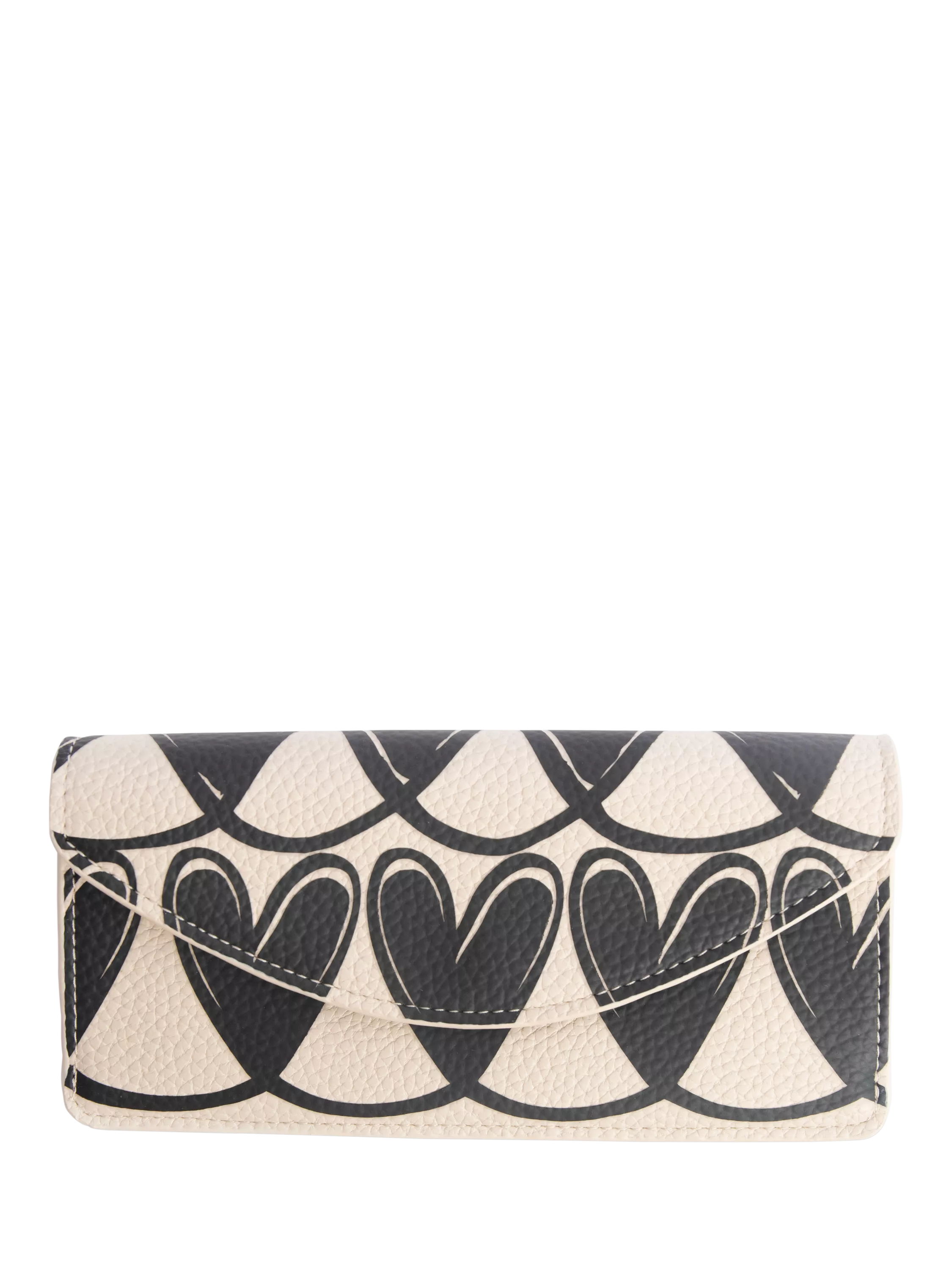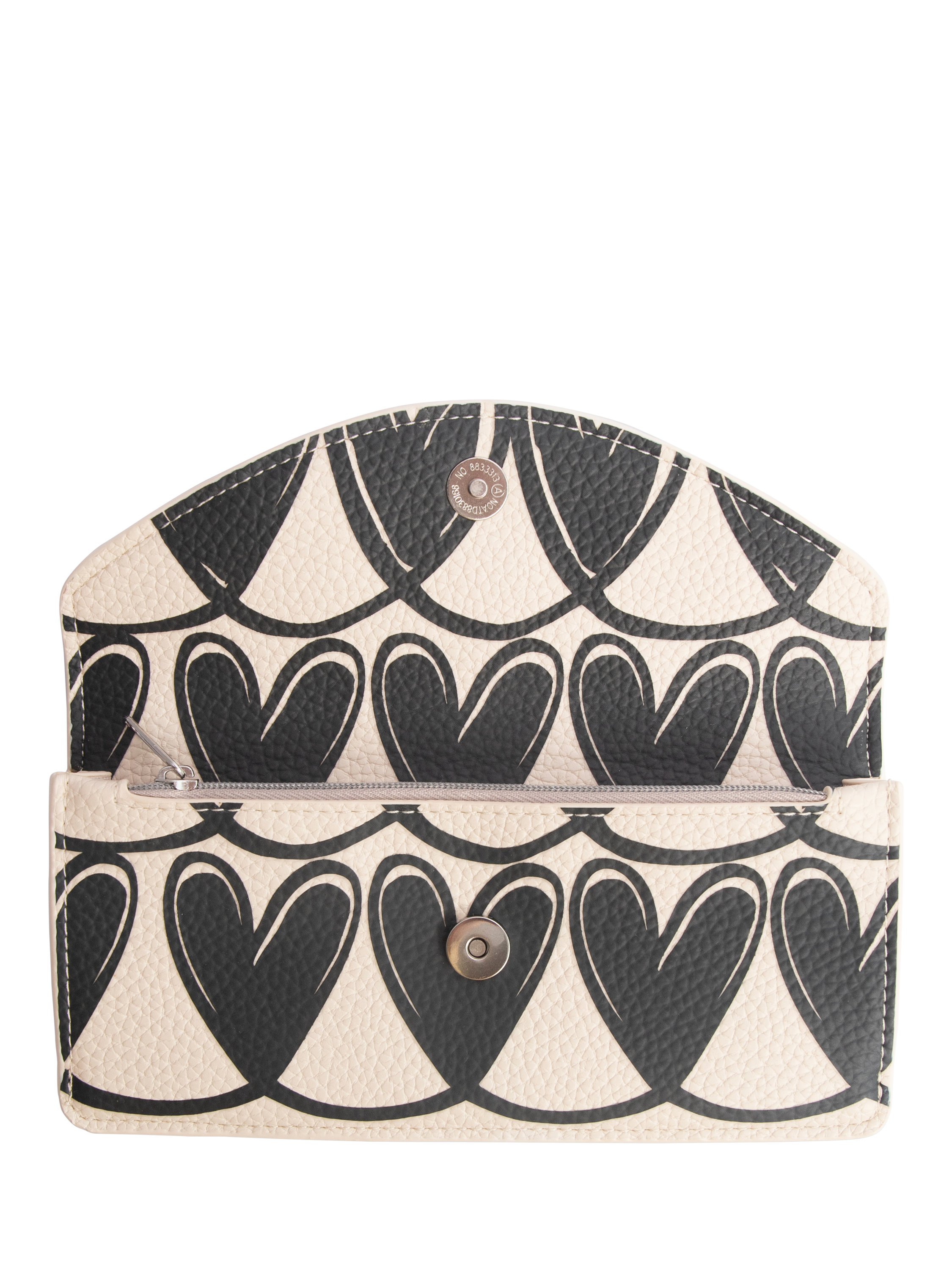 Keep your cards & cash safely stored in Caroline Gardner's monochrome linked hearts long envelope purse. With its 6 card slots, zipped coin section, internal divider and magnetic popper closure, this purse has room for everything you need on the go.