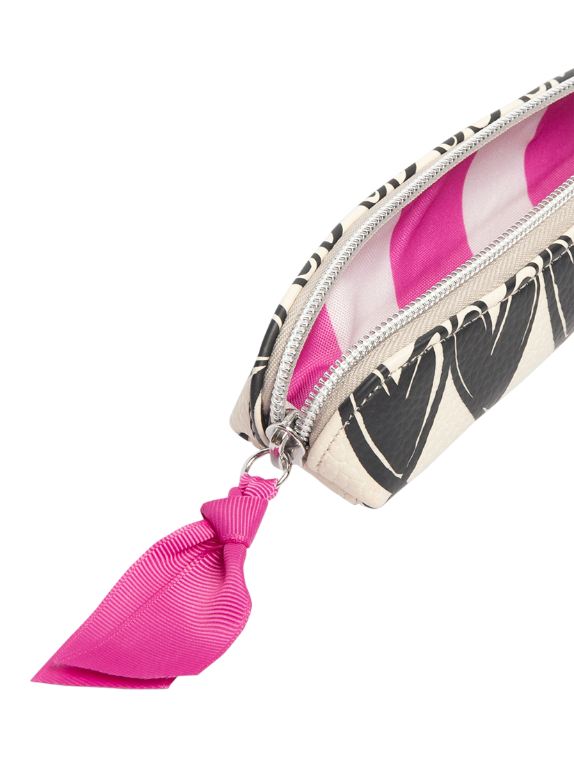 Add some chic to your stationery storage with Caroline Gardner's leather look monochrome linked heart pencil case. This slim-shaped case comes complete with a zip and monochrome grosgrain pull, and is the ideal size for stationery as well as make-up brushes and mascara.