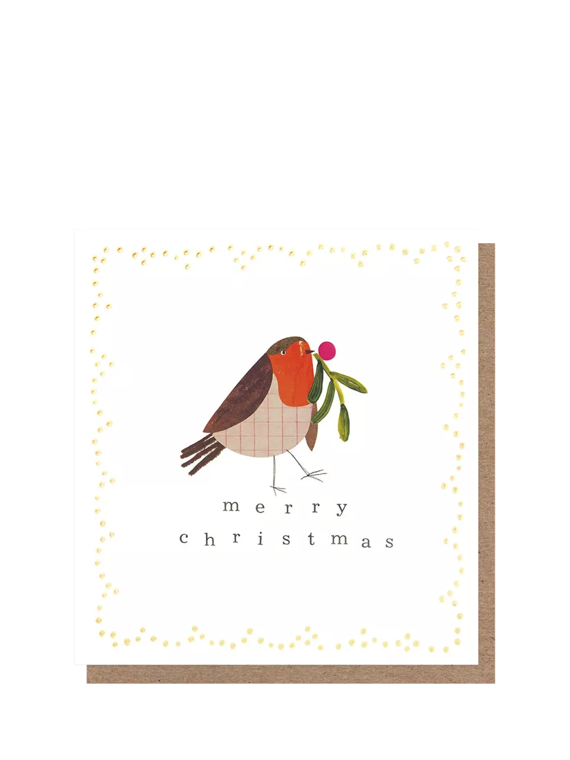 Caroline GardnerRobin Gold Dotty Frame Christmas Card