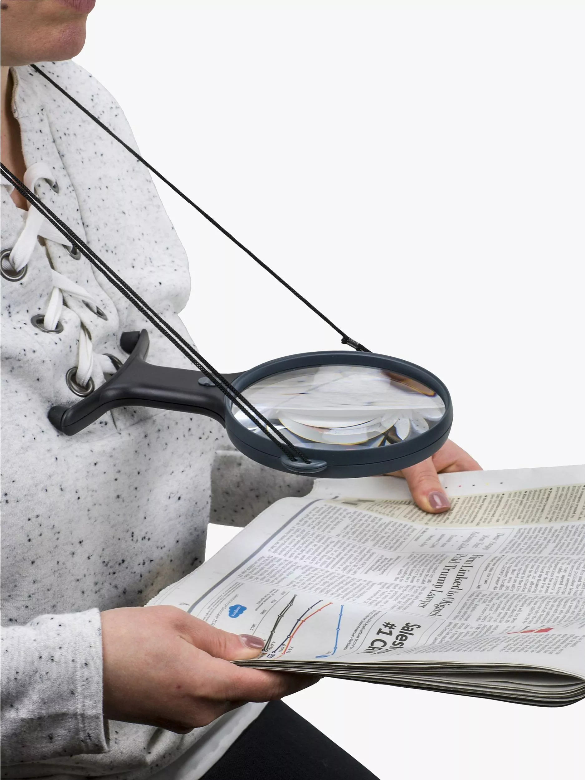 This hands-free magnifier has an acrylic lens with 2x magnification that allows for greater viewing flexibility without adding undue stress to your neck.