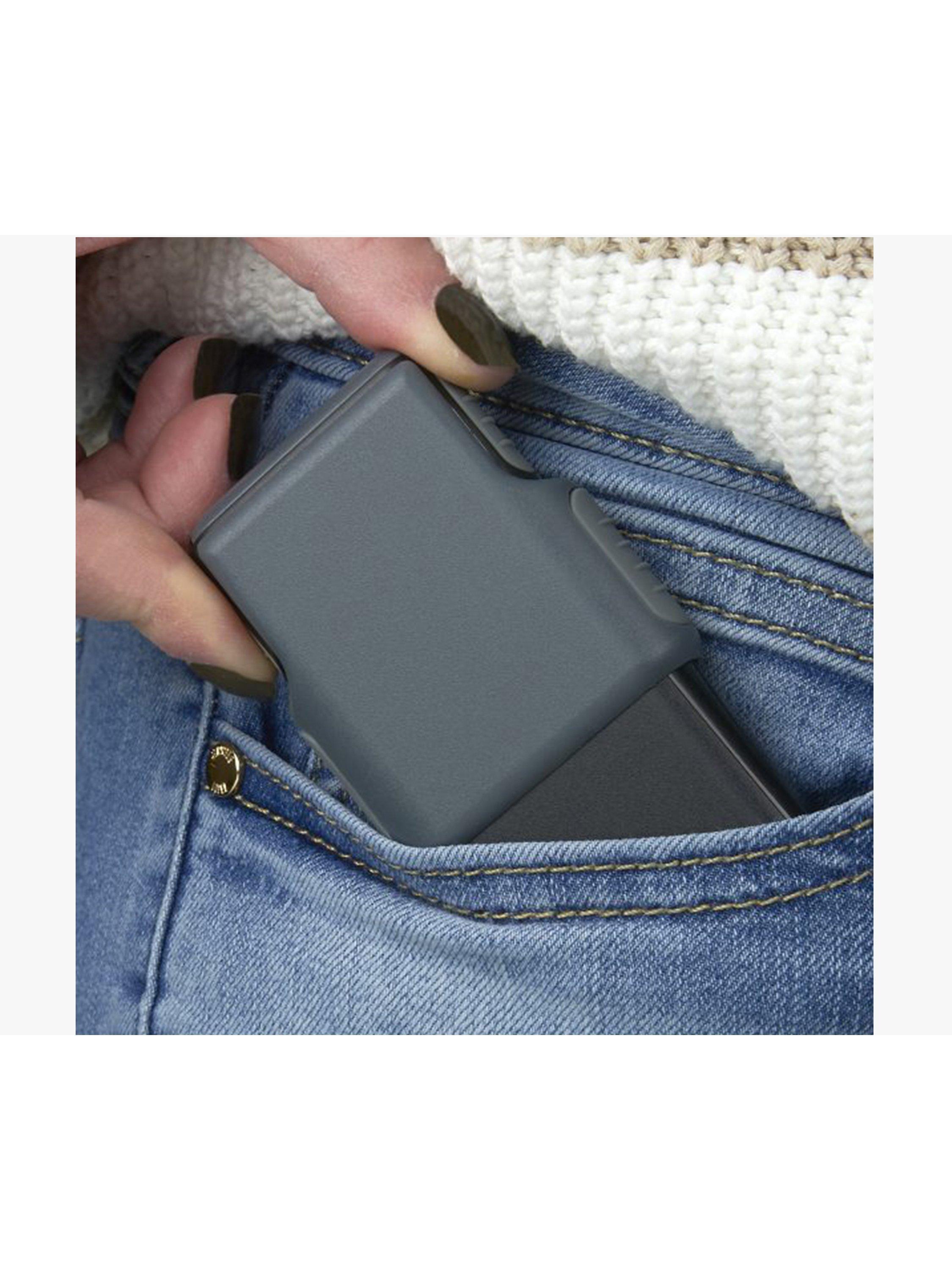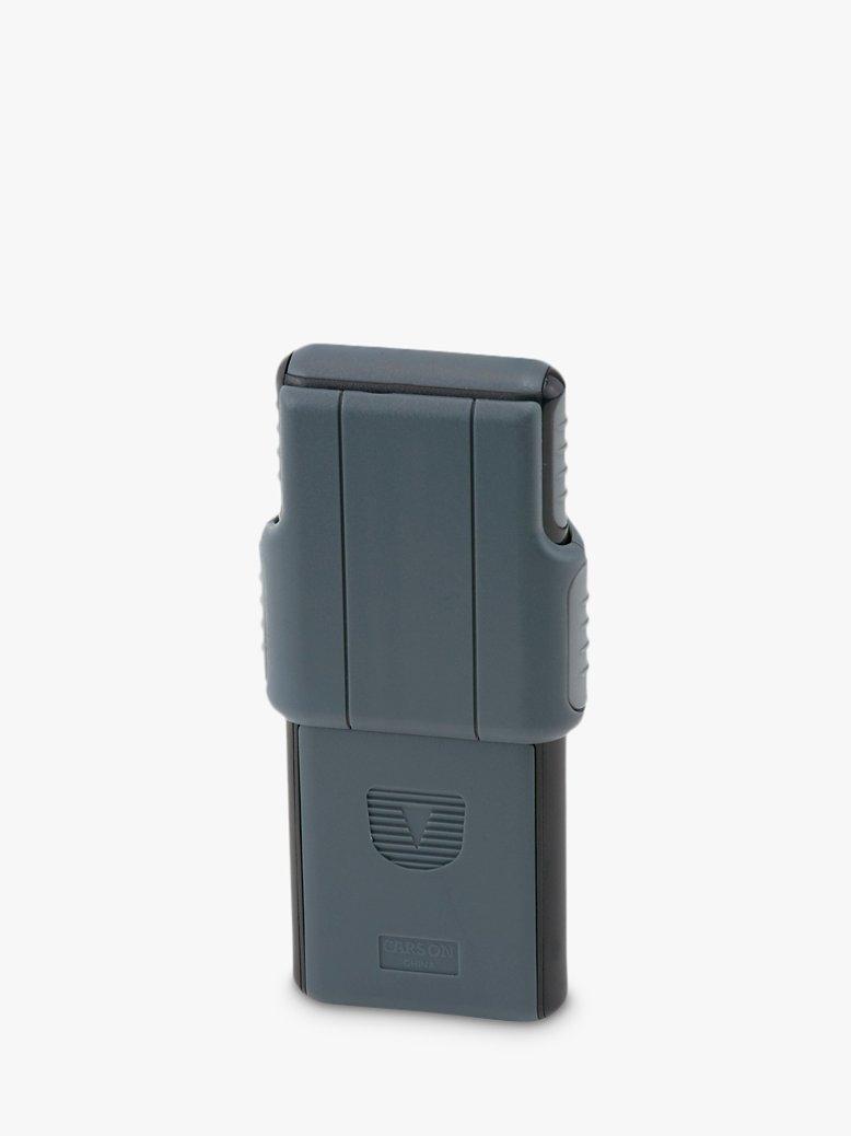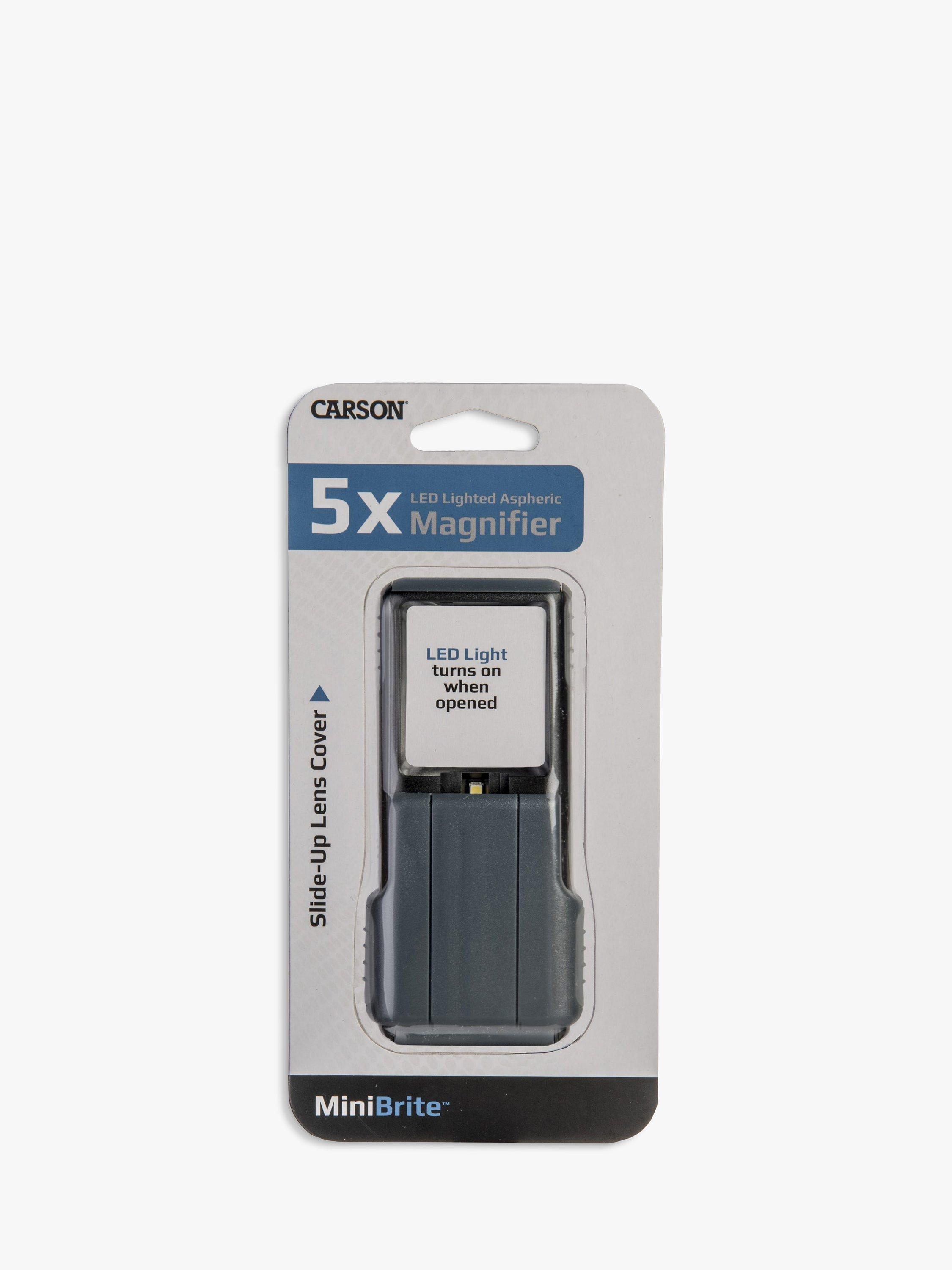 The MiniBrite is a compact, slide-out 5 x magnifier with a protective plastic sleeve.