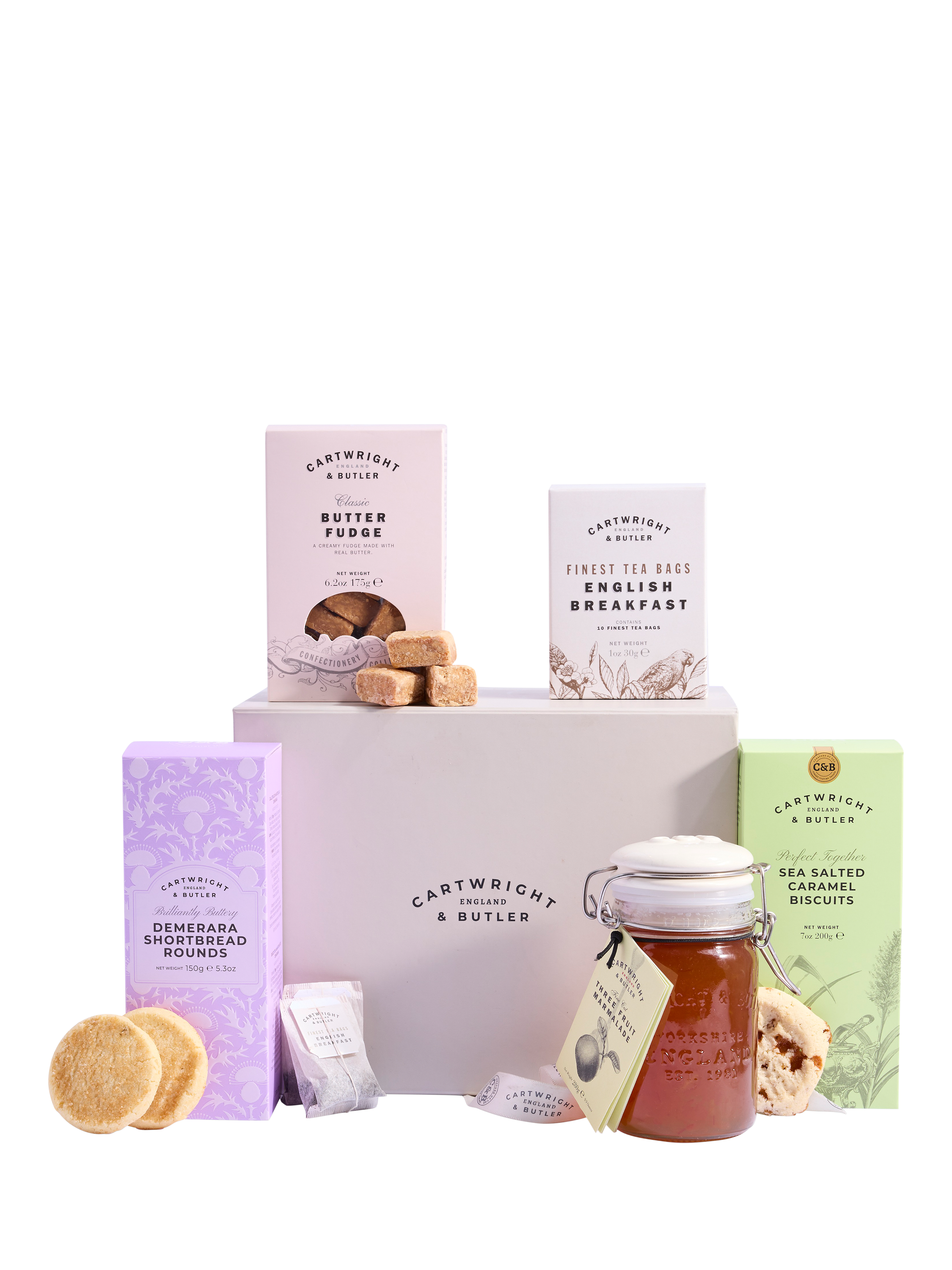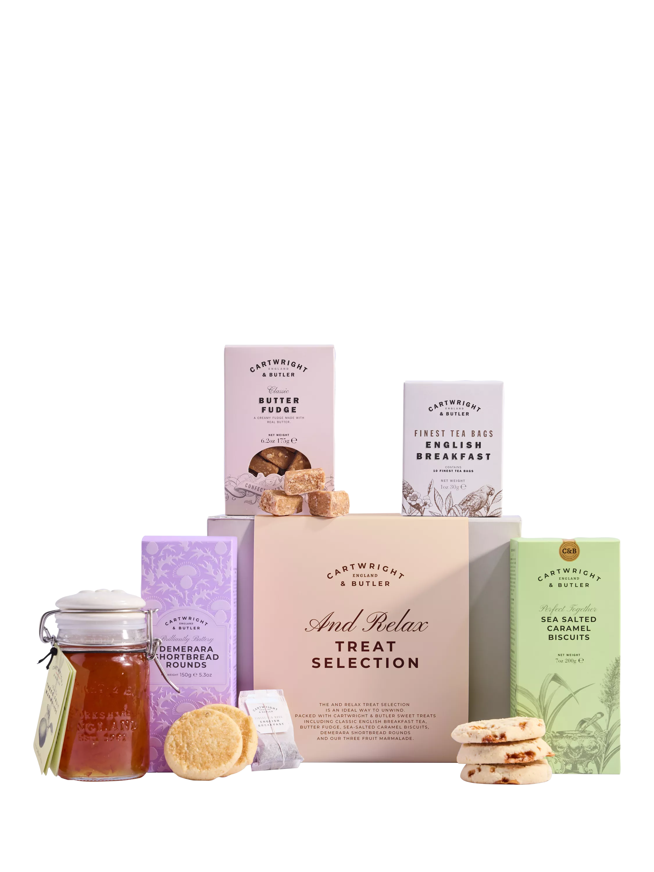 And relax - this thoughtfully curated gift box is an invitation to slow down and enjoy the moment. Filled with some favourite teatime treats, from Fine Cut Three Fruit Marmalade to rich butter fudge, indulgent Salted Caramel Biscuits, crumbly Demerara Shortbread Rounds and classic English Breakfast tea. Perfect for quiet afternoons or well-earned breaks.