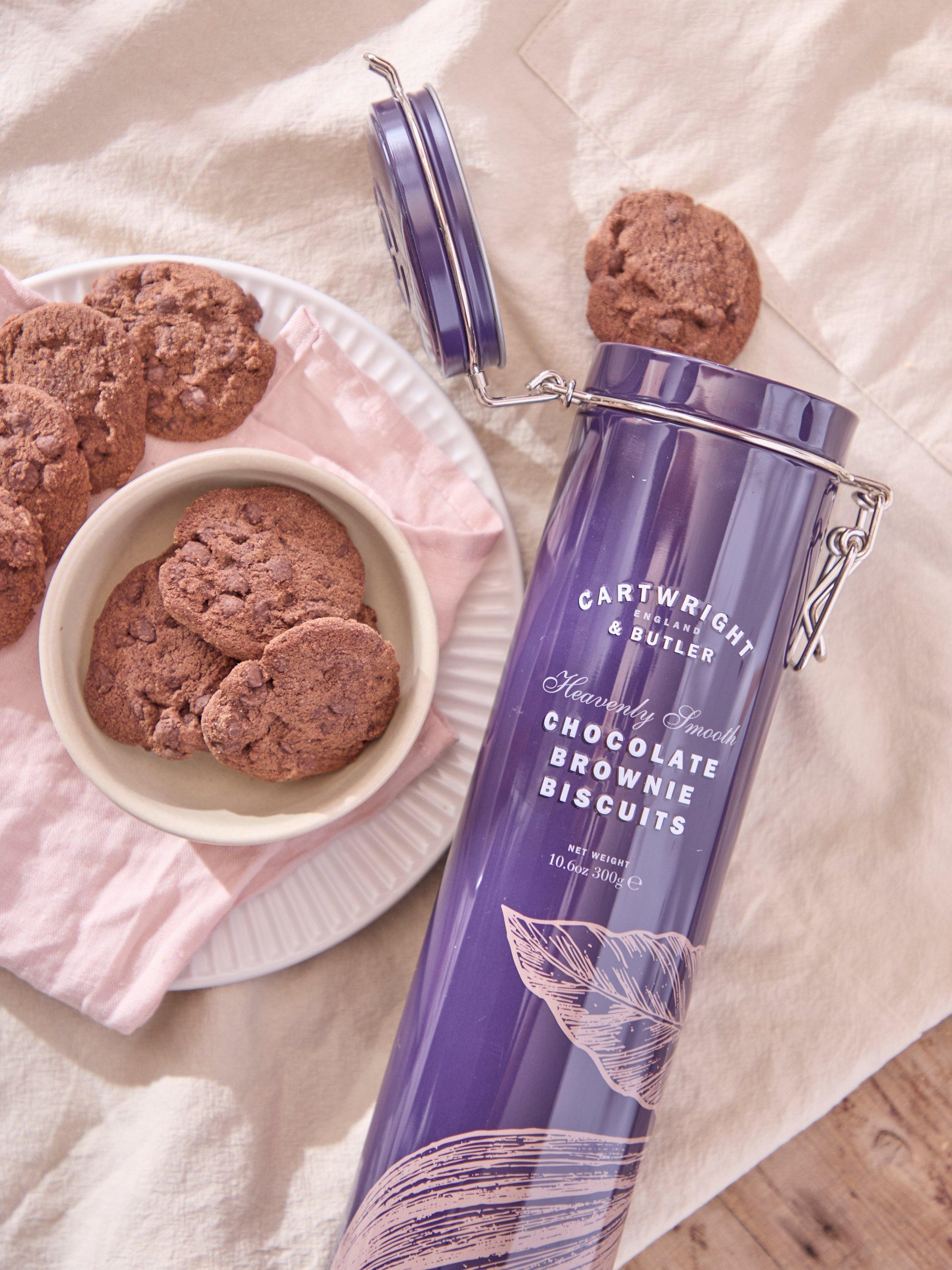 A rich, smooth slice of chocolatey heaven that is the perfect pairing with your morning coffee. Presented here in a signature biscuit tin that comes with a clip lid.
