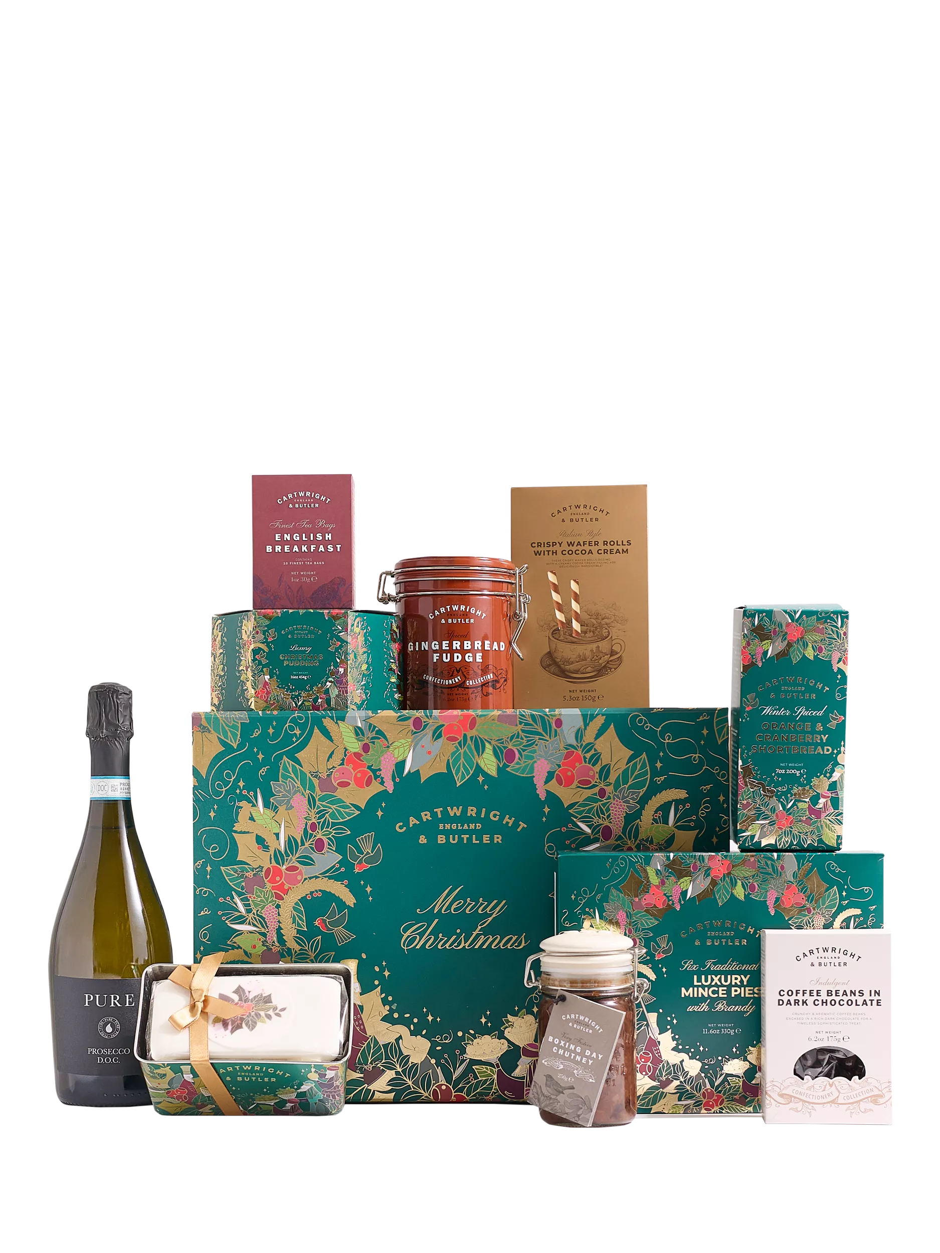 The Christmas Sparkles Hamper from Cartwright & Butler makes a fabulous Christmas gift. Packed to the brim with delicious goodies, including: rich Christmas fruit cake, brandy mince pies, delicious fudge, tea and biscuits - to name just a few. Finished off with a bottle of crisp Prosecco.