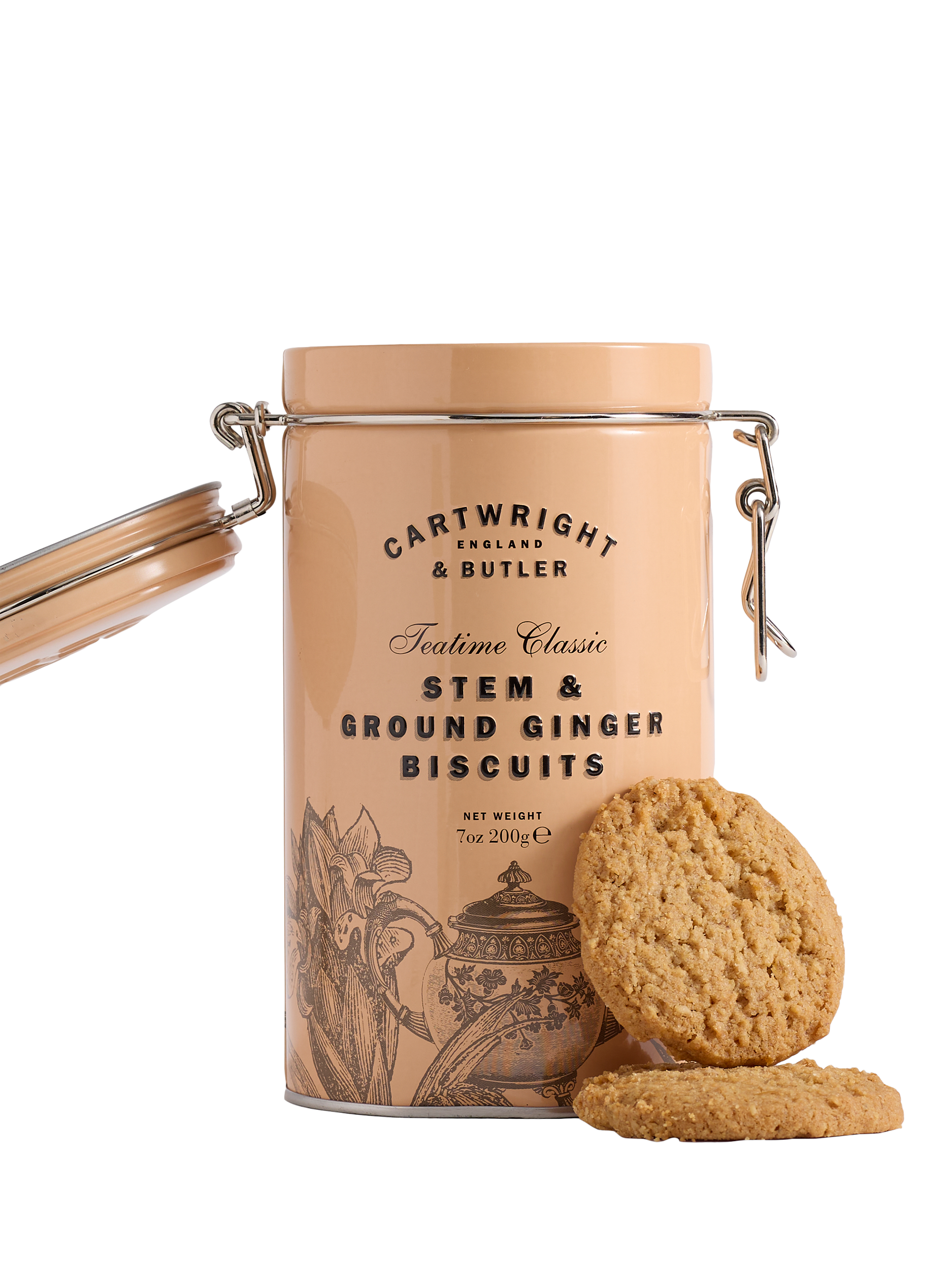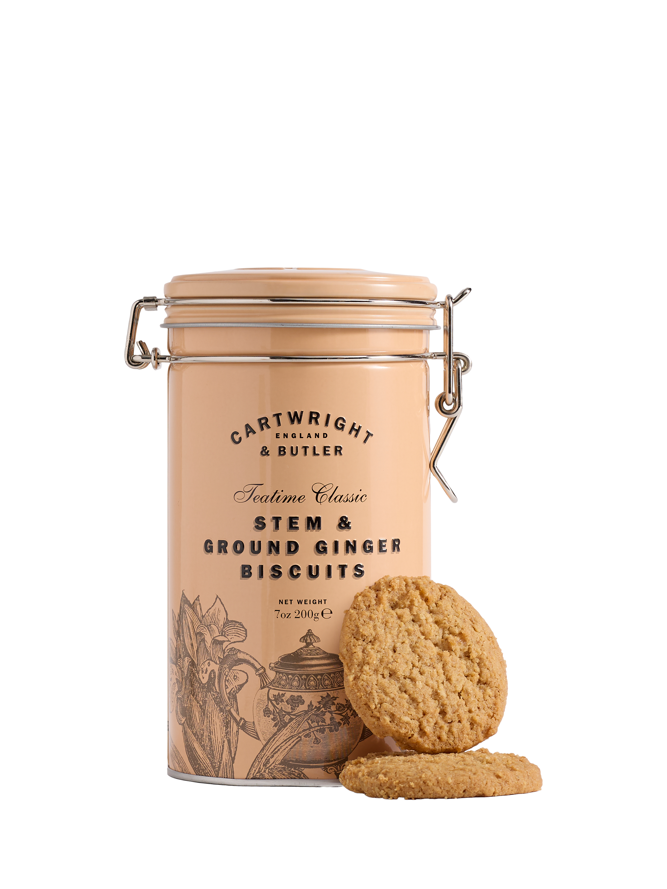 Cartwright and Butler's refined version of a classic ginger biscuit. The recipe contains both ground and stem ginger to spice the dough, which is then baked to a crisp, light snap. Presented in a beautiful biscuit tin, complete with a signature clip-lid.
