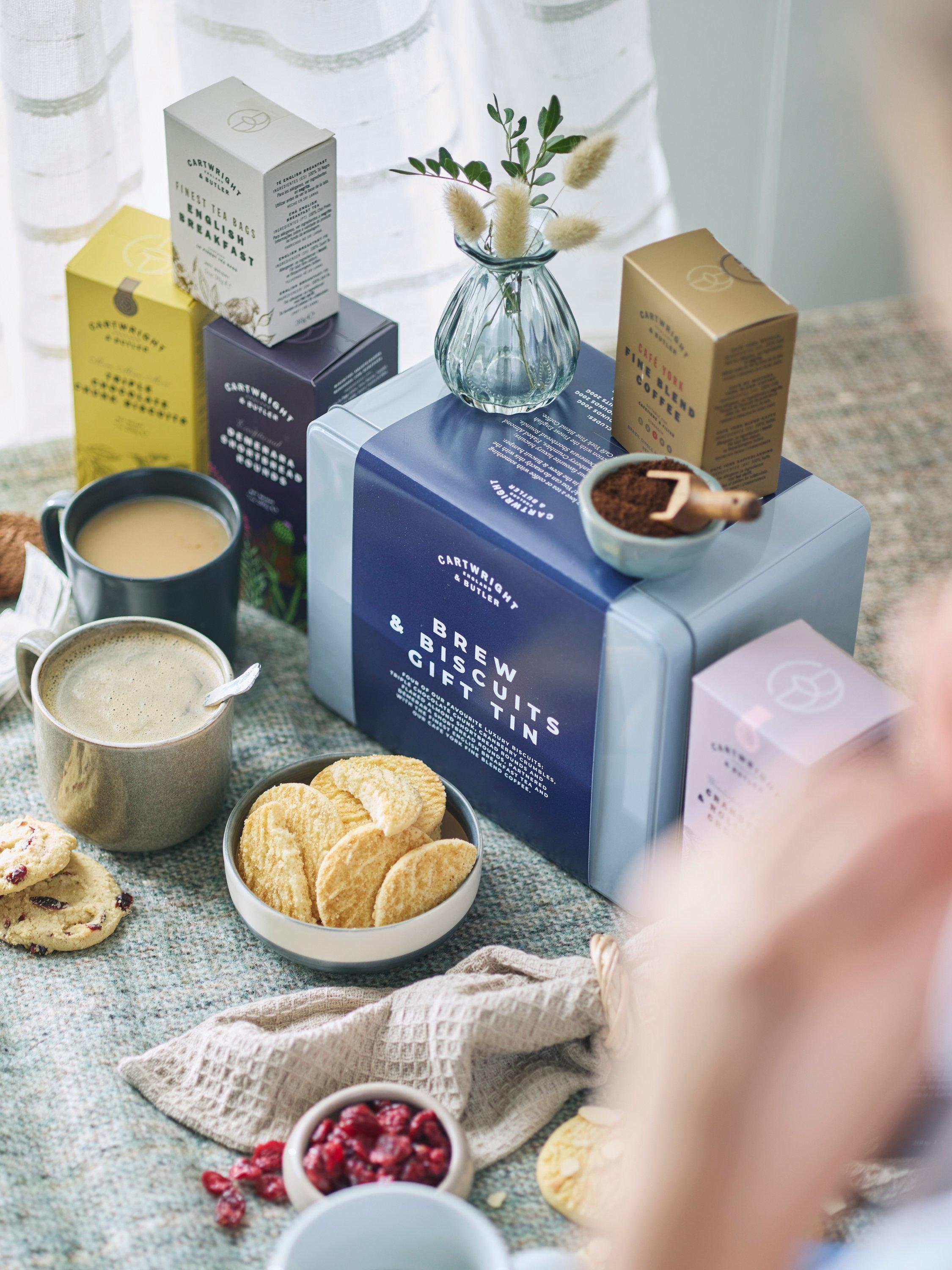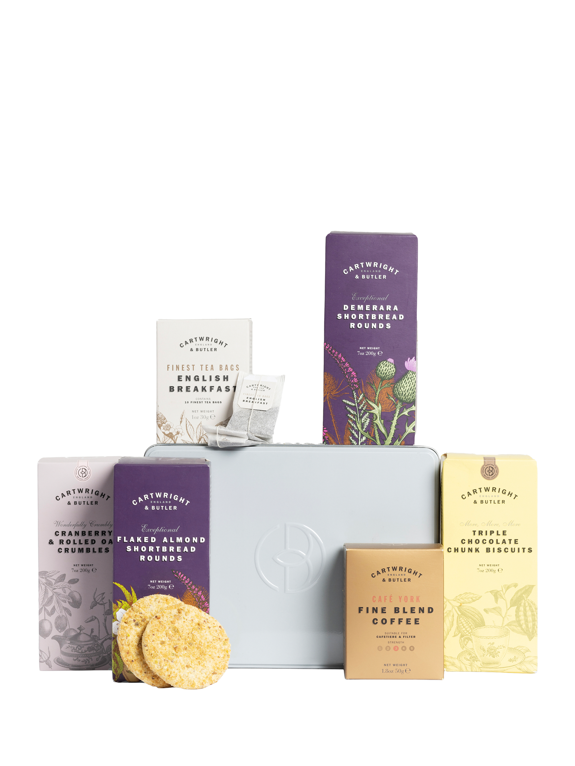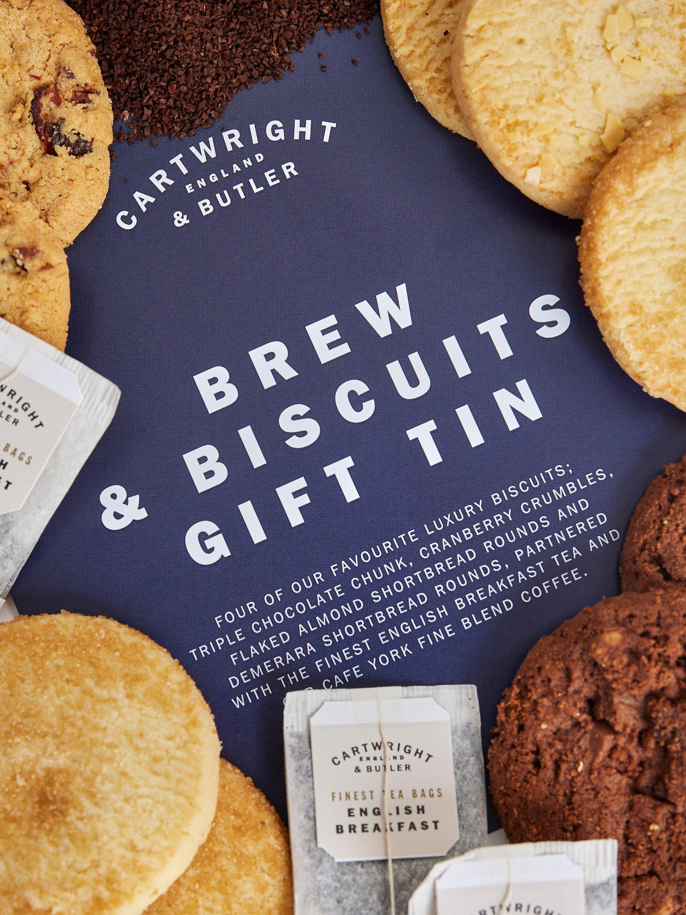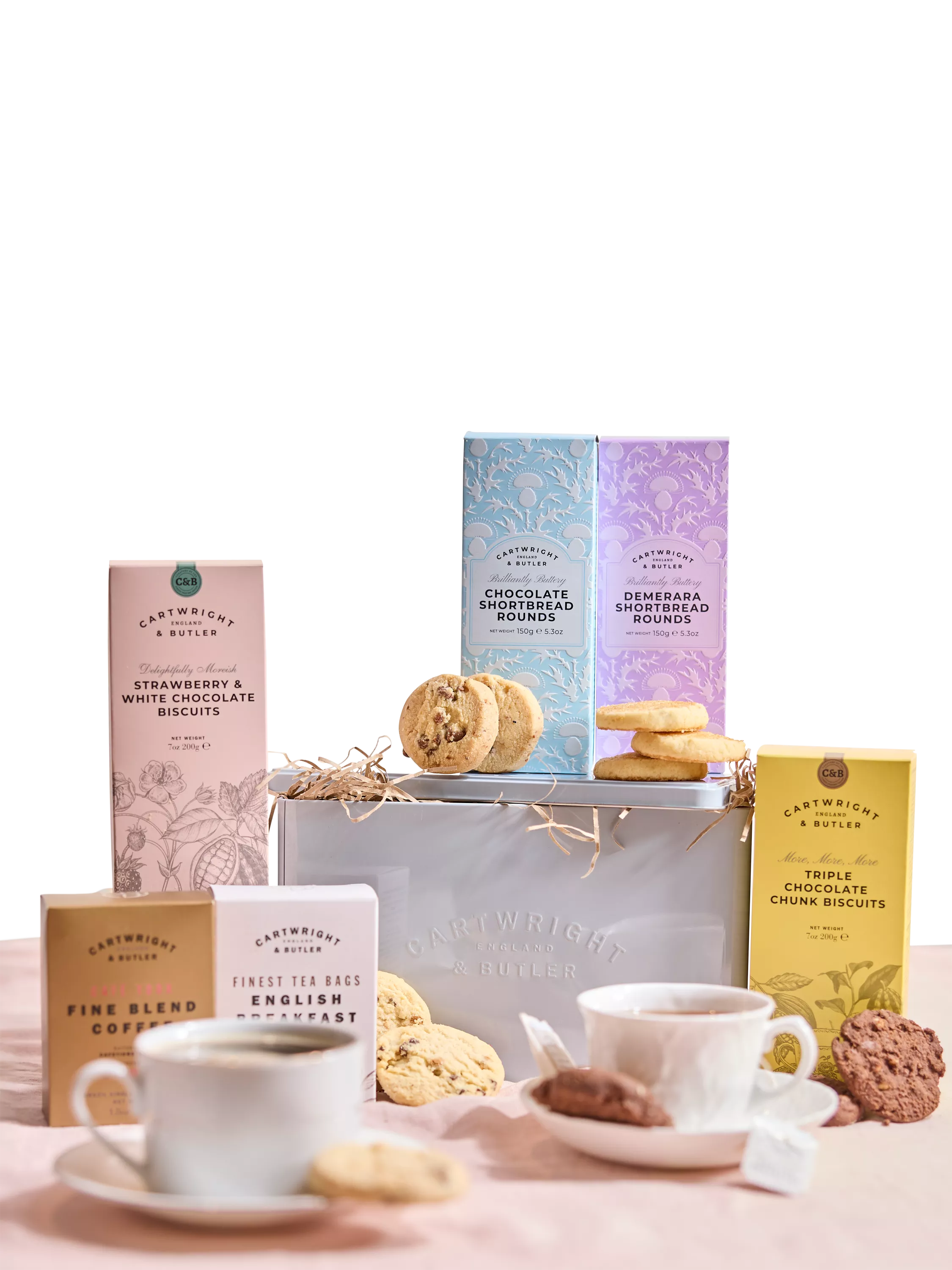 The Brew & Biscuit Gift Box brings together a generous assortment of biscuits, perfect for pairing with a steaming hot cup of tea or hot chocolate. From crumbly Demerara Shortbread Rounds and Chocolate Shortbread Rounds to moreish Triple Chocolate Chunk Biscuits and Strawberry & White Chocolate Biscuits, all together with classic English Breakfast Tea and Fine Blend Coffee. The perfect gift box for slow mornings, afternoon breaks and everything in between.