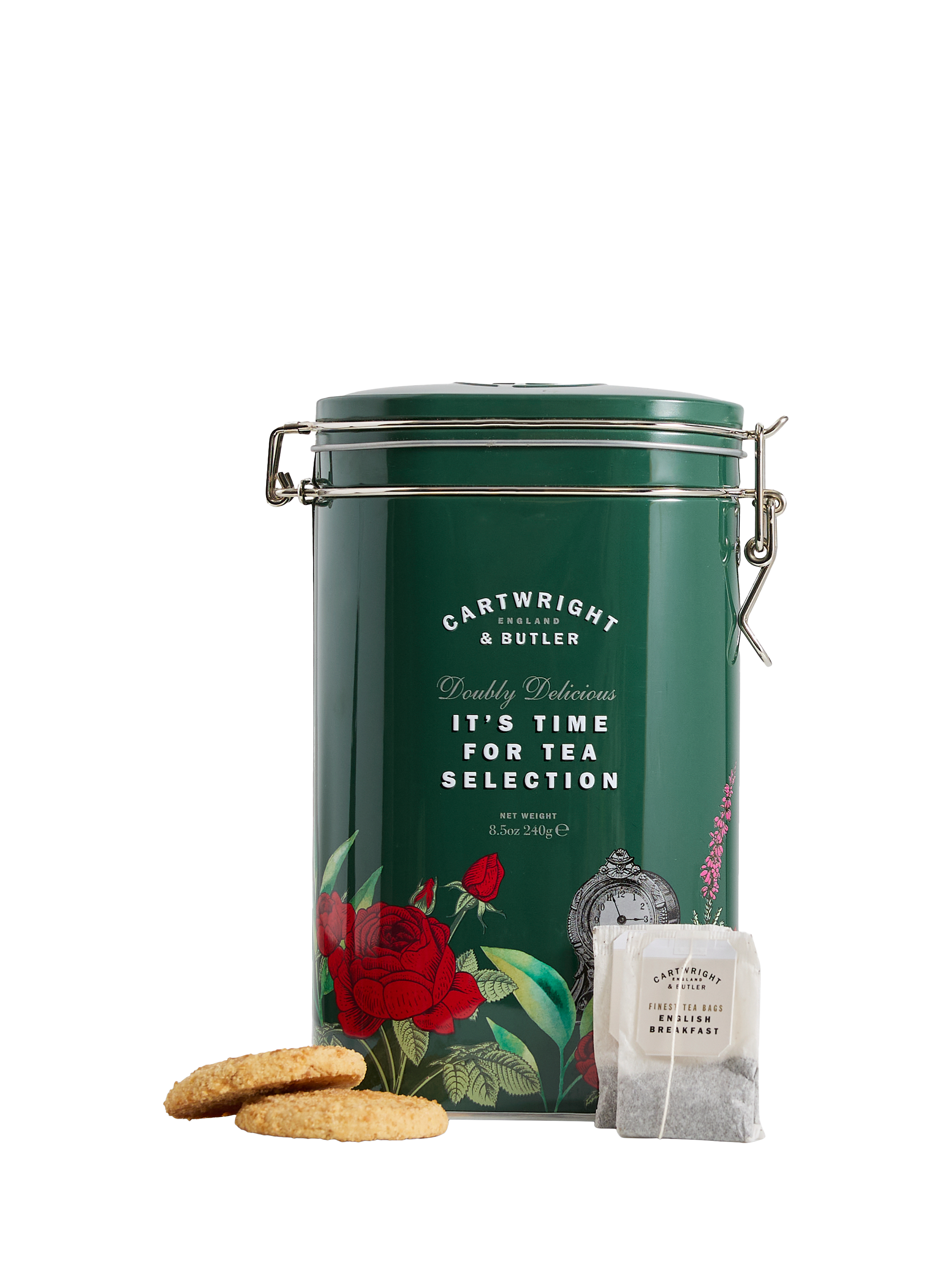 This treat for tea-lovers includes a Cartwright & Butler sea salted caramel shortbread (150g) and a pack of English Breakfast tea (90g) presented in an attractive, reusable clip-top tin.