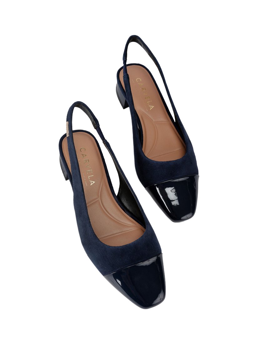 Reworking the classic ballerina pump, this slingback style from Carvela is set on a low block heel with a squared-off pointed toe.