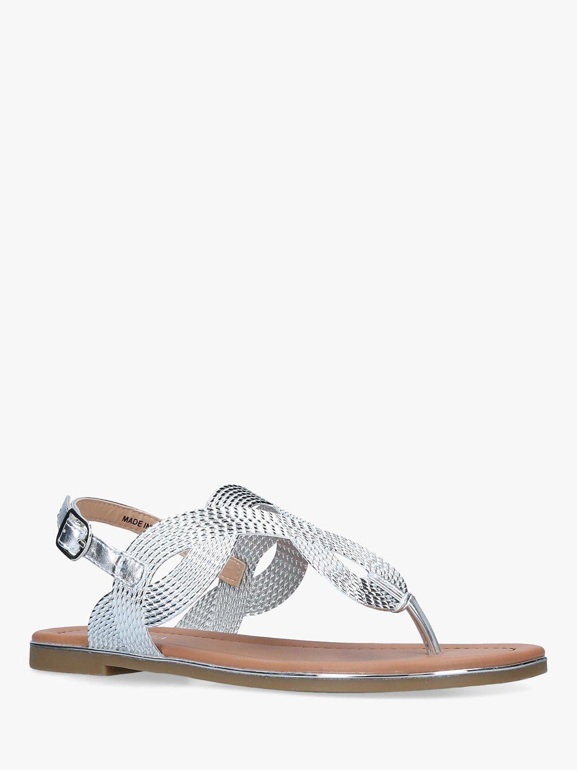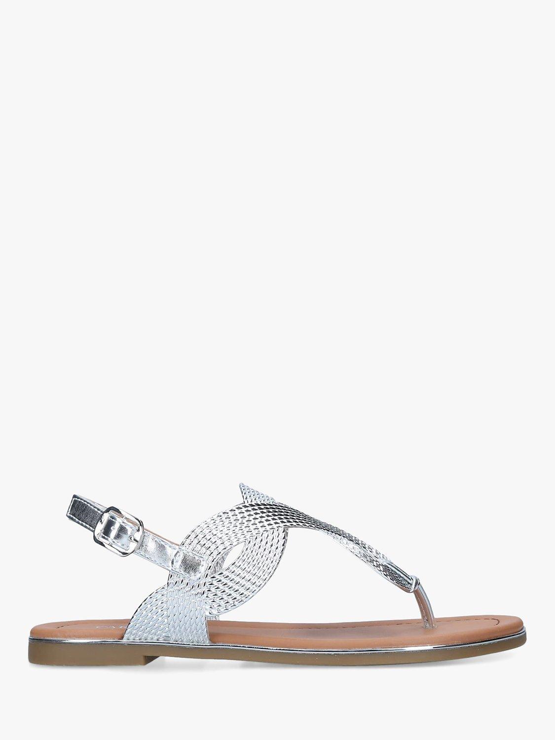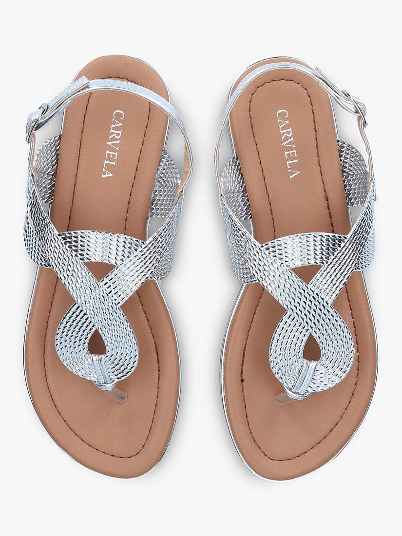 A holiday wardrobe essential, Brisk by Carvela is a comfy flat gleaming metallic sandal, given a design lift with textured accents and an adjustable buckle around the ankle for extra support. Make a chic statement with an ankle-skimming black maxi or keep it casual in denim.