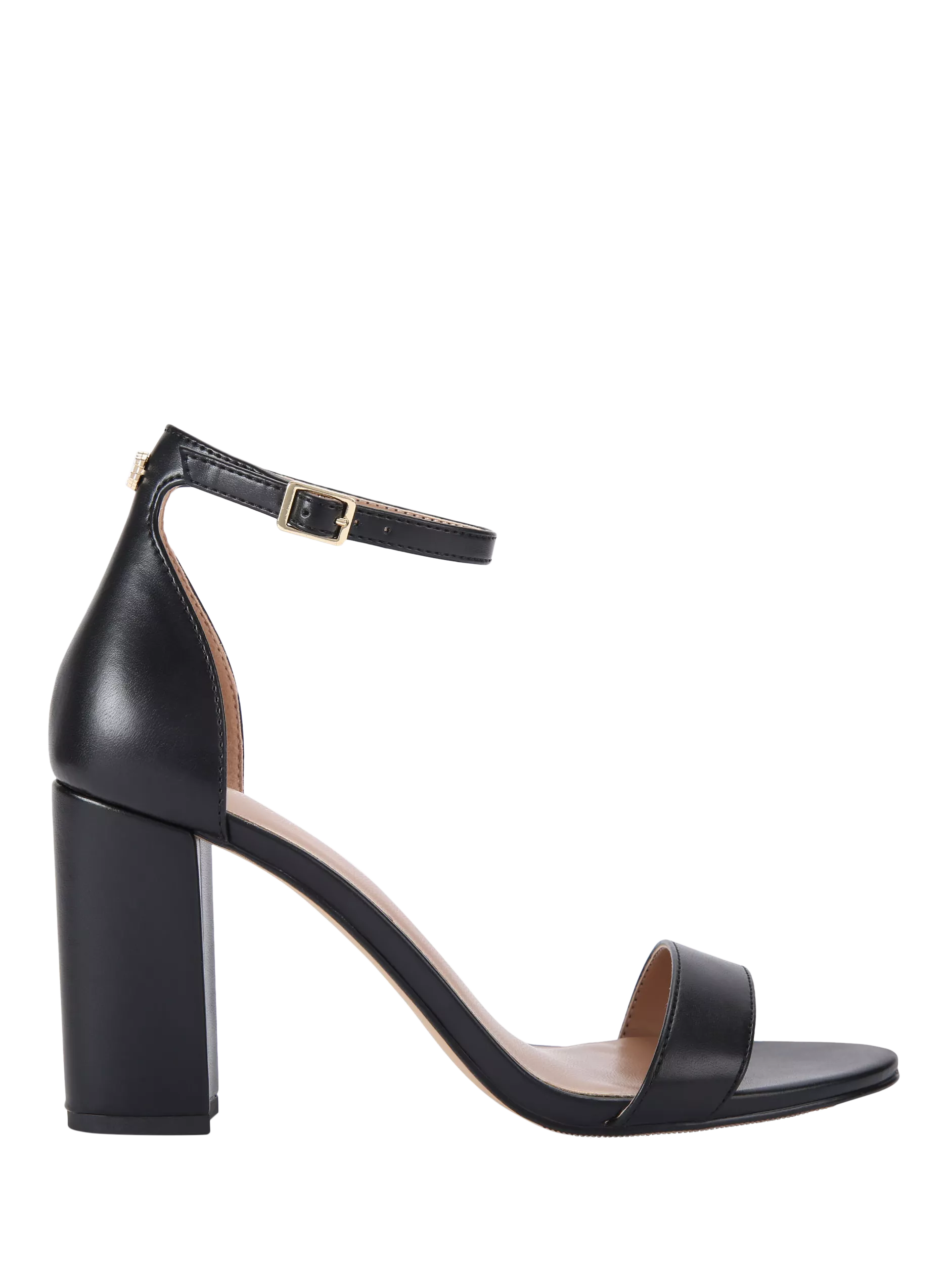 A pair of heeled Carvela sandals. The supportive block heel and adjustable strap deliver lasting comfort, while the open almond toe keeps you feeling cool and confident.