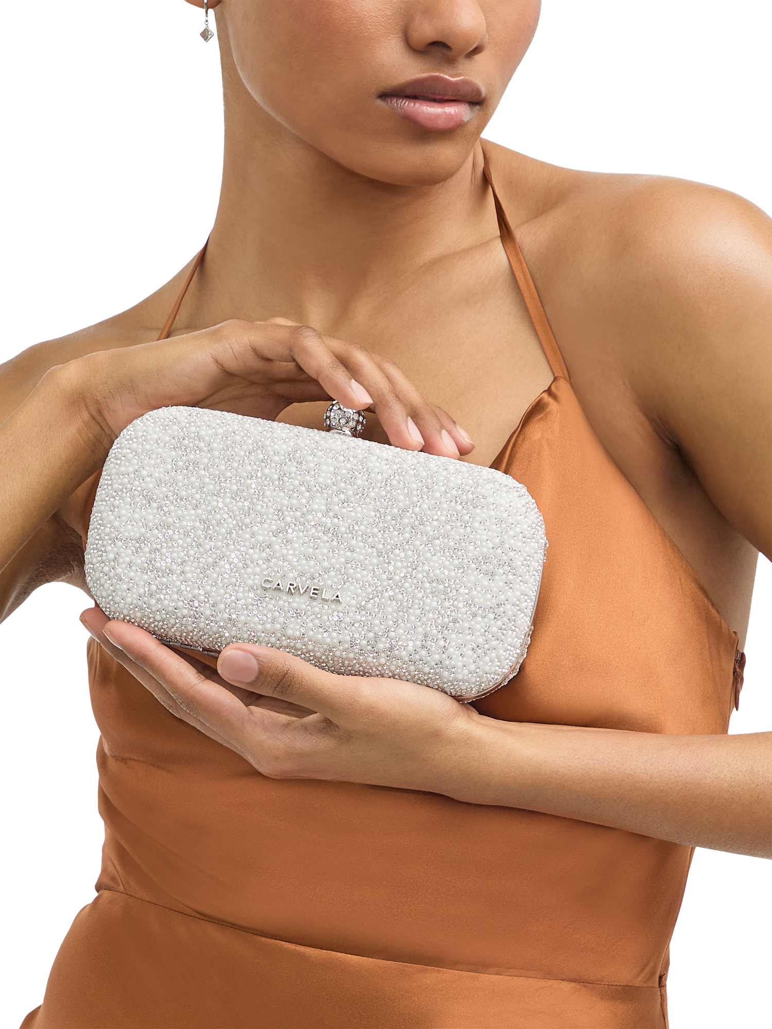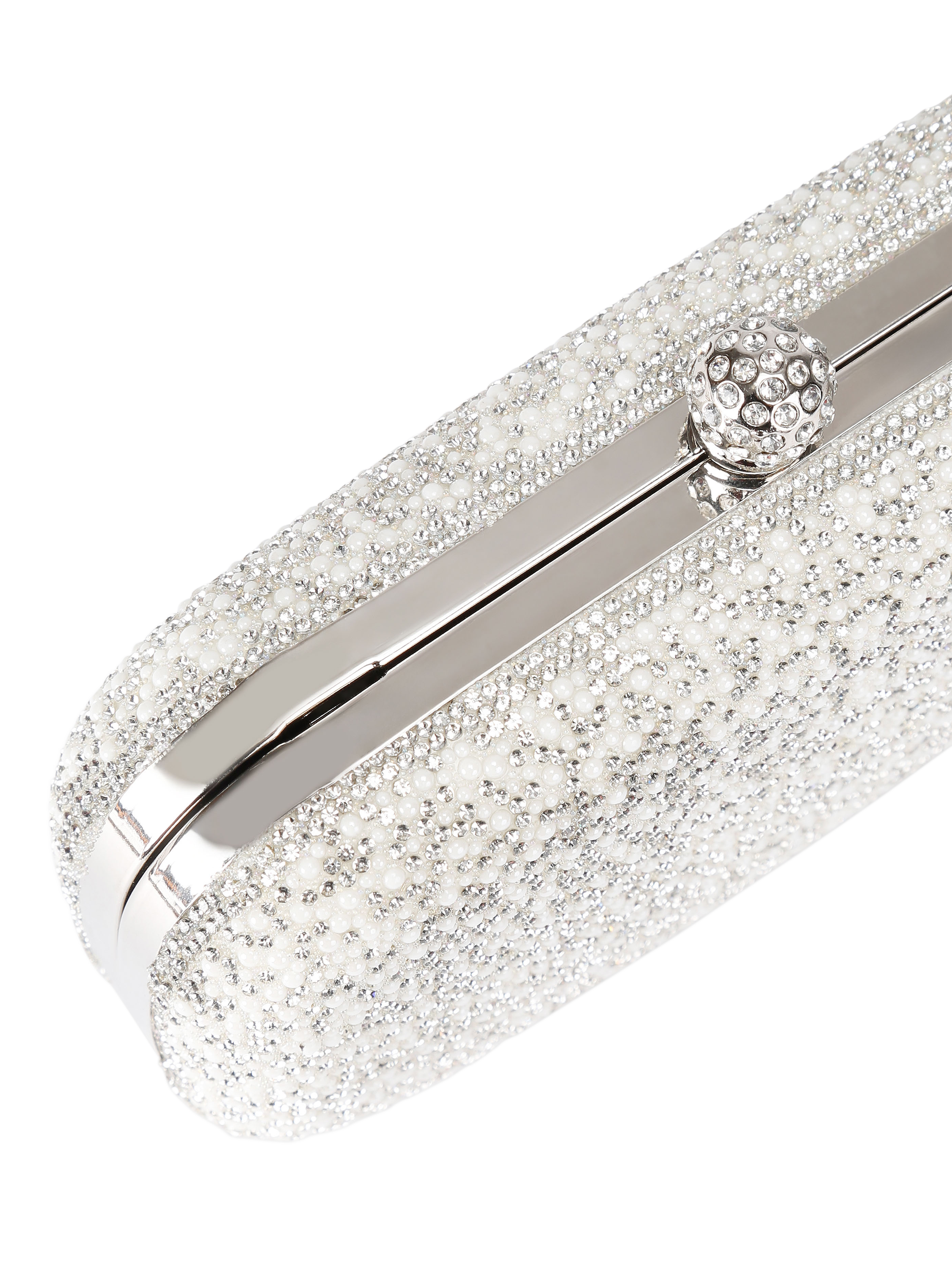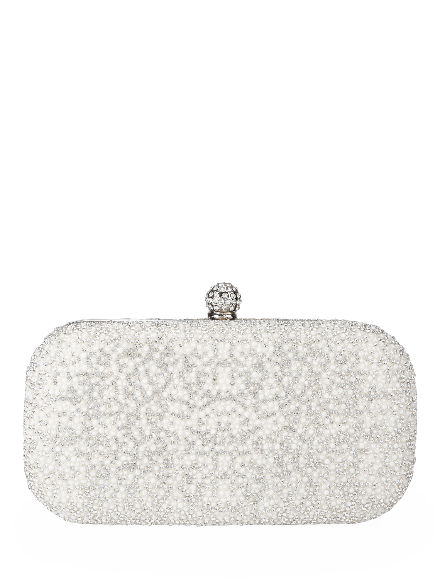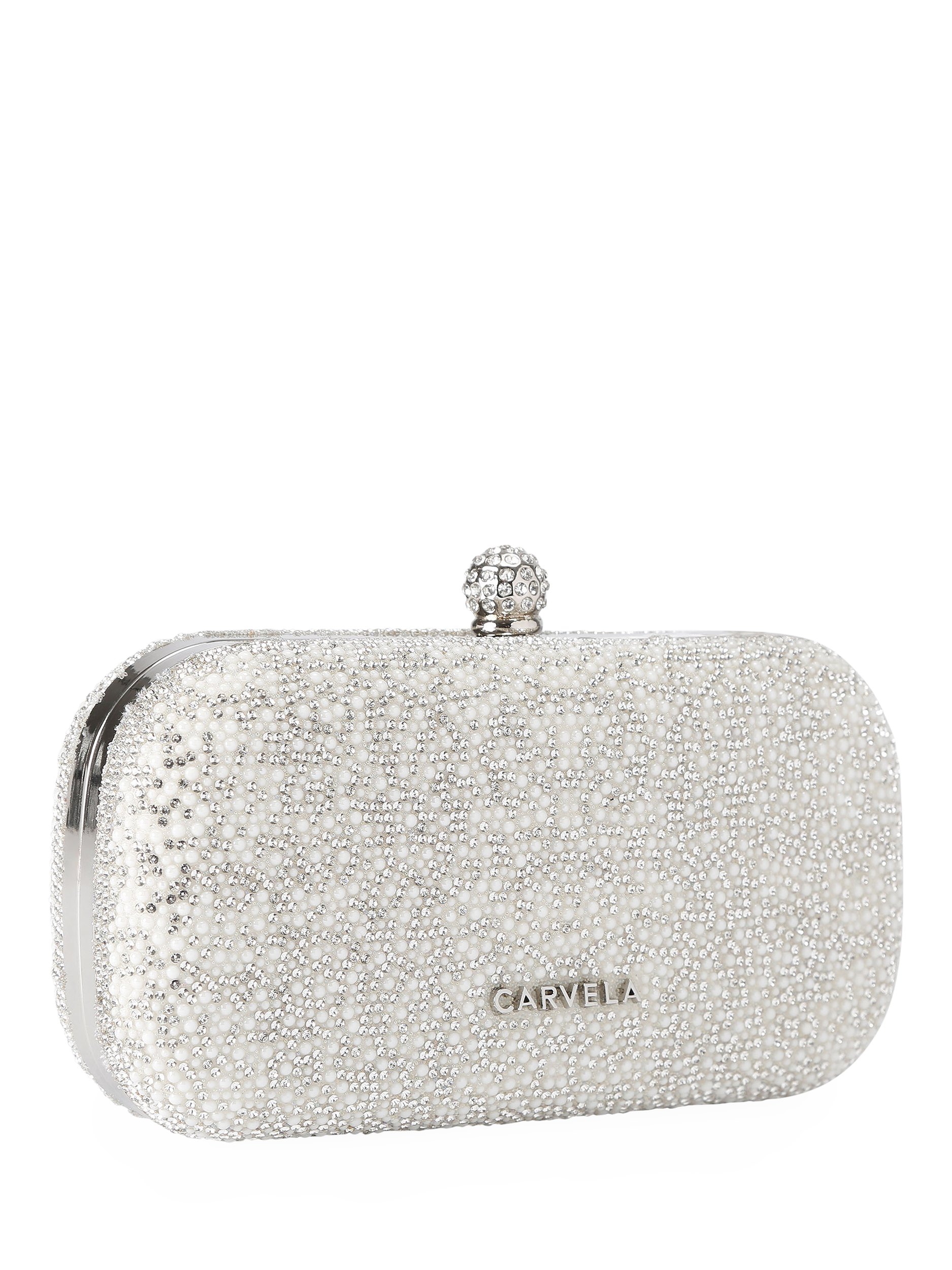 CarvelaCecilia Hard Clutch Bag, White/Silver