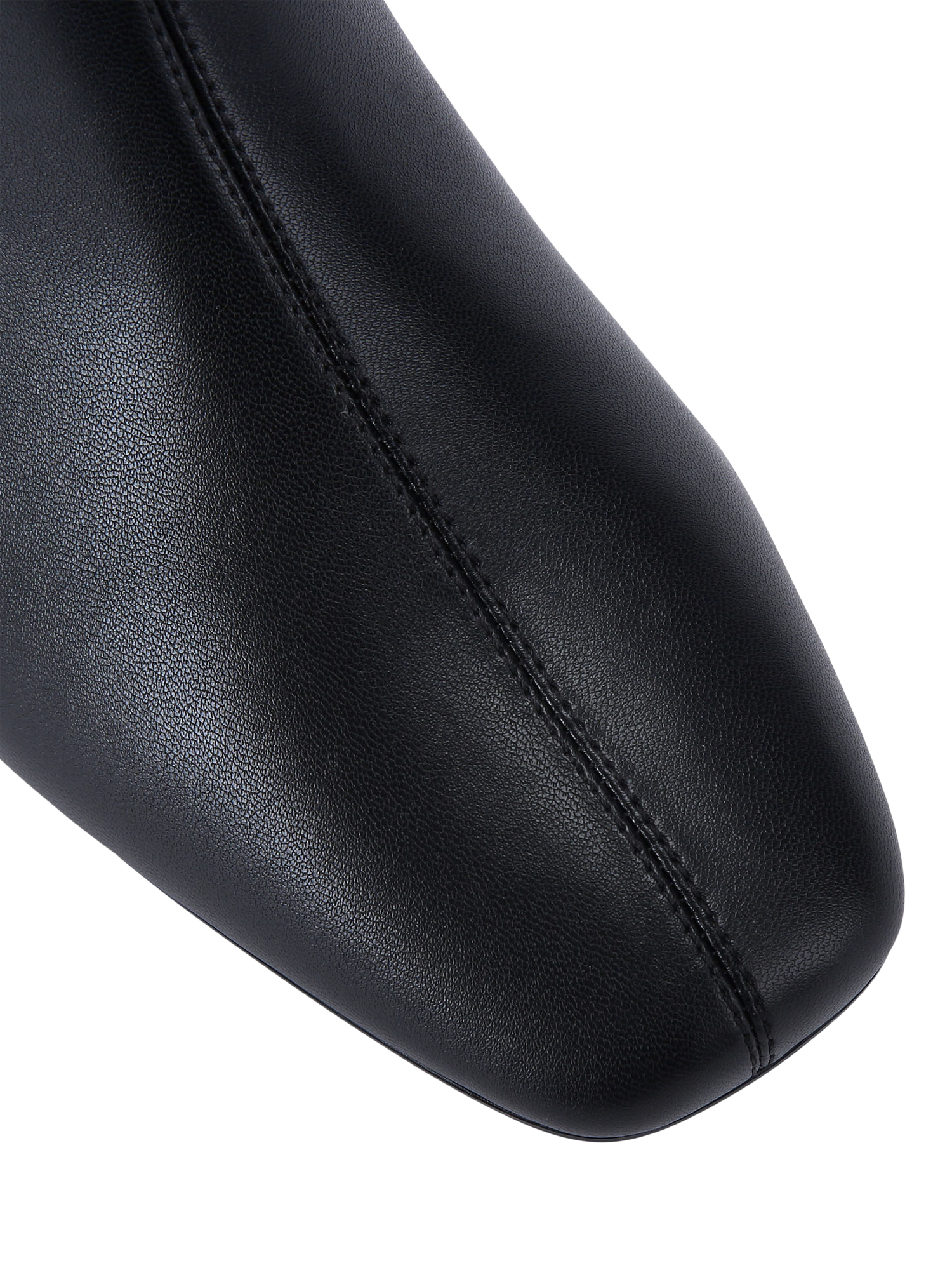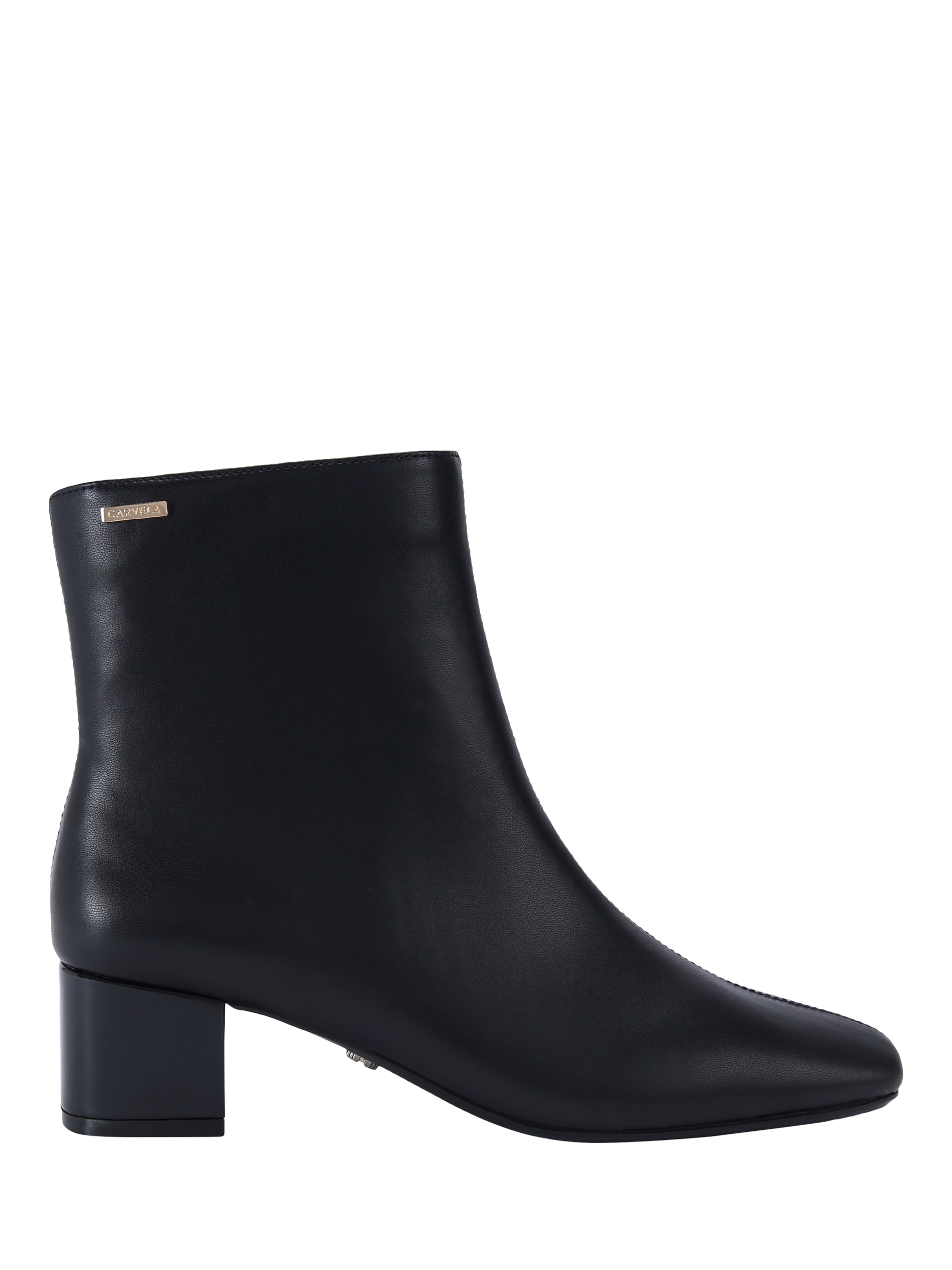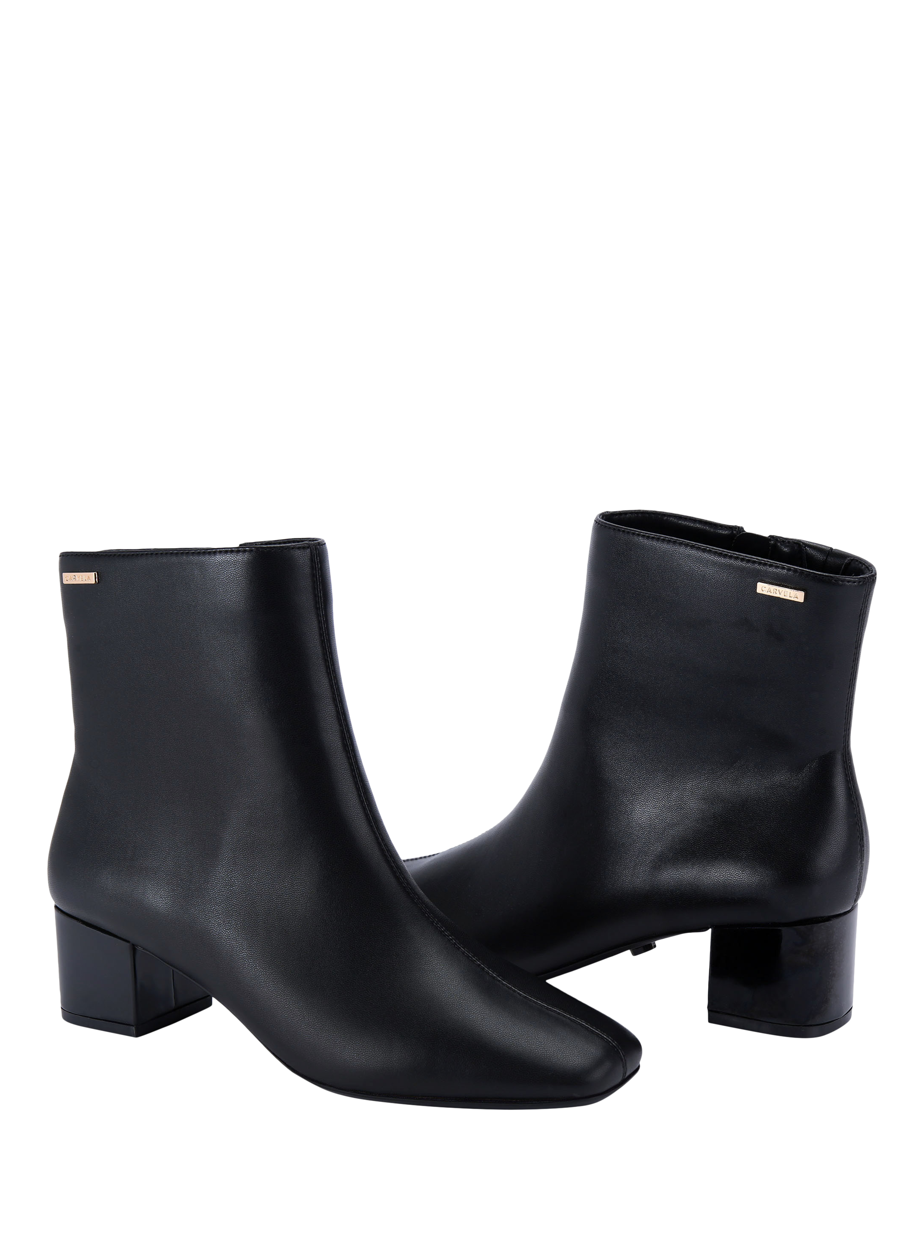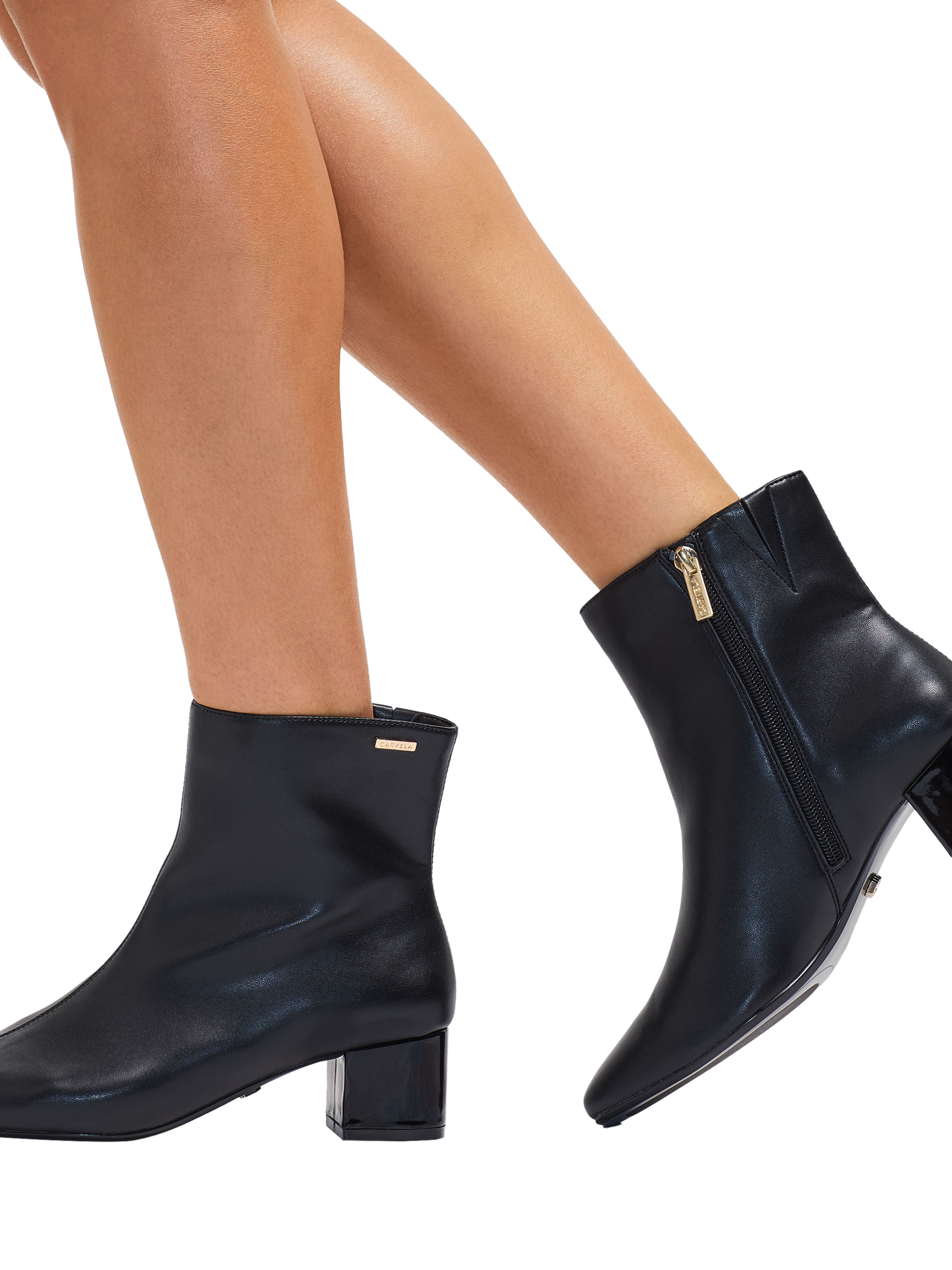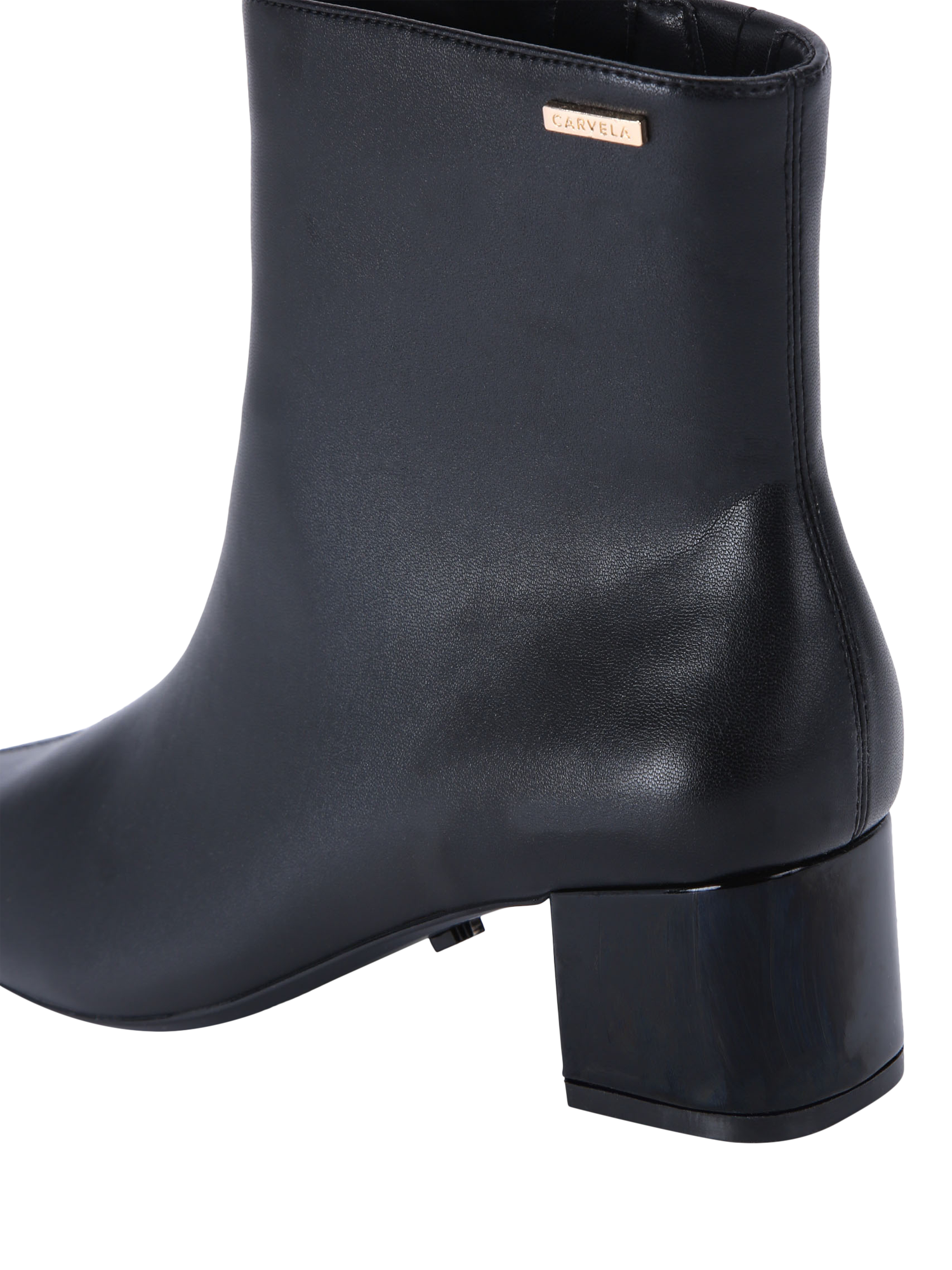 This Cleo Ankle Boot has a smooth black upper with a small gold-tone Carvela branded tab on the outer side of the ankle. An inner side zip offers easy access.