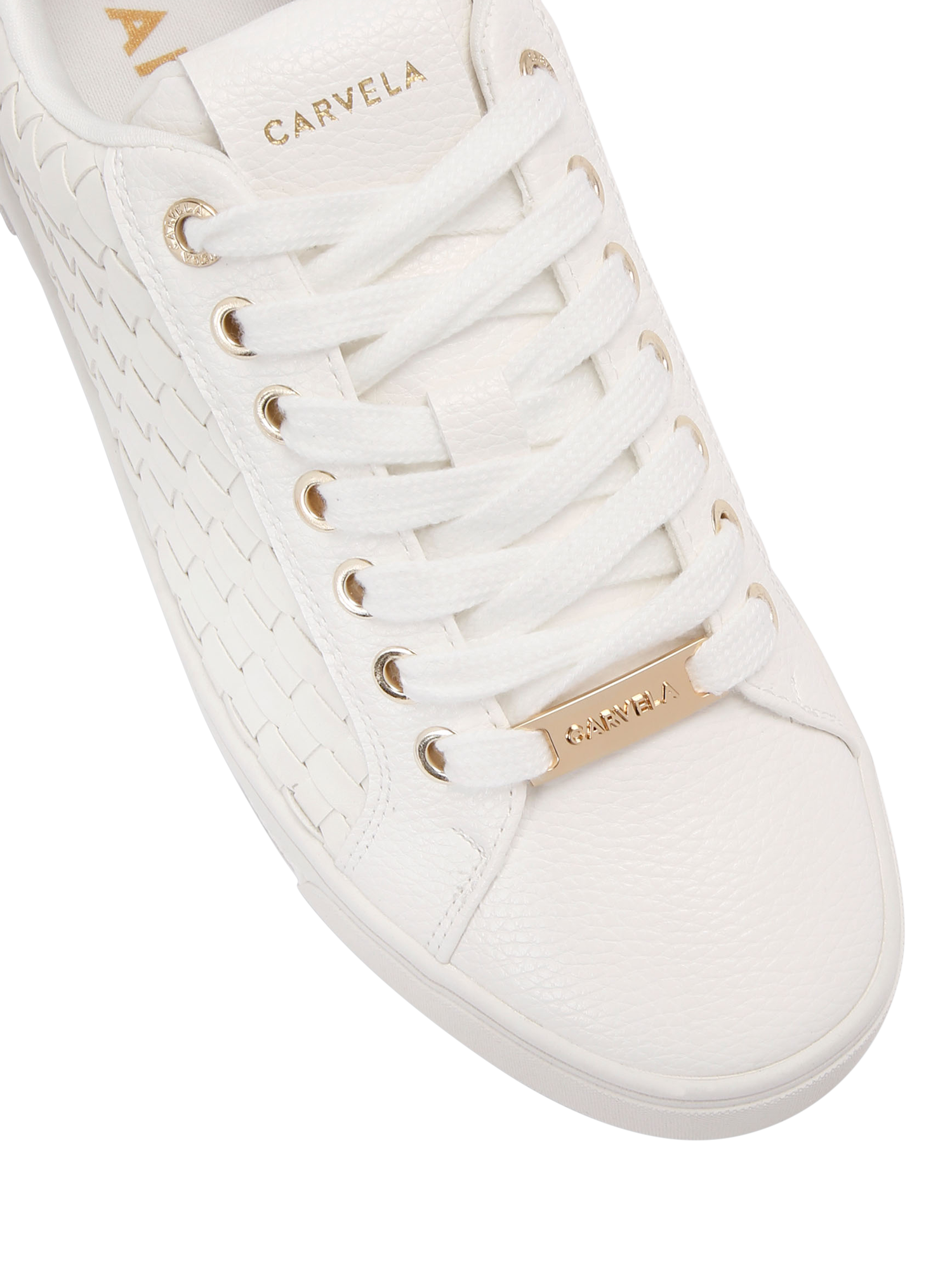 Bringing a fresh take on off-duty dressing, this pair of trainers by Carvela is woven from a soft faux leather fabric, set on a flat heel and finished with a lace-up front.