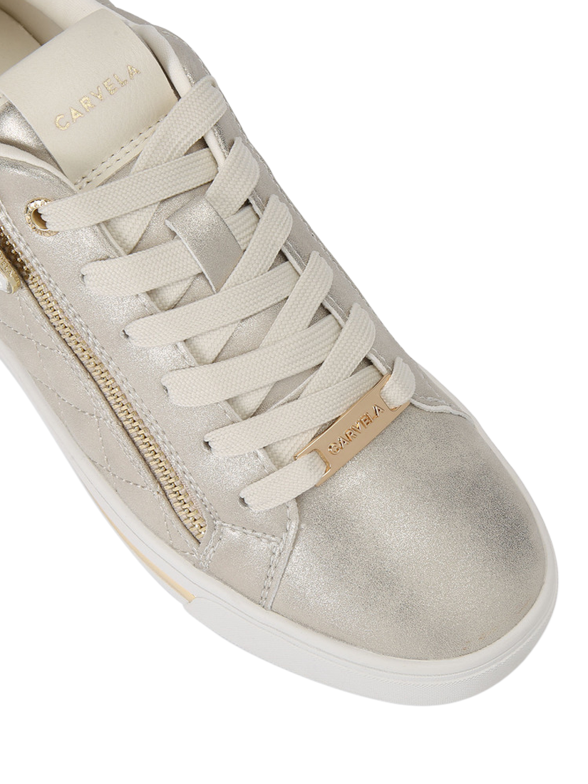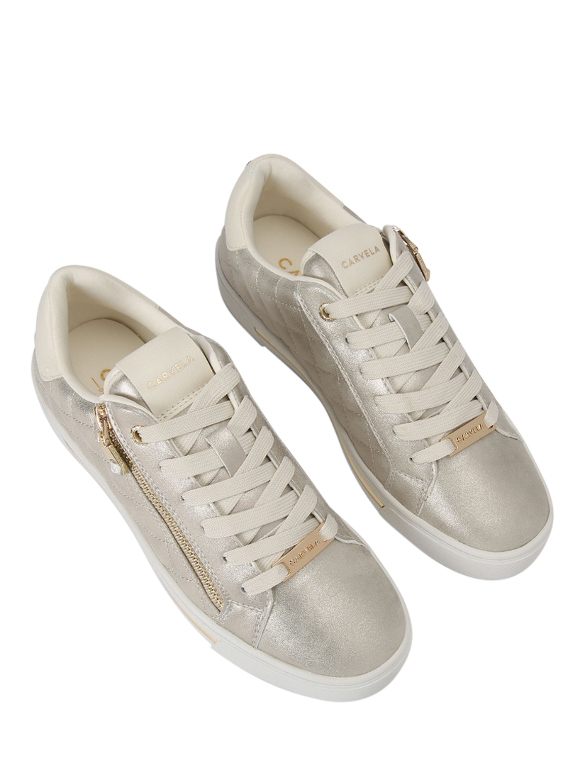 Trainers by Carvela deliver subtle shine and comfort for casual days. With diamond quilted uppers, a zip fastening and round toe, a flat sole ensures effortless movement from morning to night.
