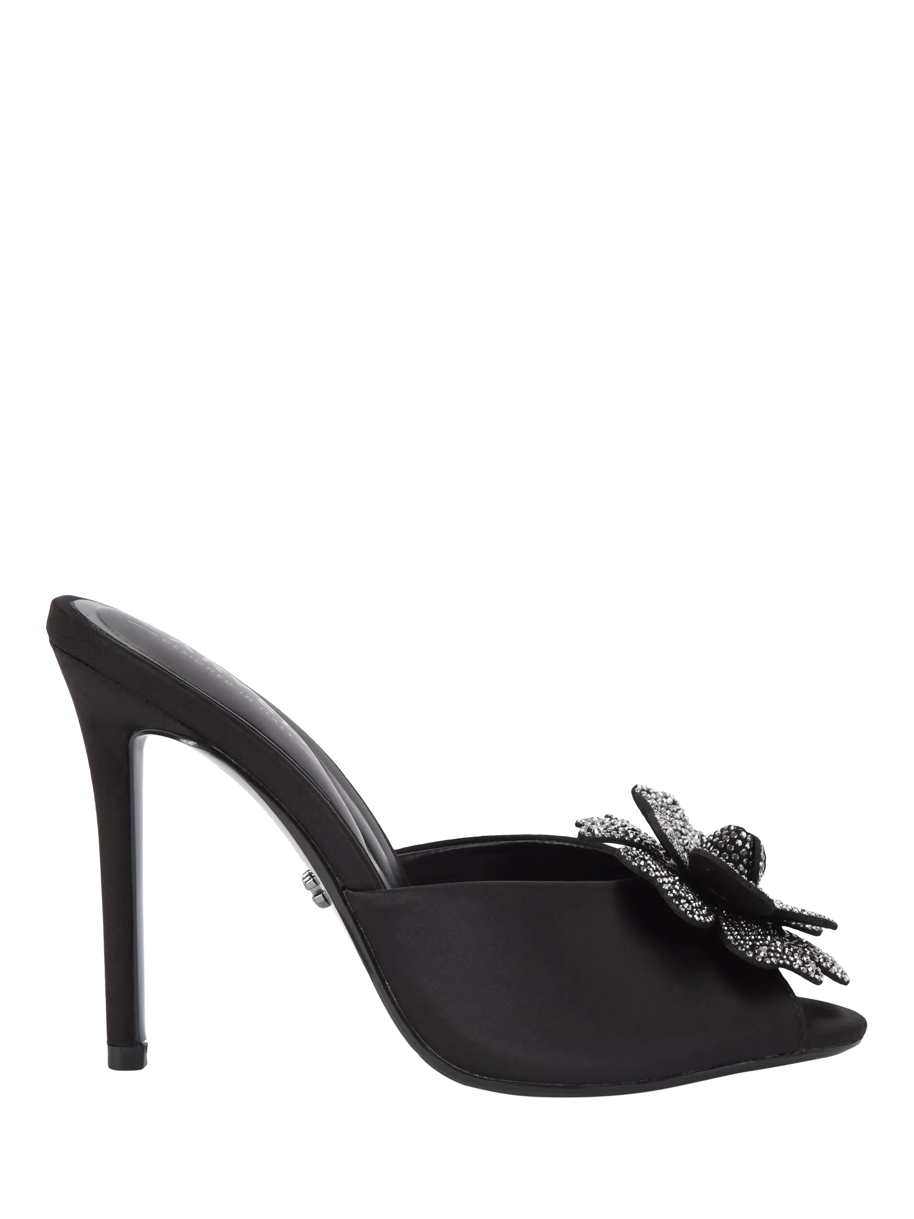 High stiletto mules from Carvela, featuring a striking open toe with an eye-catching embellished flower. Their slip-on design blends clever style with ease, delivering impact and comfort whenever you need it.