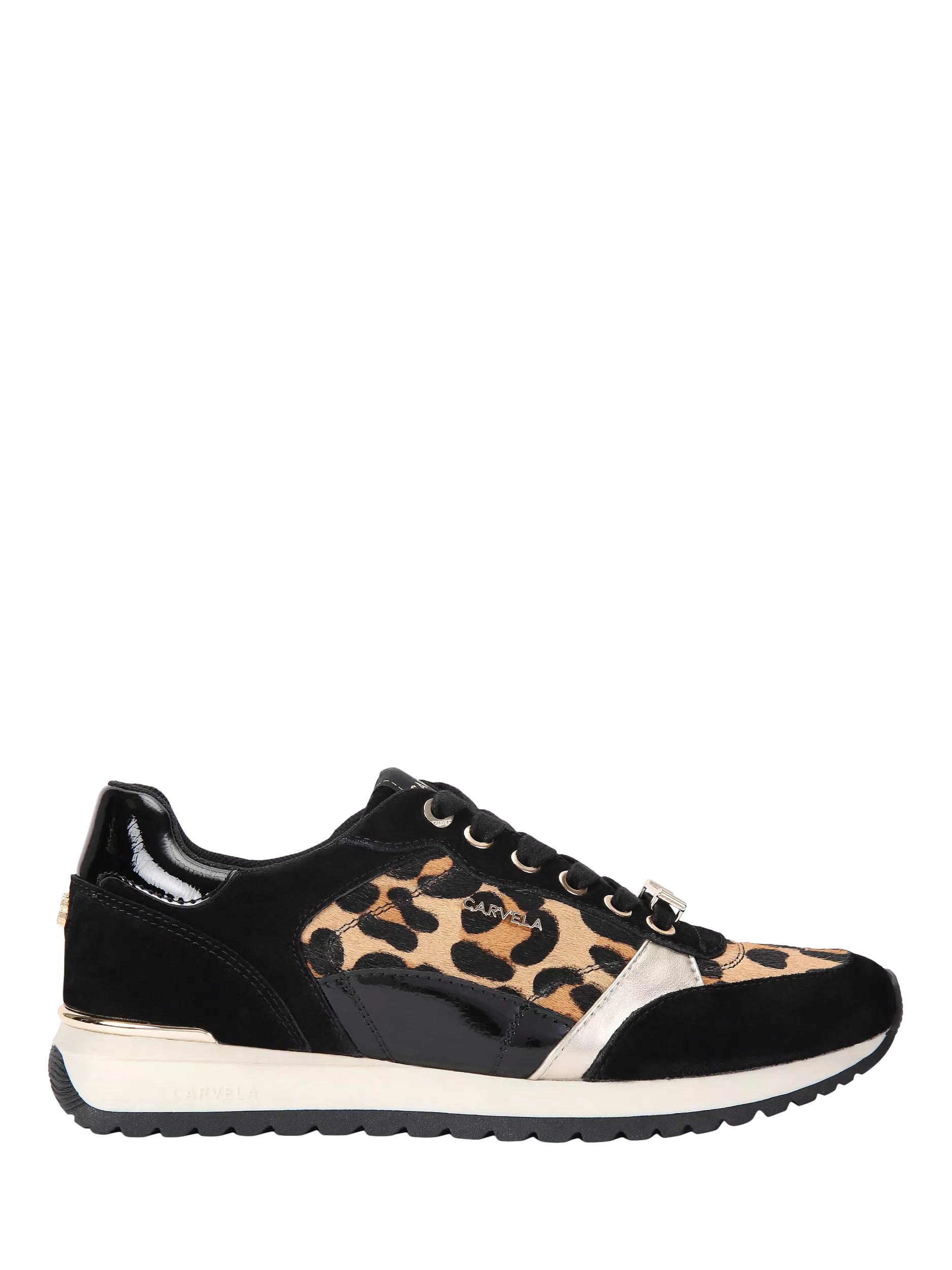 Carvela's Florencia trainer is an eye-catching casual footwear style made from soft suede with leopard print panelling, metal eyelets and a contrasting midsole.
