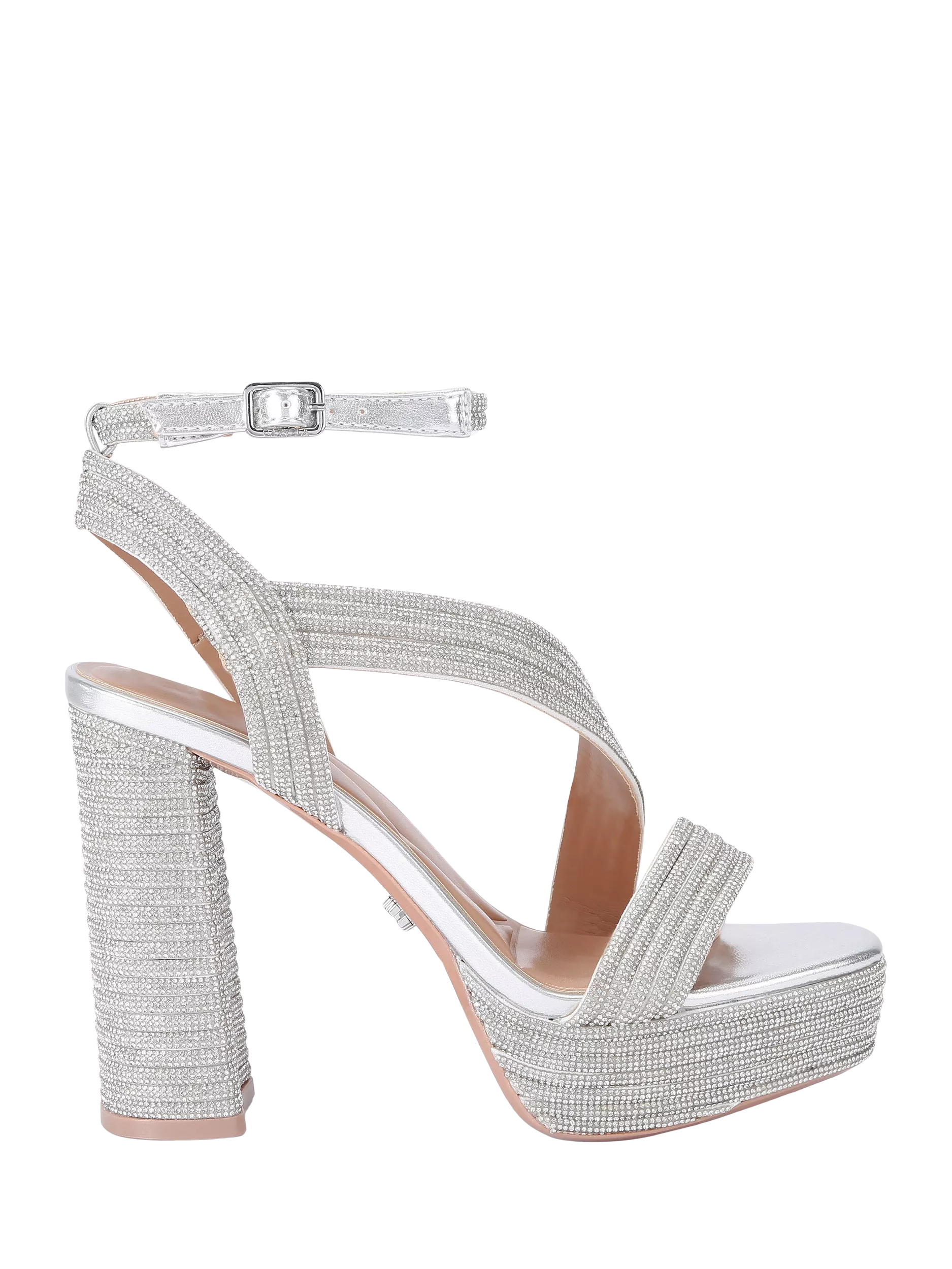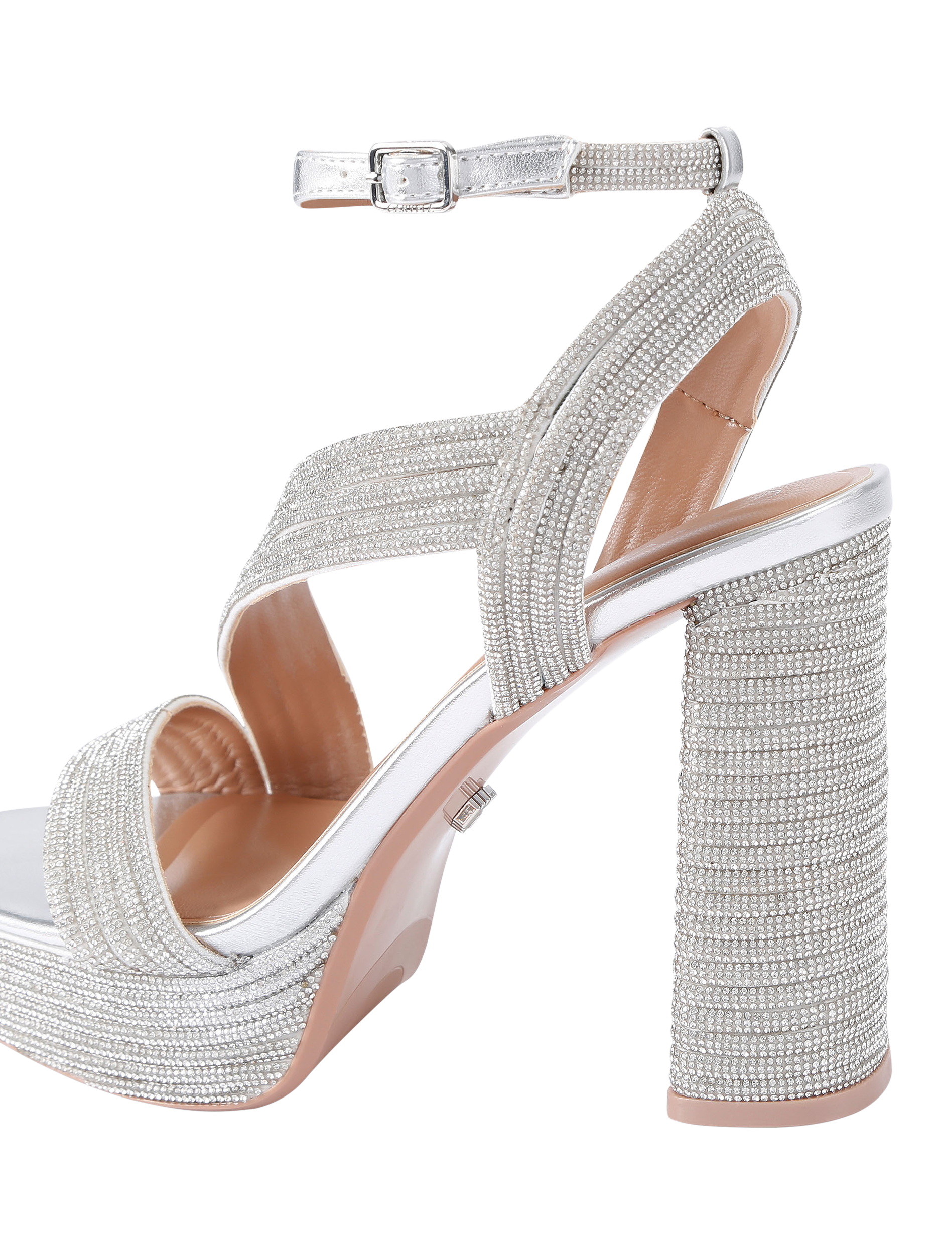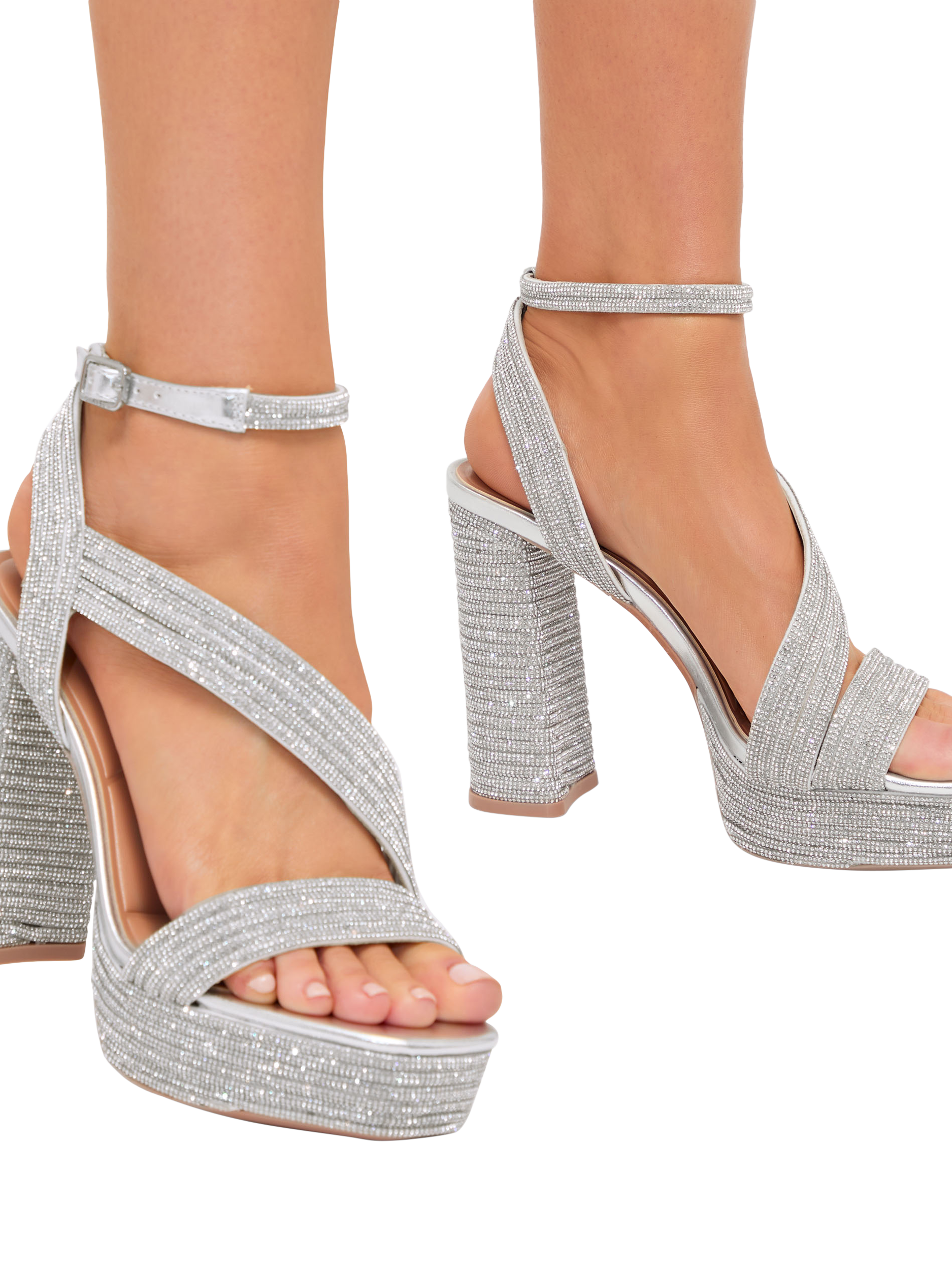 Primed for events in good company, this pair of heeled platform sandals from Carvela is made with crystal-embellished straps. Sitting on a block heel and designed with an adjustable buckle at the ankle, they'll add sparkle to dressier looks.