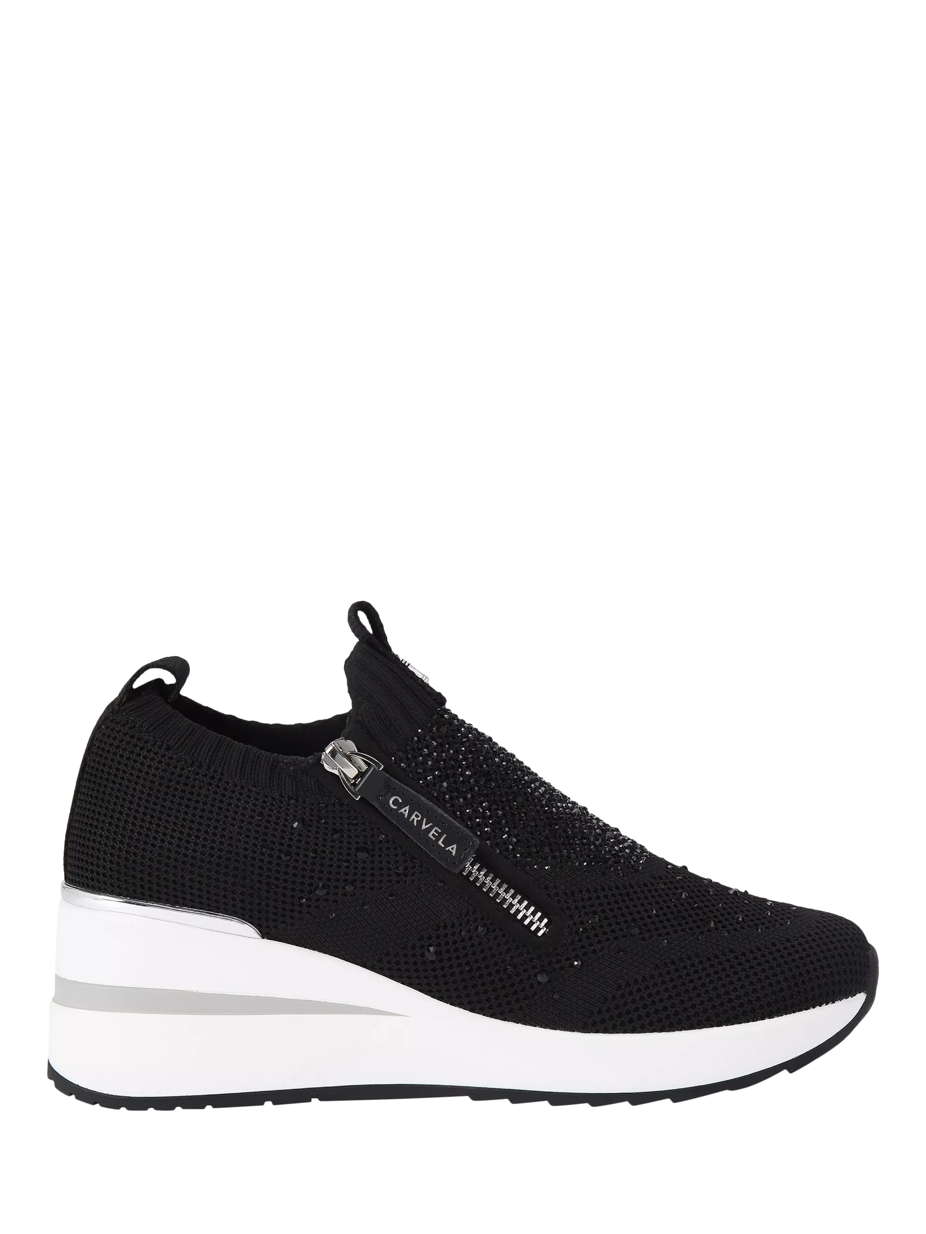 CarvelaHigh Rise Zip Knit Trainers, Black