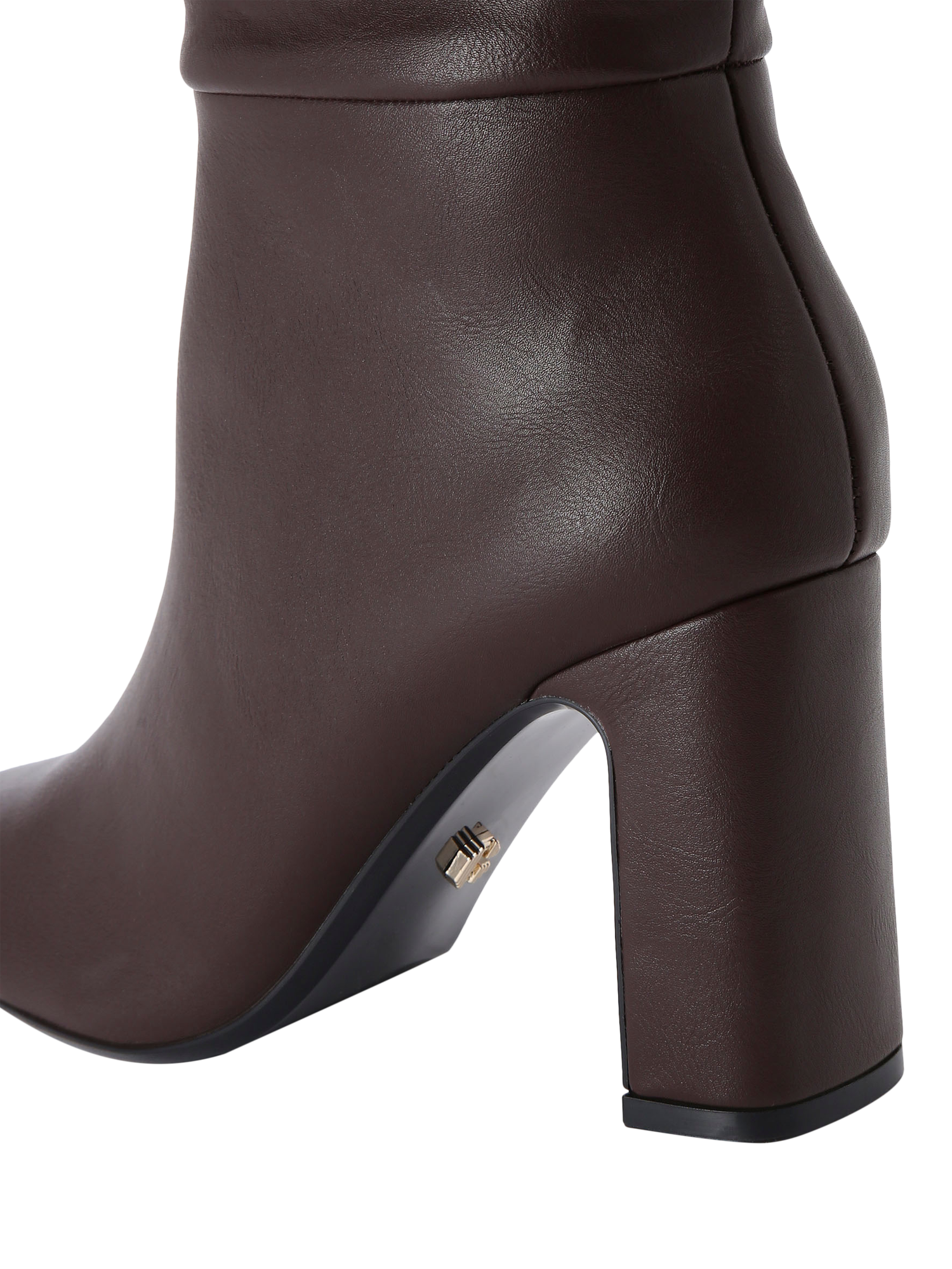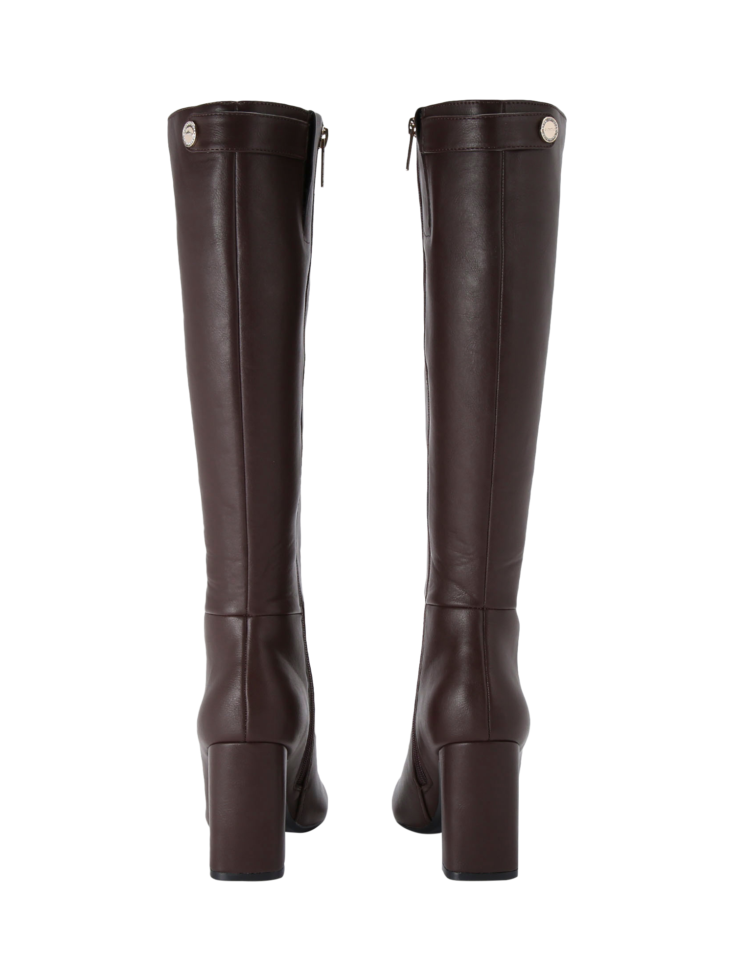Kicking off the day on the dramatic side, this pair of knee-high boots by Carvela is built to last with durable uppers. Set on a block heel, they are closed to an almond-shaped toe.