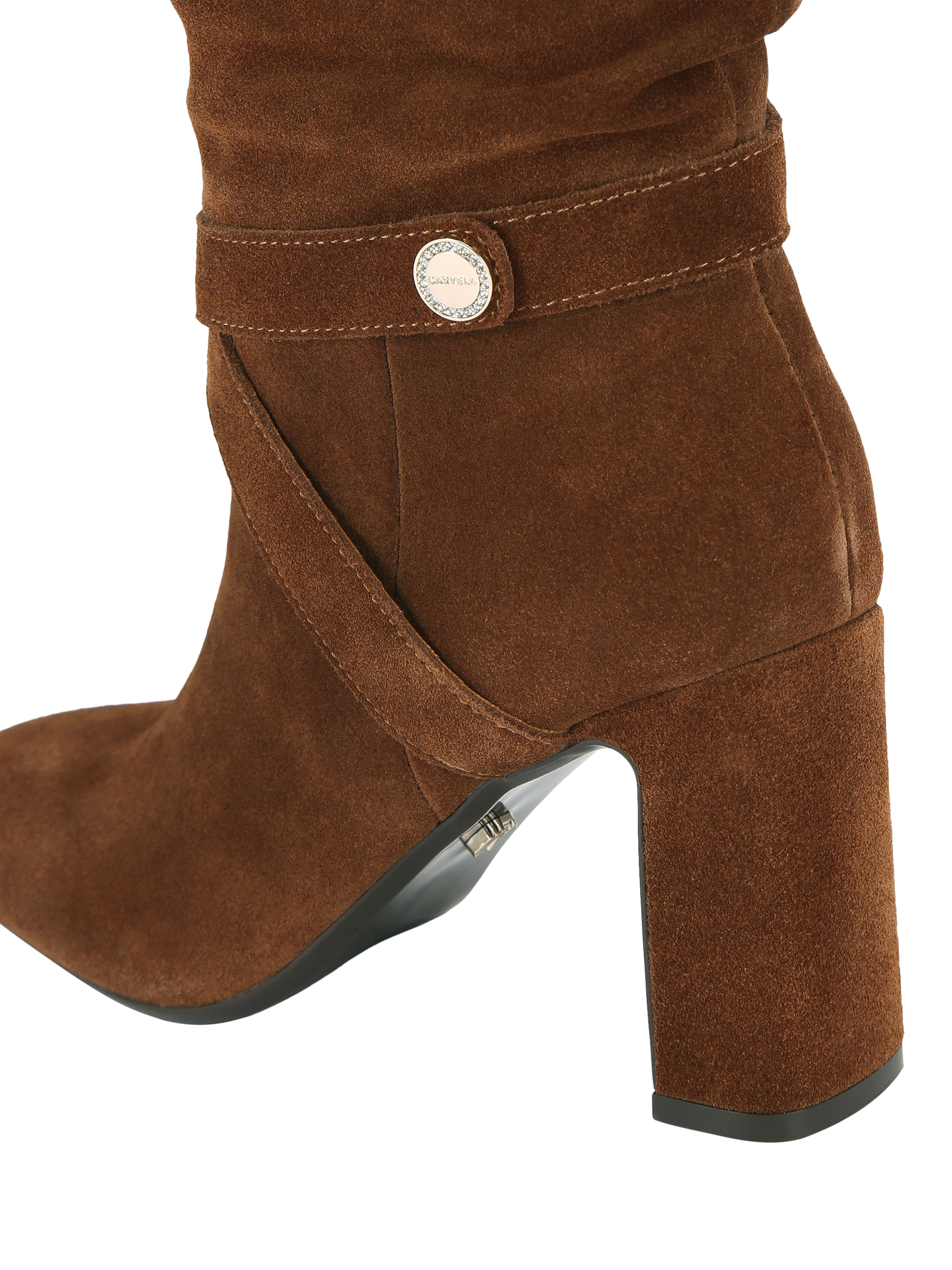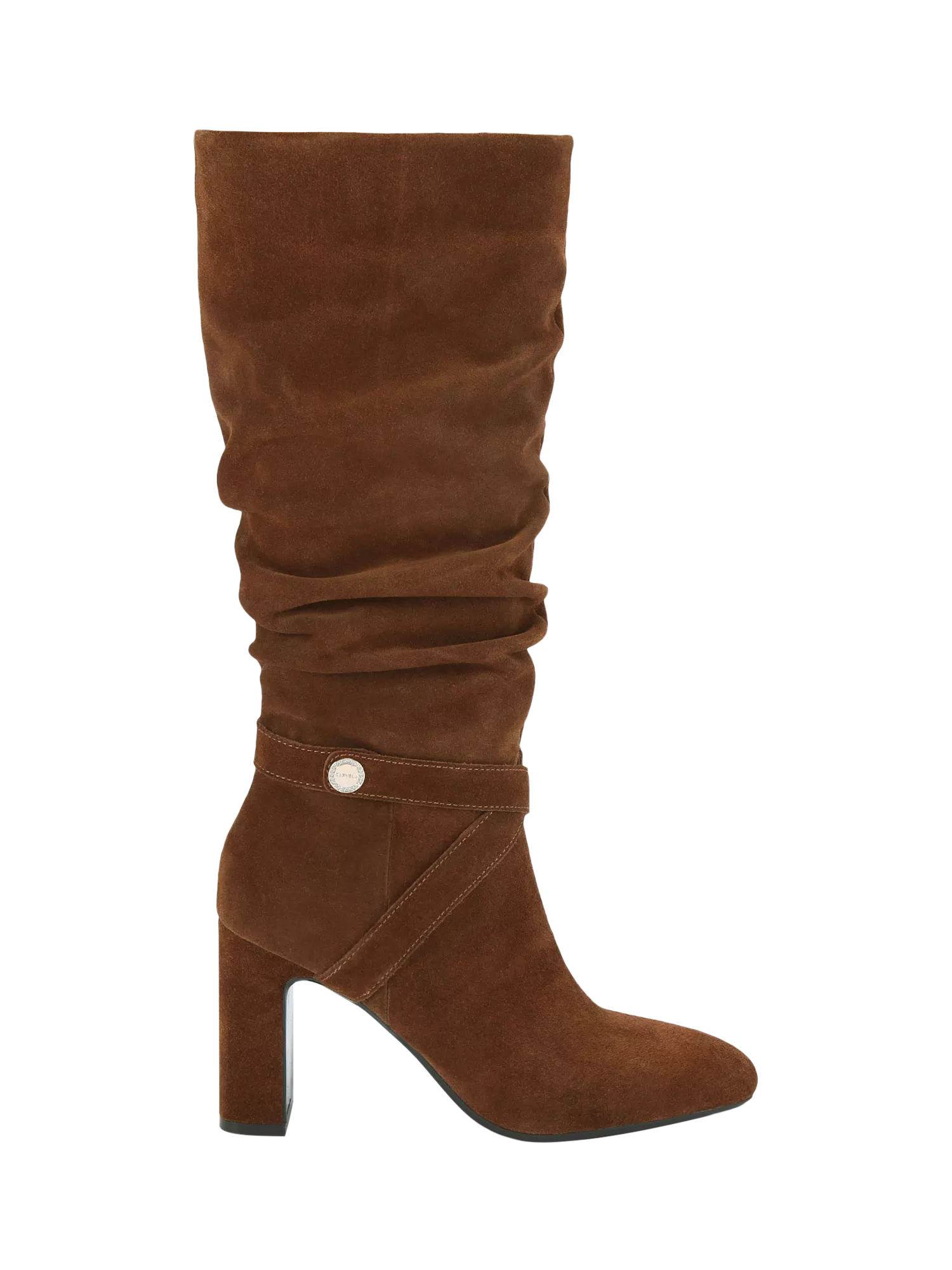 Confident style meets comfort with these Carvela knee-high boots. With a high block heel, the almond-shaped toe and suede upper ensure lasting ease. Unforgettable comfort, wherever you go.