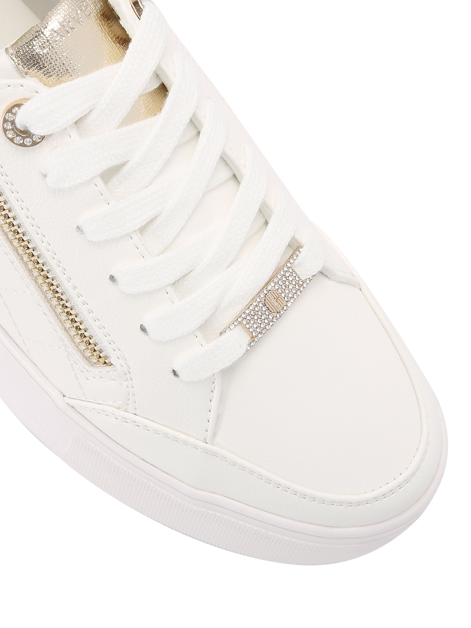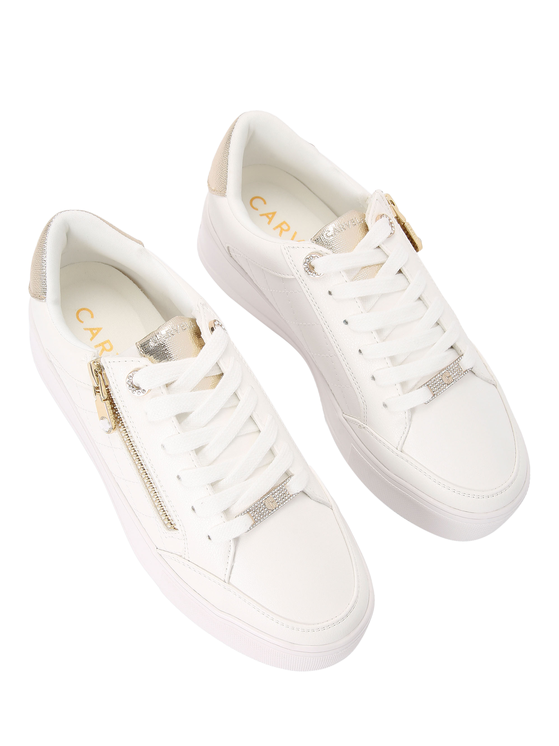 The Jive Zip is a flatform trainer with statement gold-tone branding details embellished with crystals.
