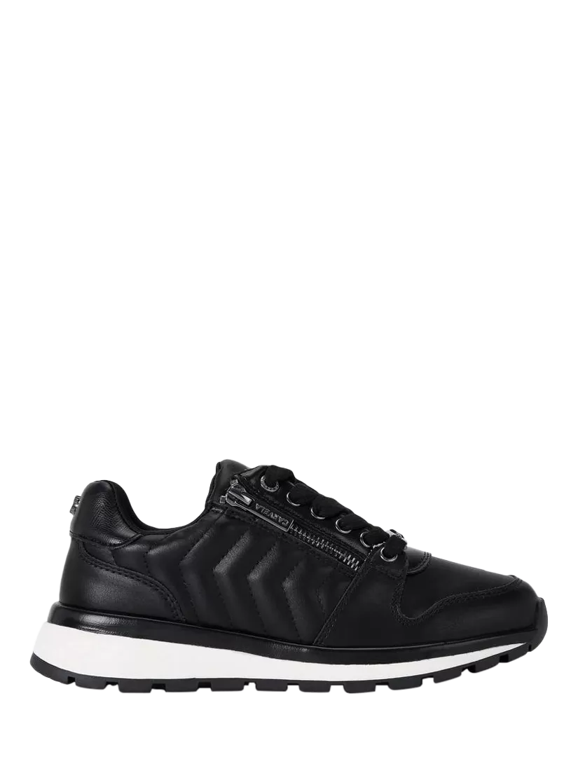 This Pace Zip trainer features a lace-up front with gunmetal zip detail at the eye stay and pin stud on the back. Finished with a black band above the white sole.