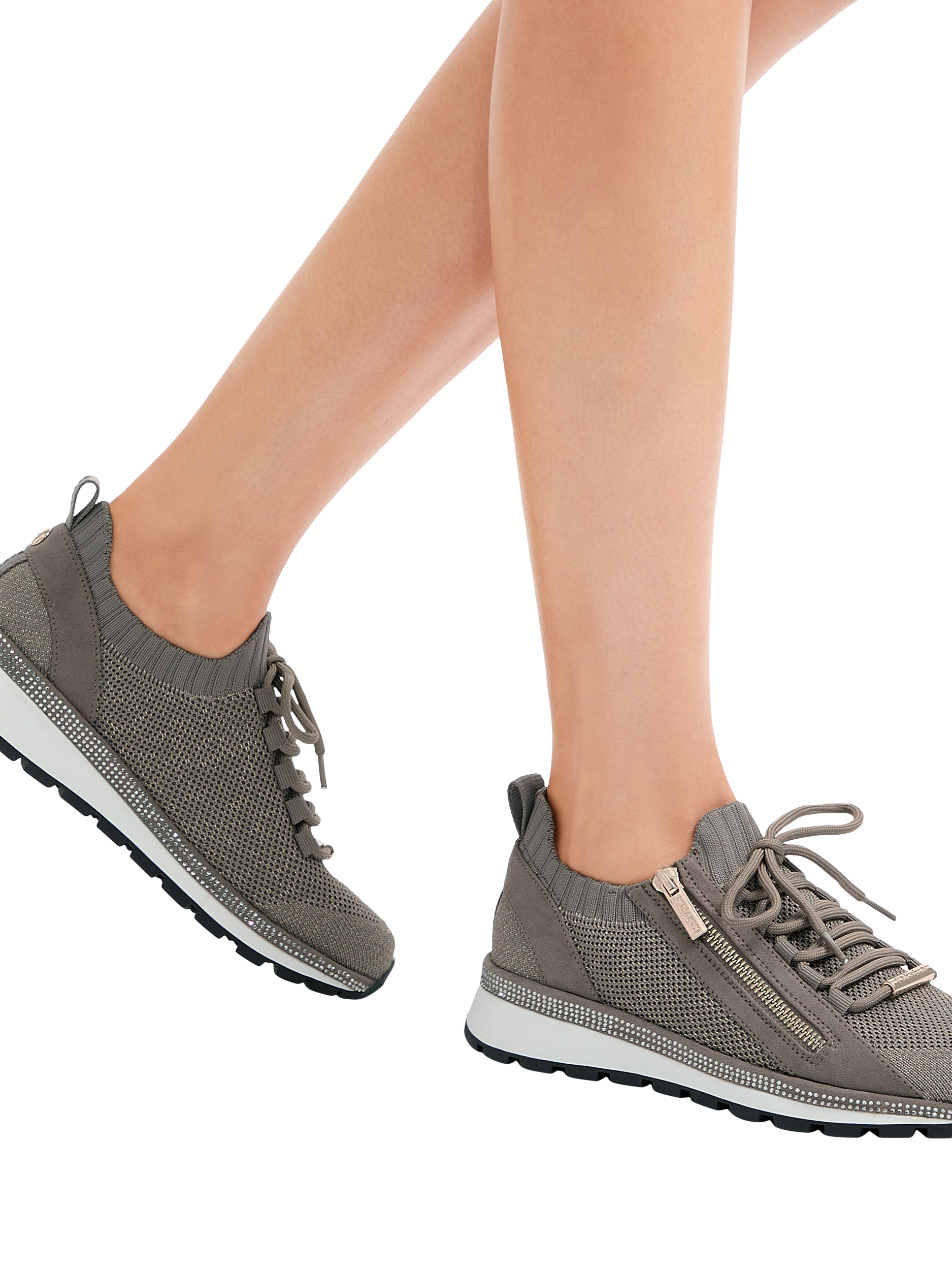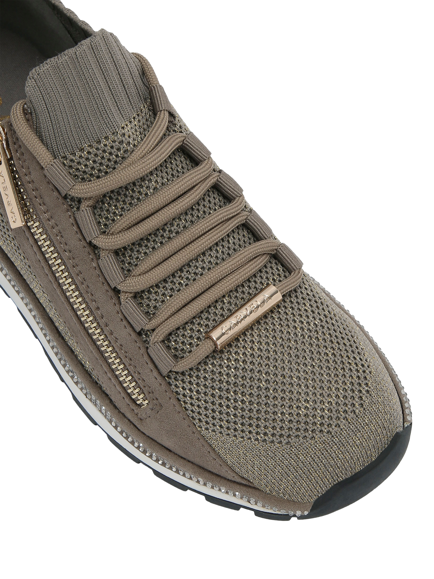 These Pace Zip Knit trainers from Carvela are made from a fabric upper with a slight glimmer. The front laces are tubular with a gunmetal zip on the eye stay and they are completed with a feature panel around the midsole.