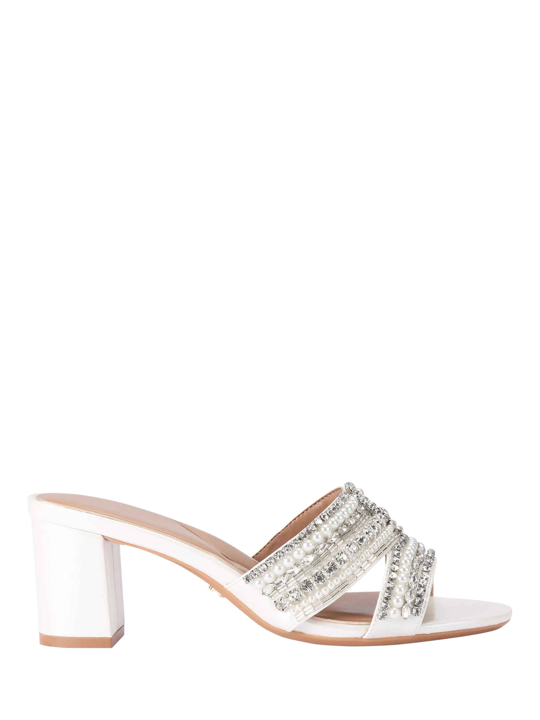 Carvela embellished mules, featuring a comfortable mid block heel and open toe. The crystal design adds sparkle and charm, making these slip-on sandals perfect for evenings or celebrations.