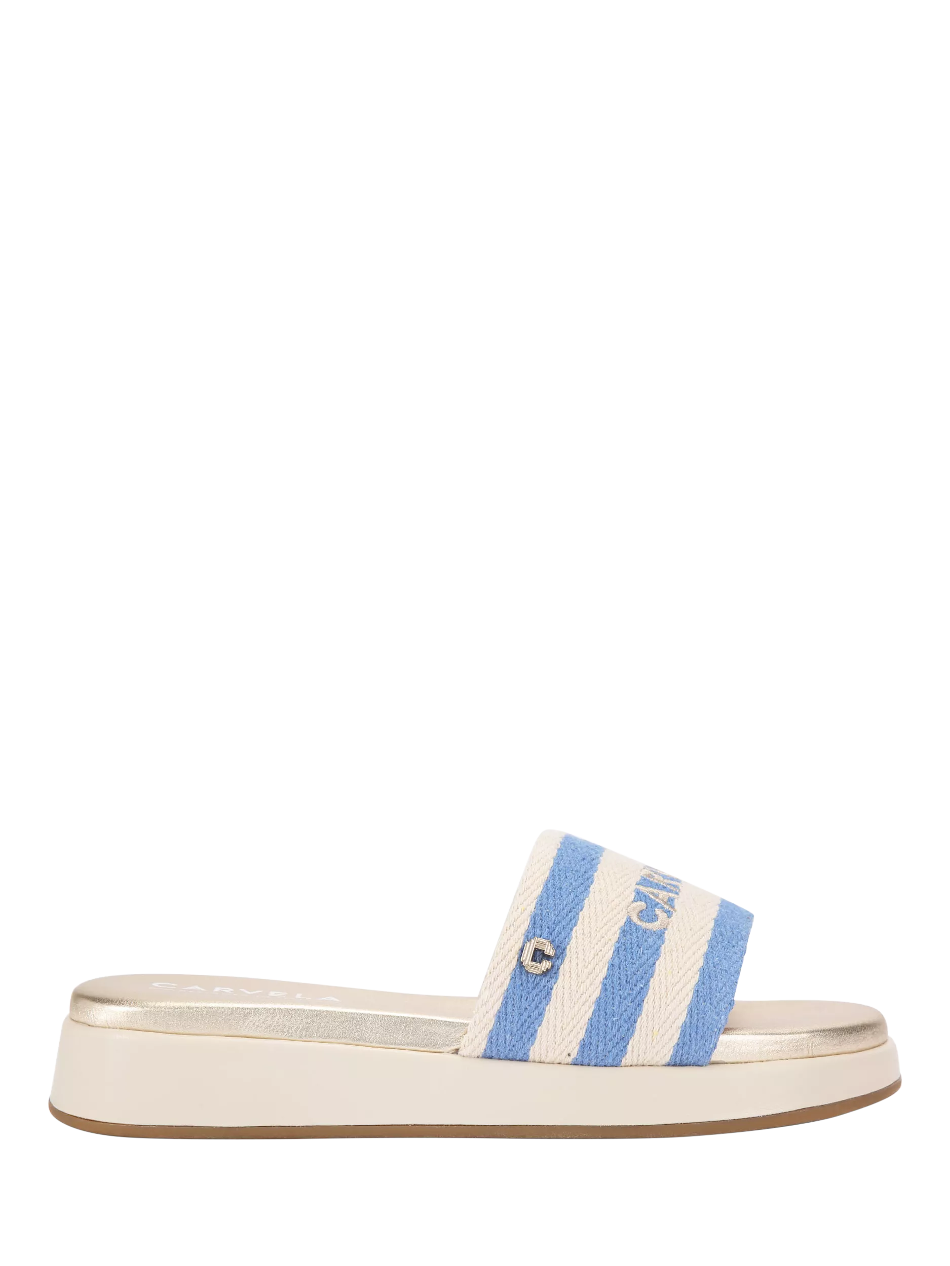 Slipping on ready for the warmer months, this pair of sliders by Carvela is stitched from sturdy striped canvas for lightweight yet robust wear. Sitting on a flat heel, they are sure to keep you feeling fresh this season.