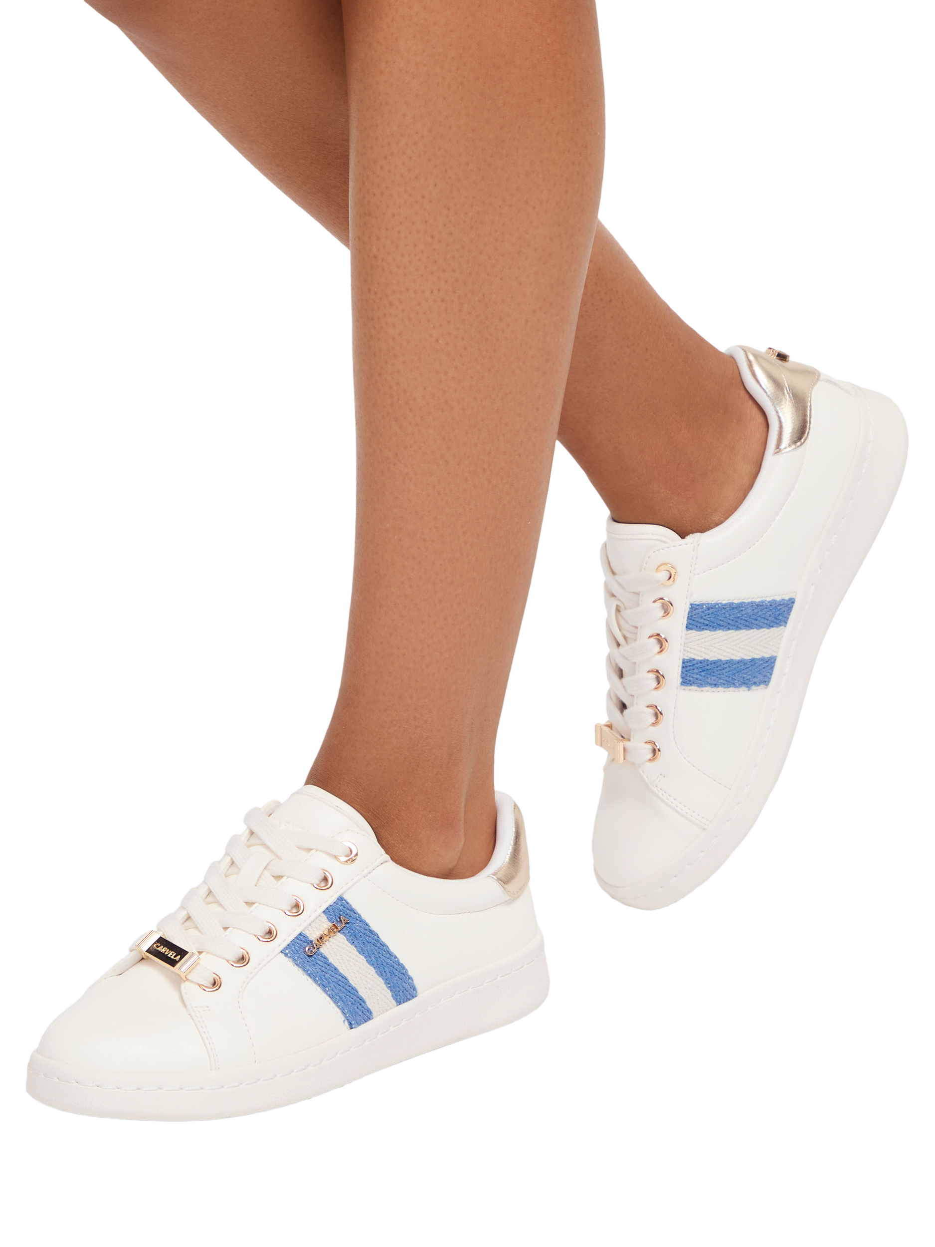 CarvelaPalermo Stripe Trainers, White/Blue