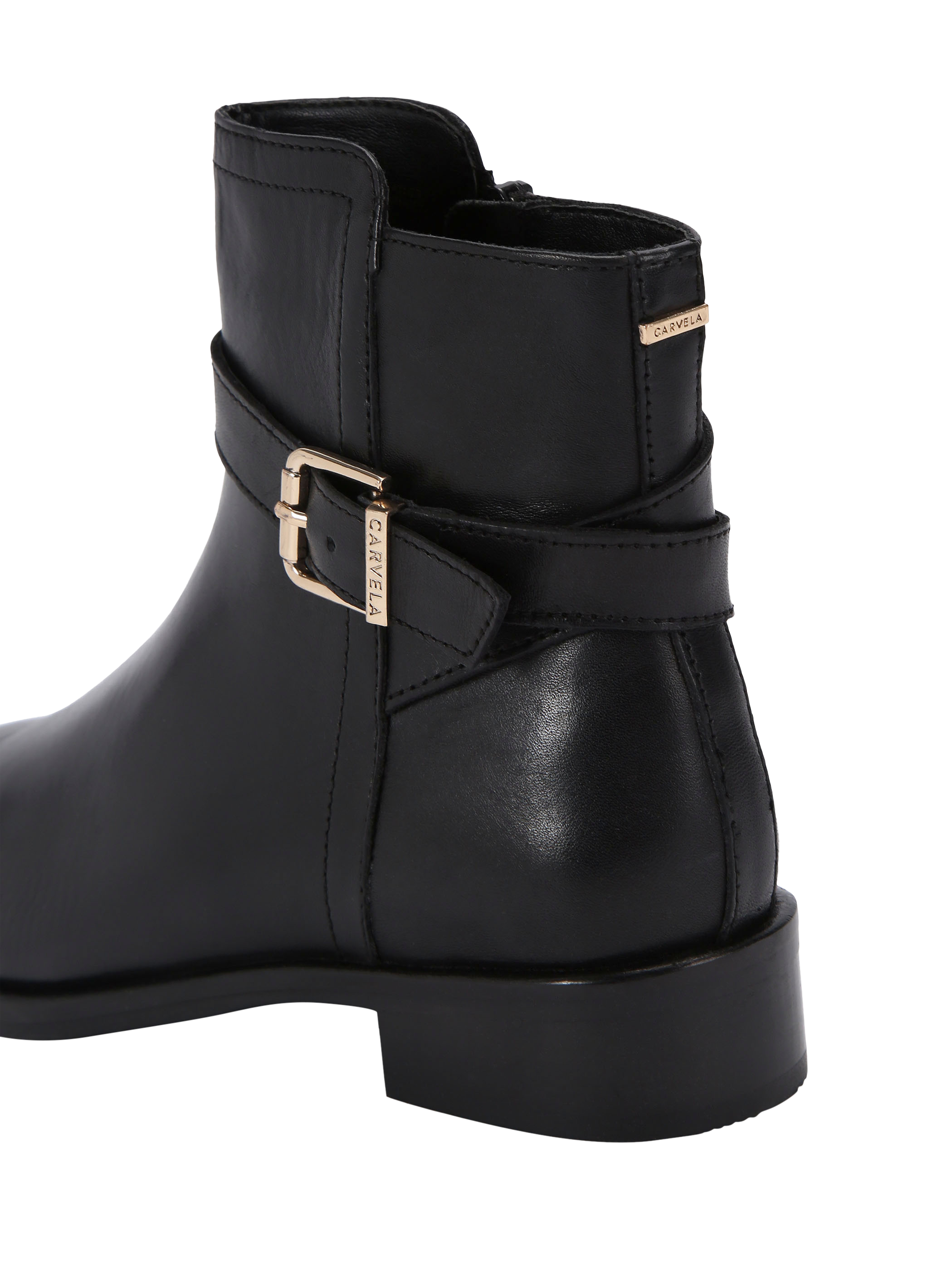Carvela flat ankle boots, featuring soft leather and a practical zip fastening. Their round closed toe and block heel ensure comfort, making them an effortlessly useful choice for any casual outing.